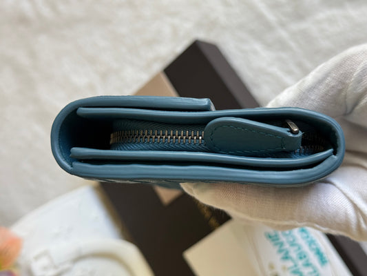 Bottega Veneta Intrecciato Weave Blue Long Wallet