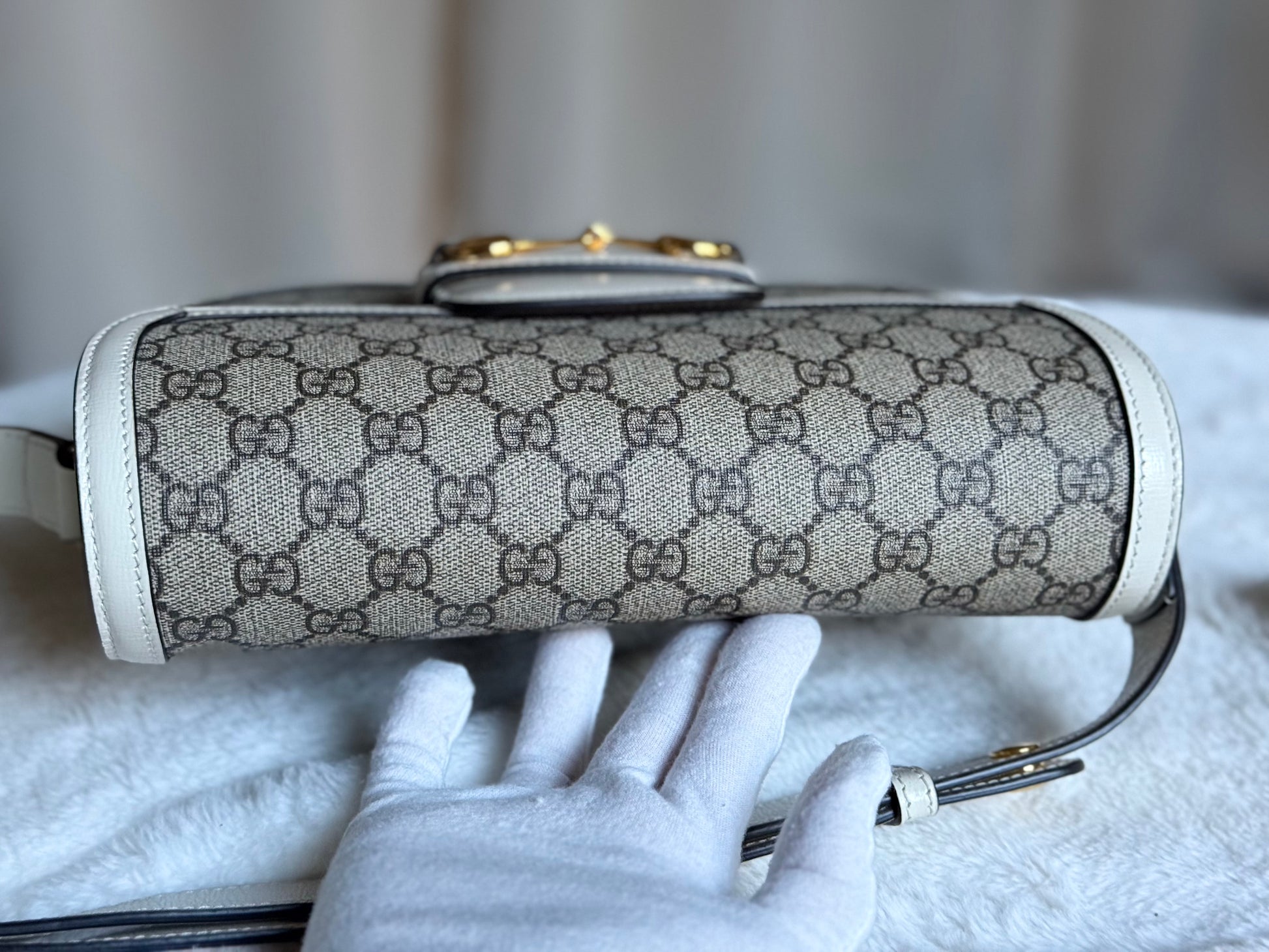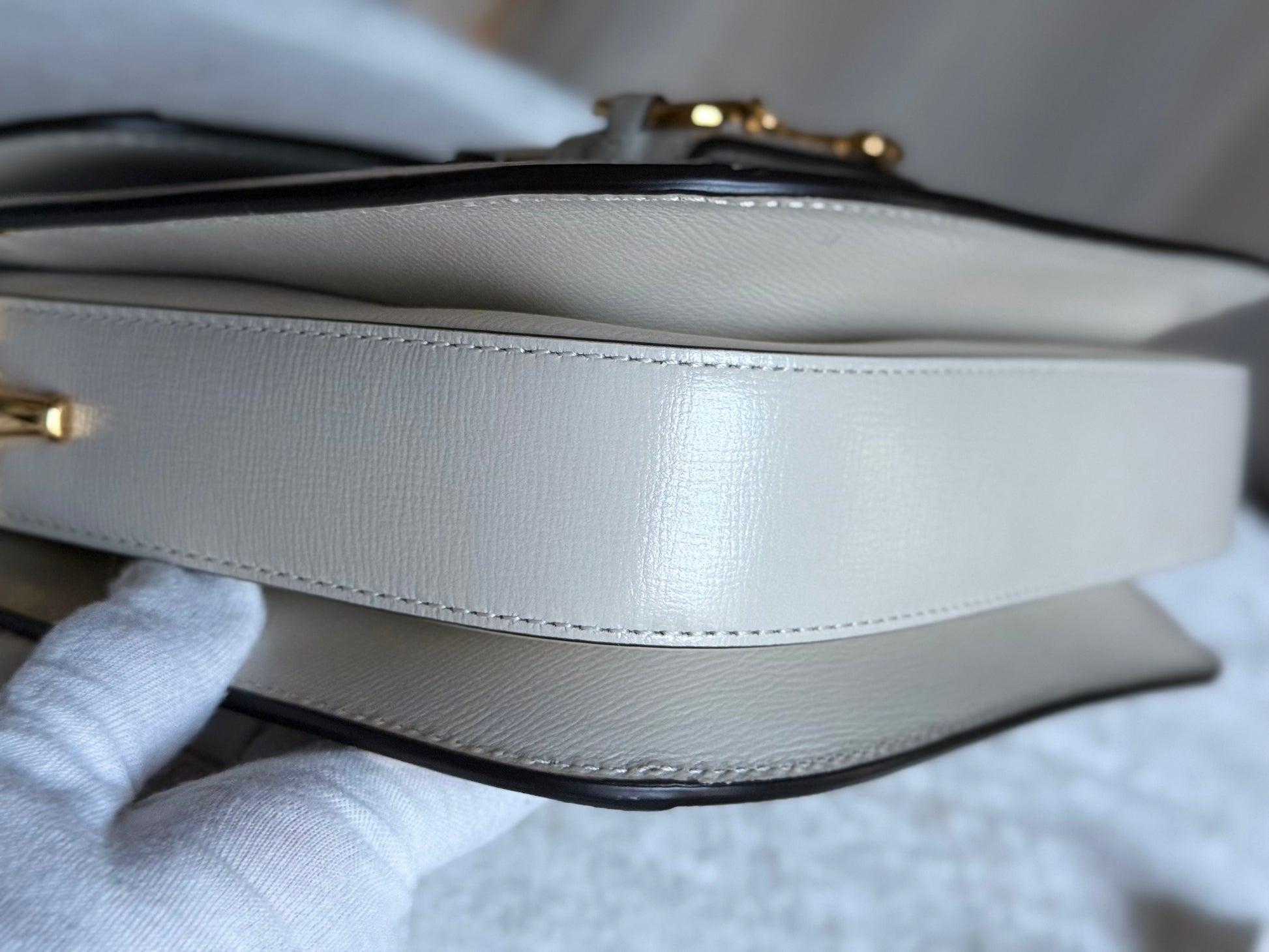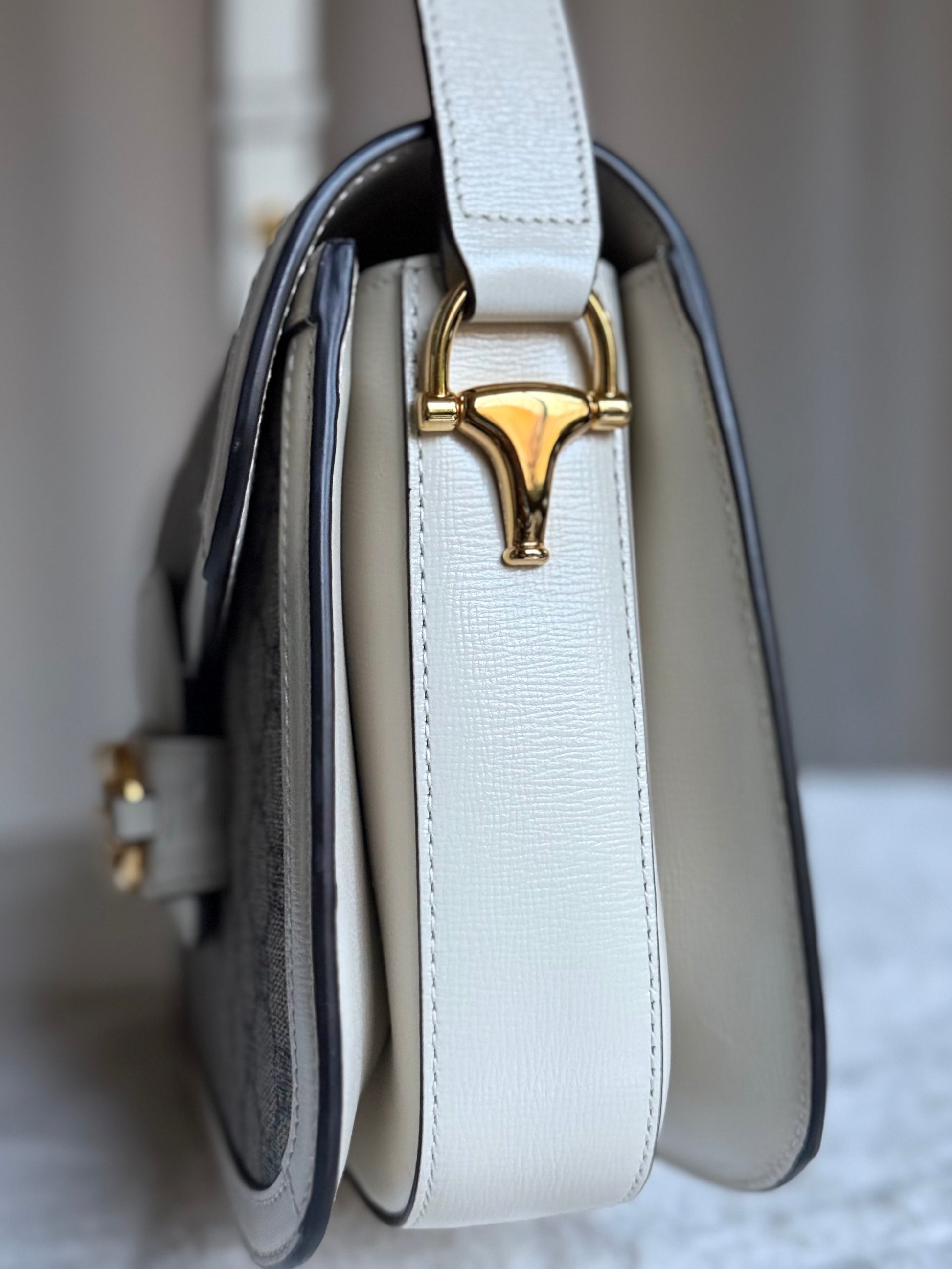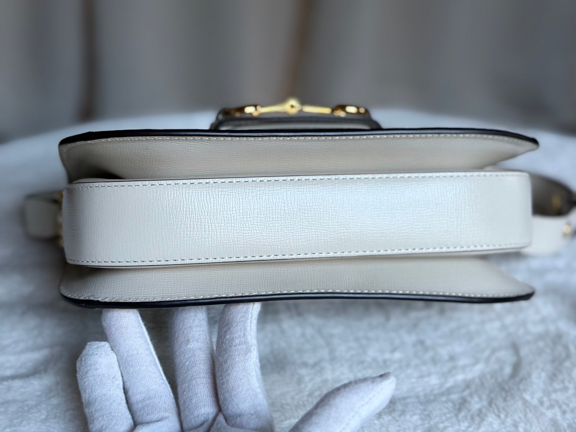 Gucci GG Horsebit 1955 with White Leather Small Shoulder Bag