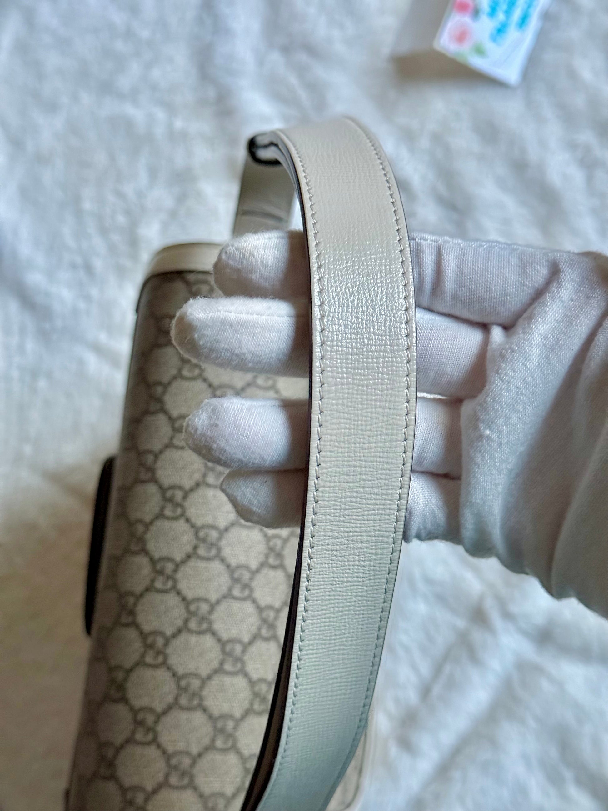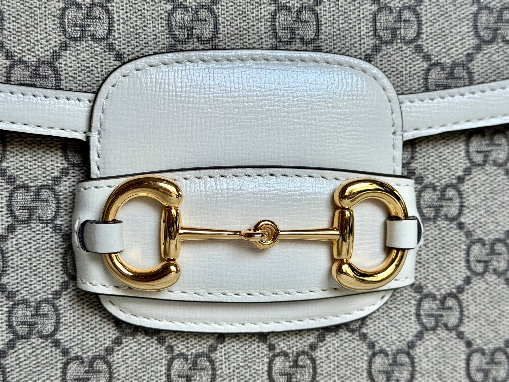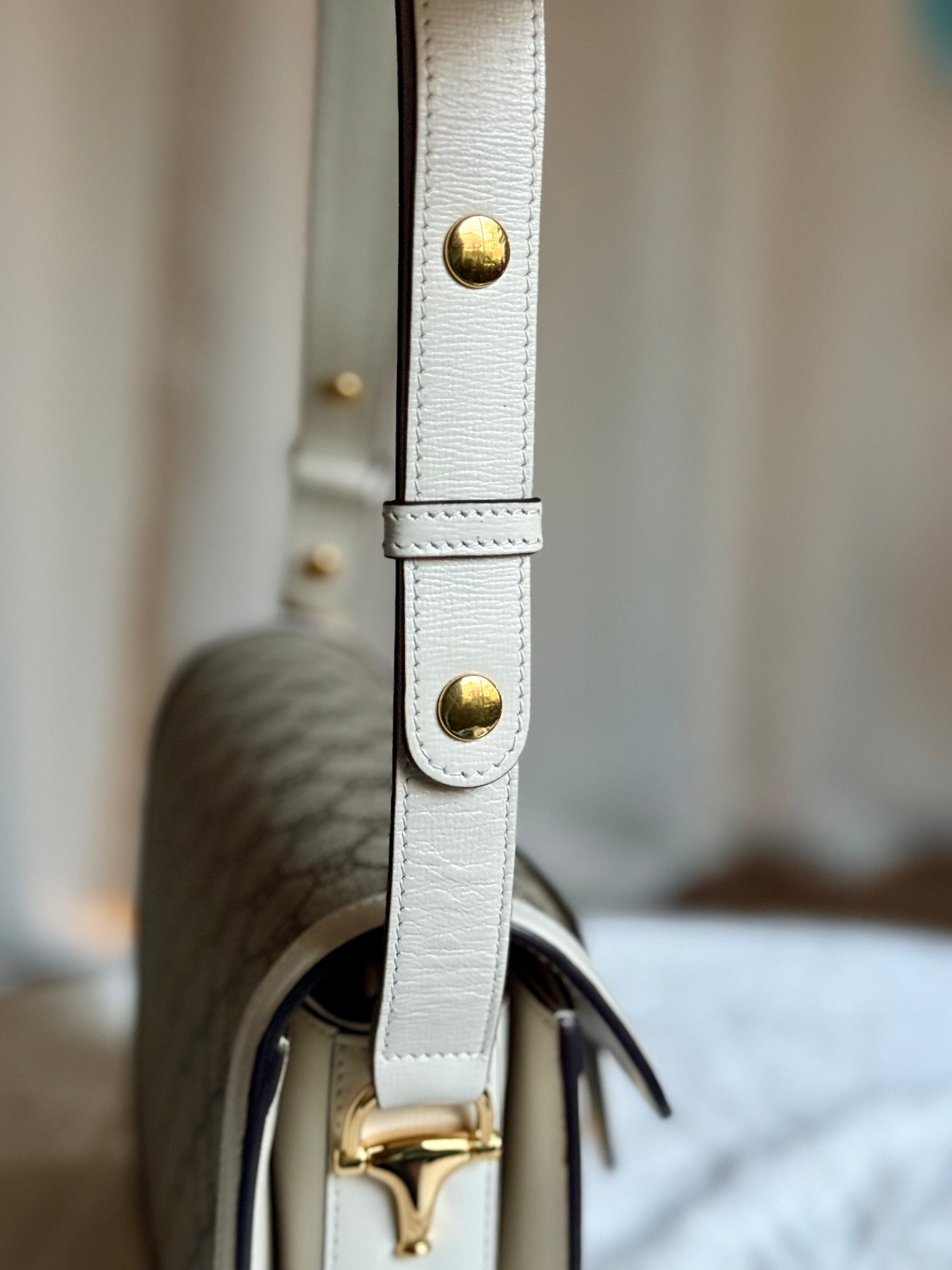 Gucci GG Horsebit 1955 with White Leather Small Shoulder Bag