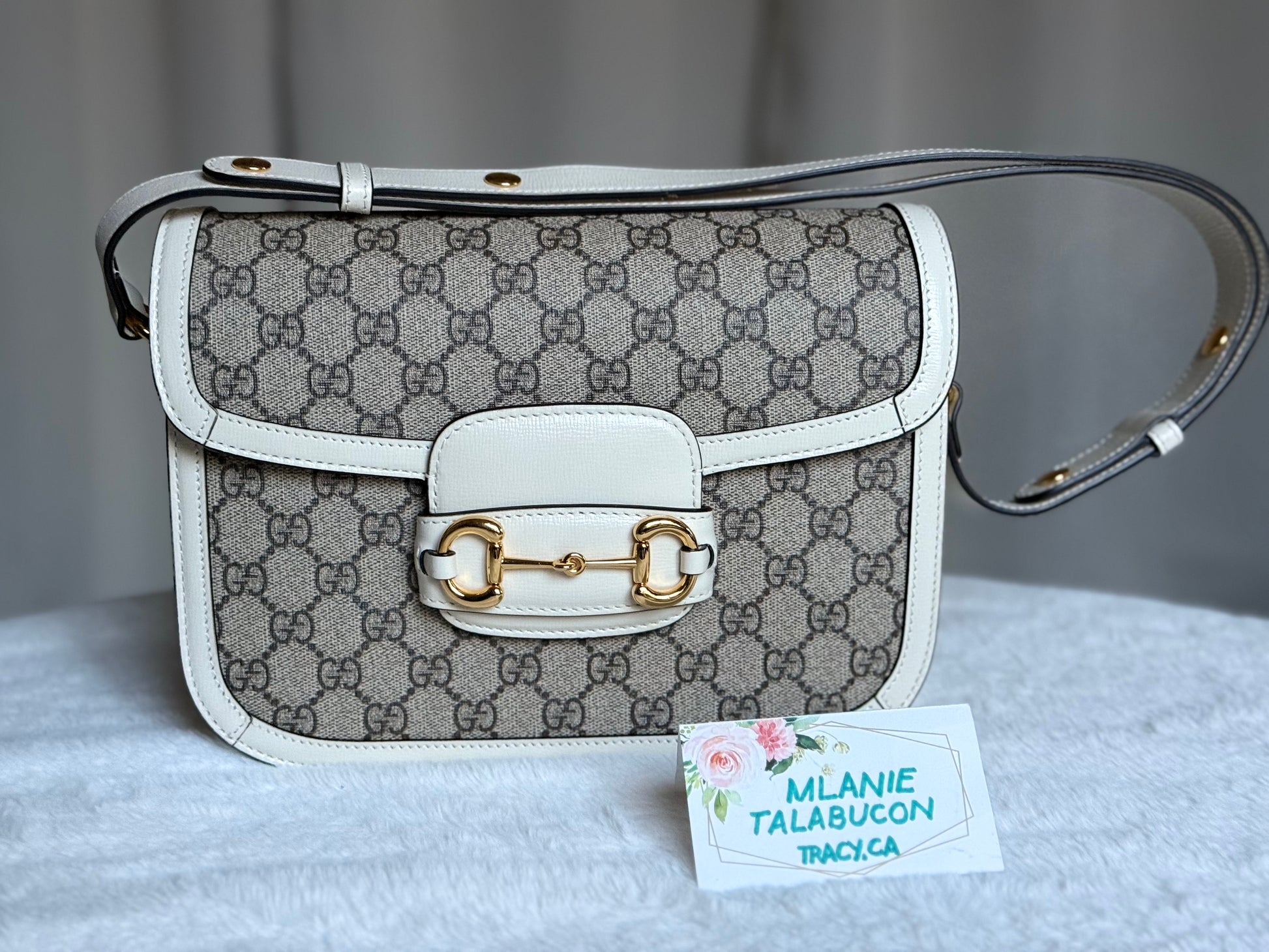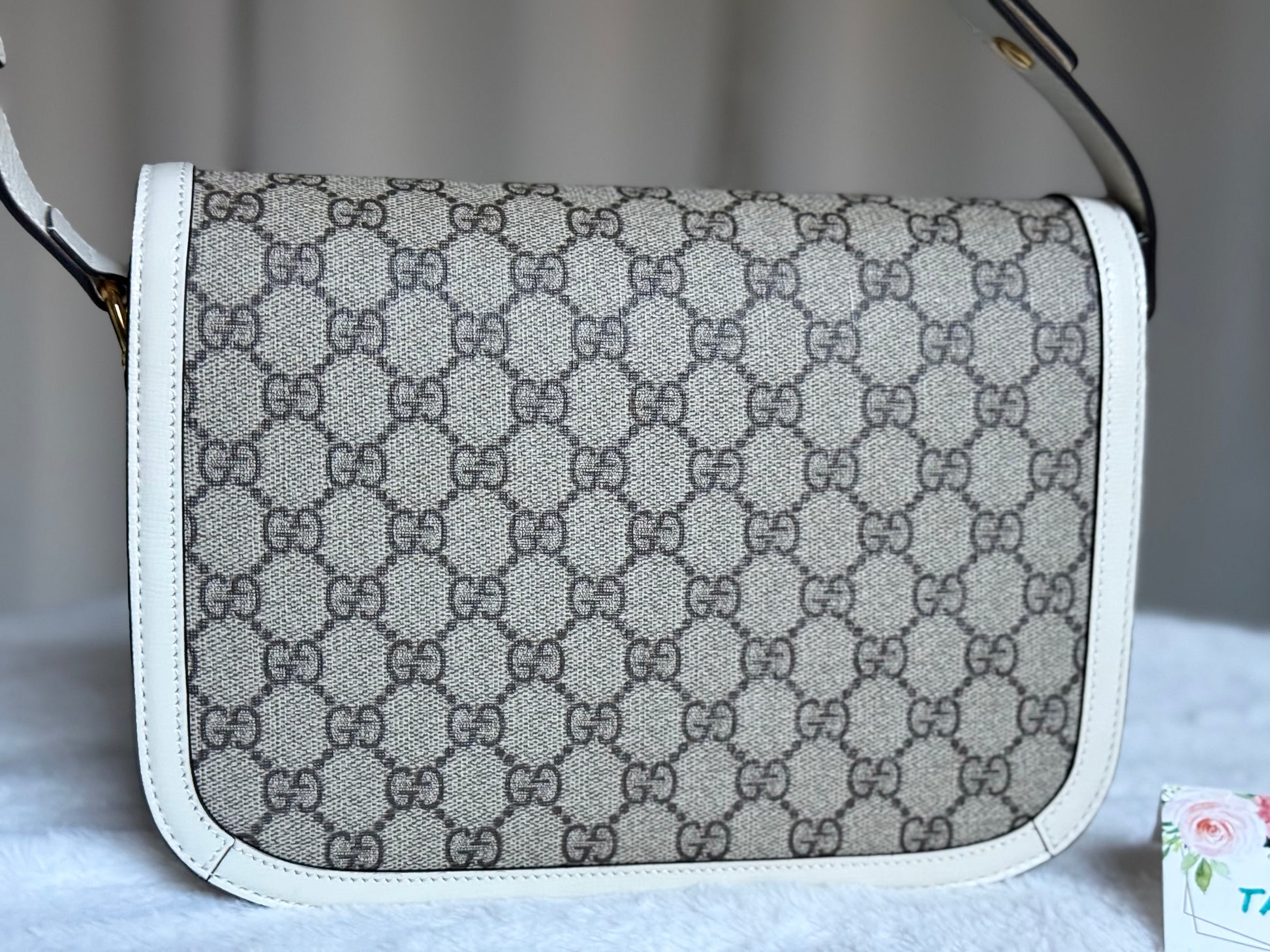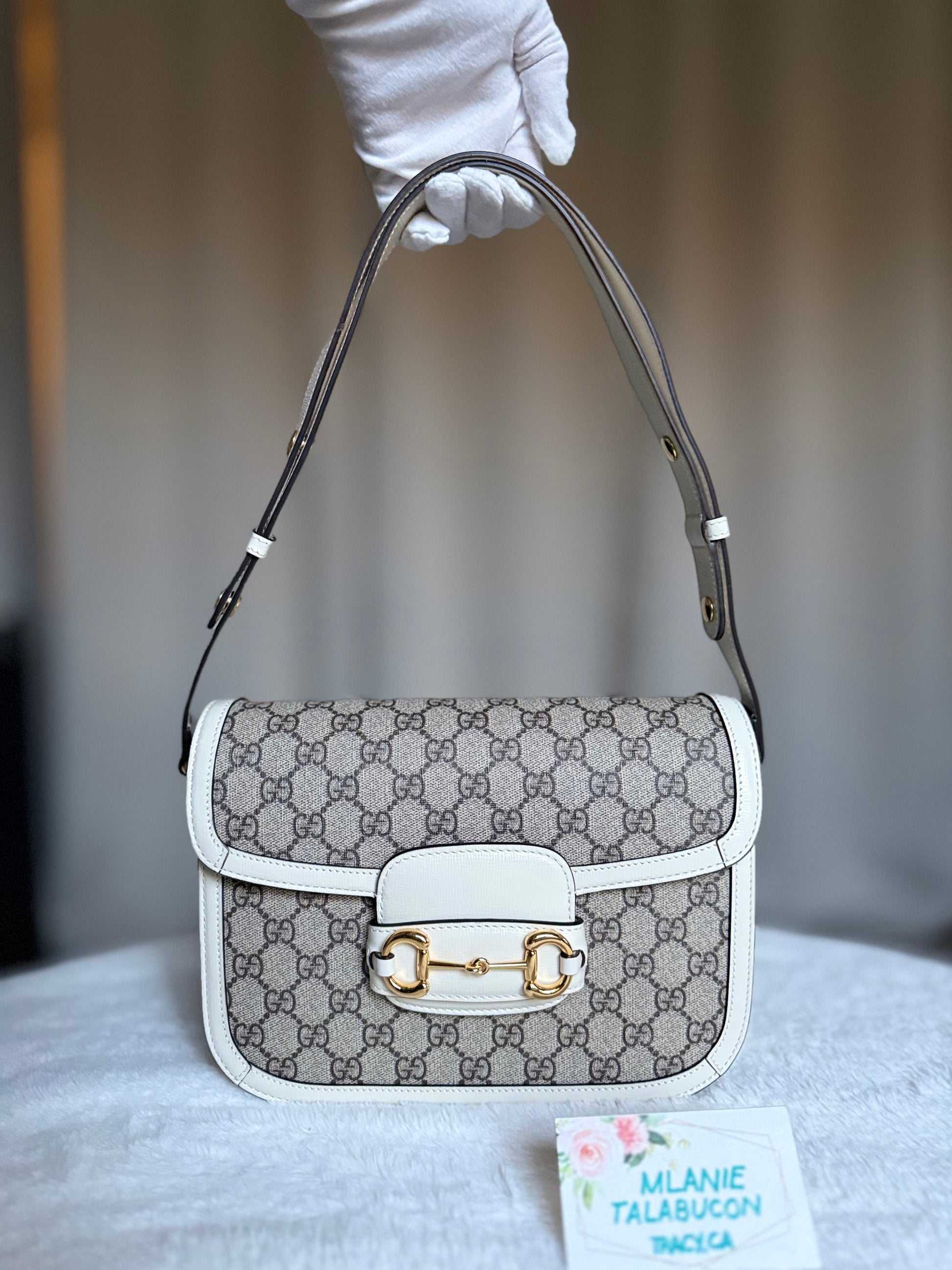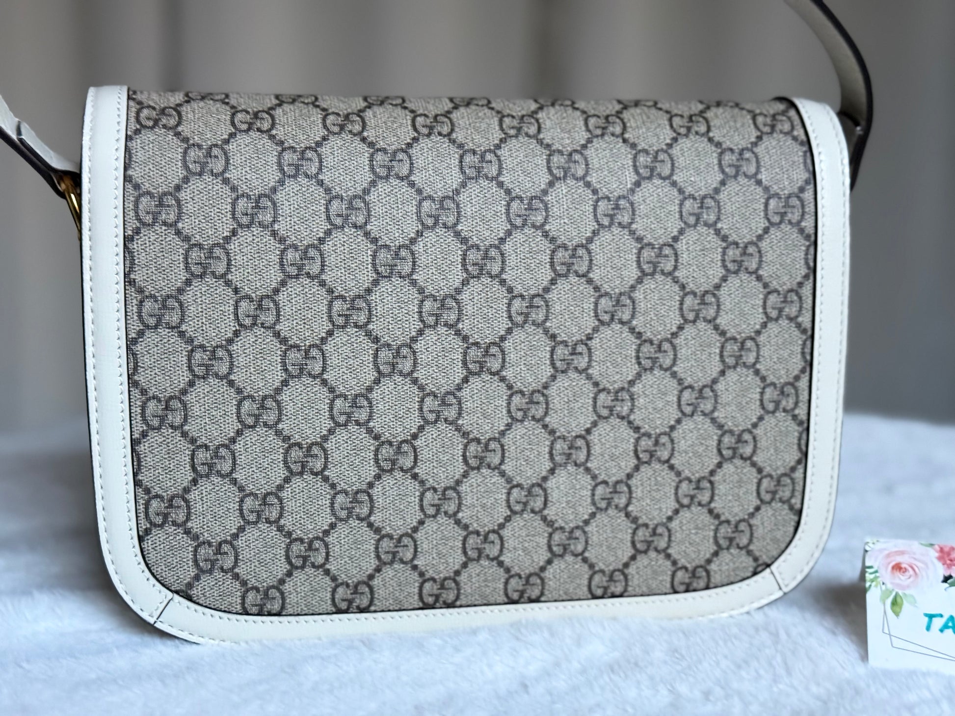 Gucci GG Horsebit 1955 with White Leather Small Shoulder Bag