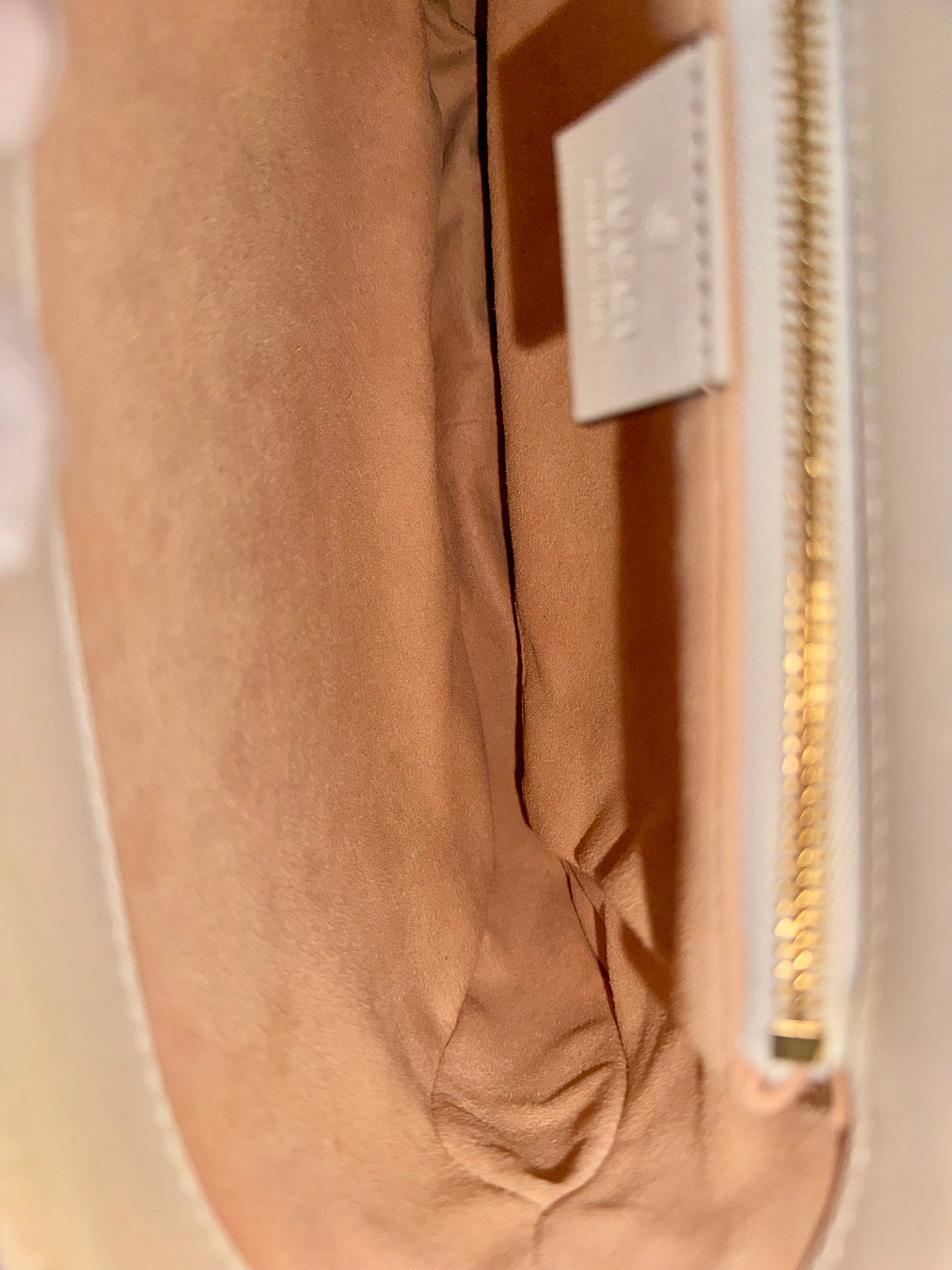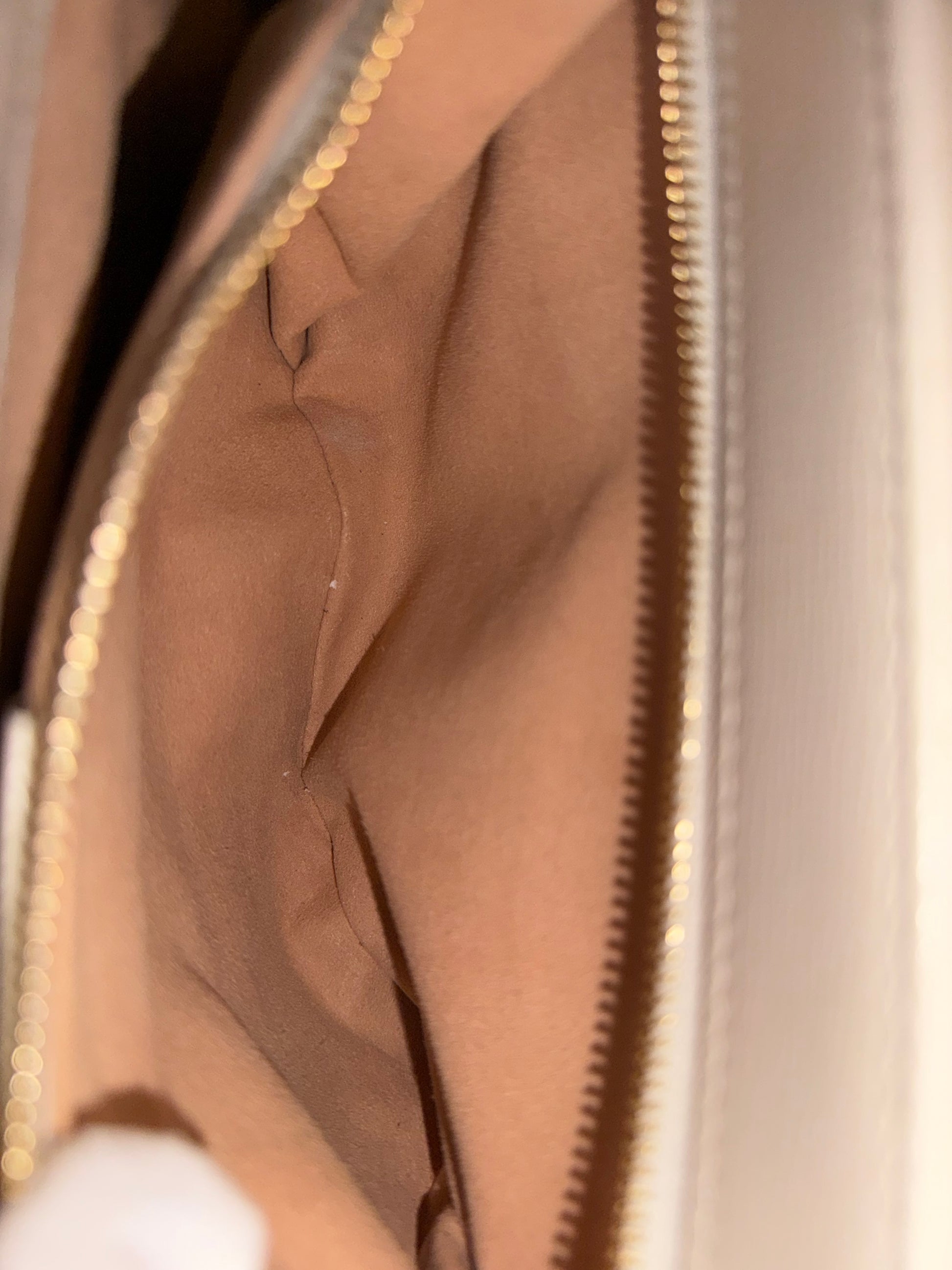 PRISTINE CONDITION. Clean inside and out. Canvas is clean with no stains. Interior has no stains. Gold HW has no flaws. Leather has no stains. Glazing is solid. No offensive odors, comes from pet and smoke free home.