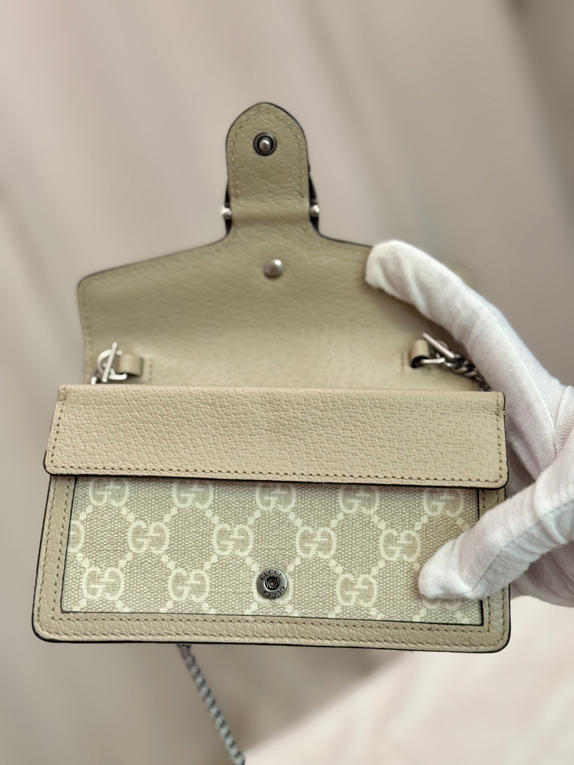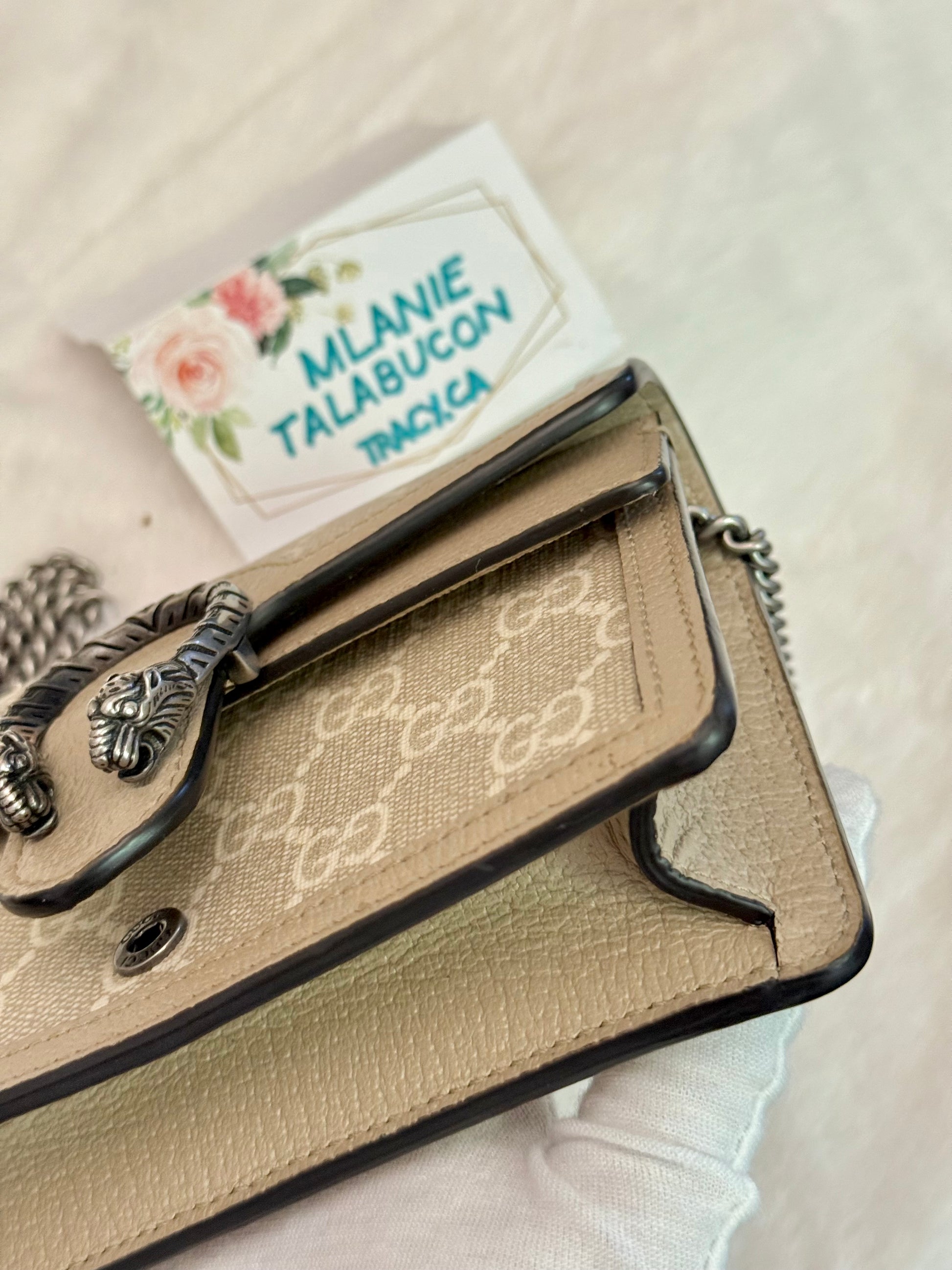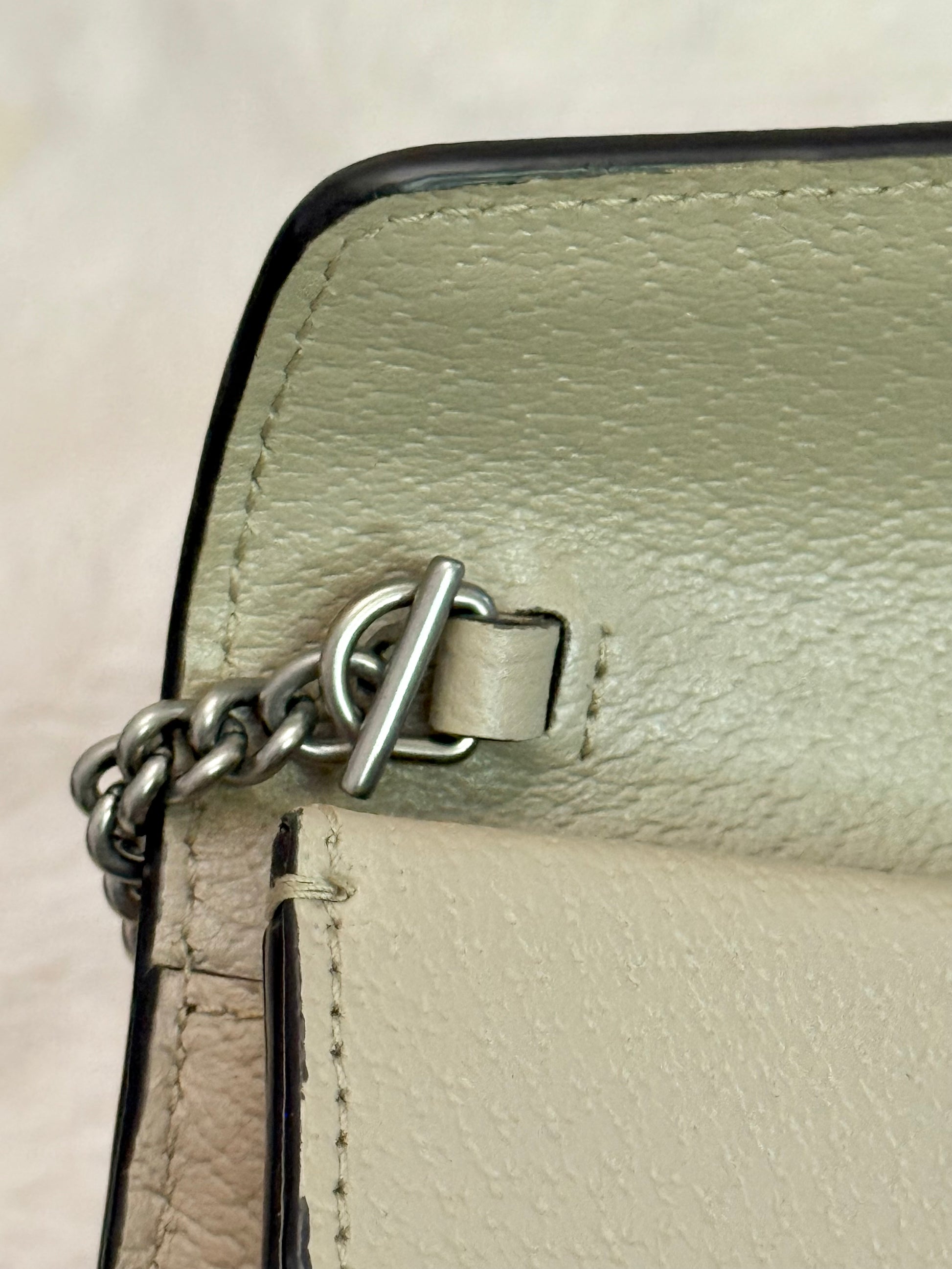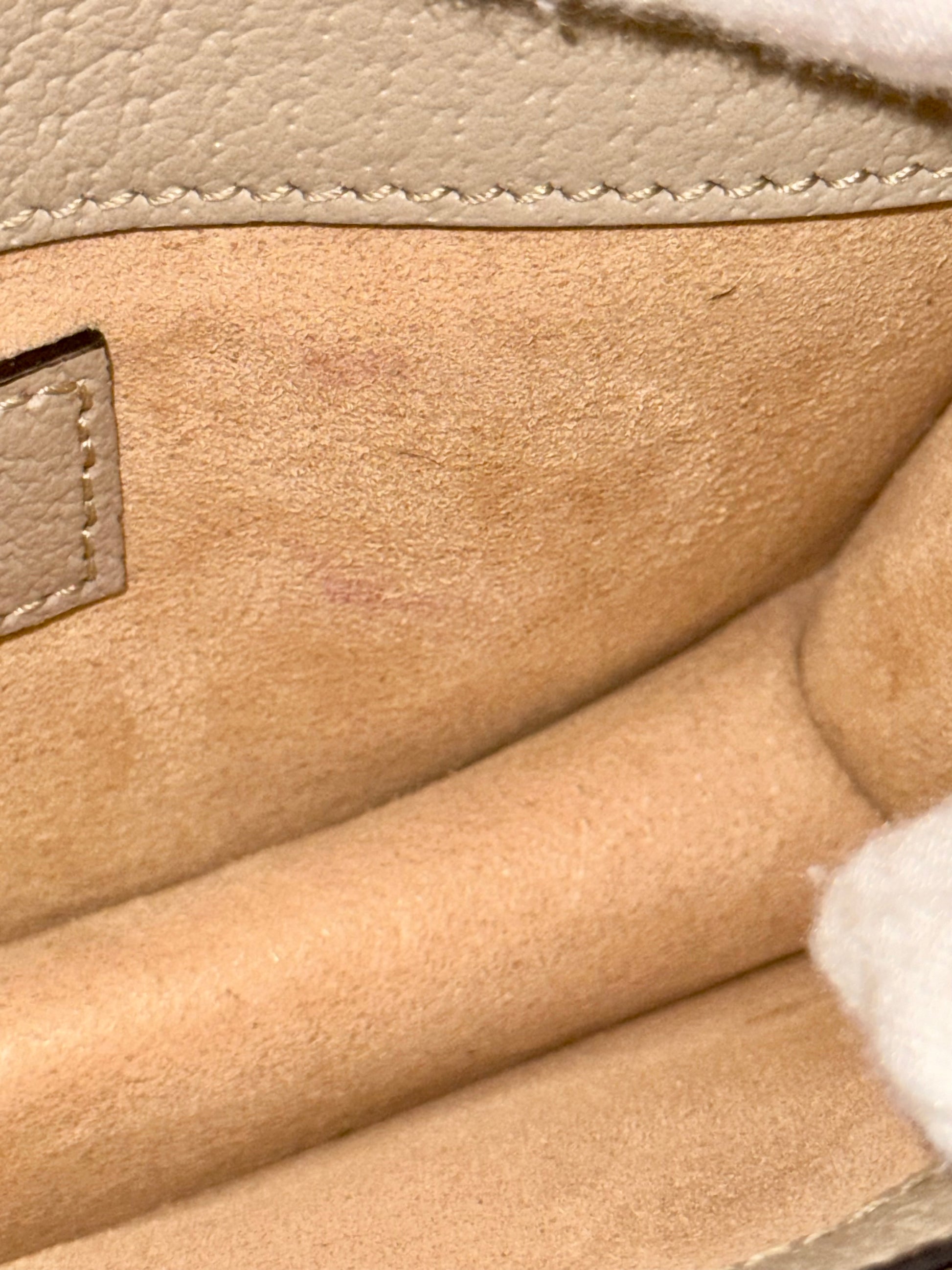 EXCELLENT CONDITION. Coated Canvas is in great condition. Tiger head closure has no flaws. Chain strap has no flaws. Snap closure is still tight. Interior has no major stains but it has reddish faint marks. Trim leather is pristine. No offensive odors, comes from pet and smoke free home.