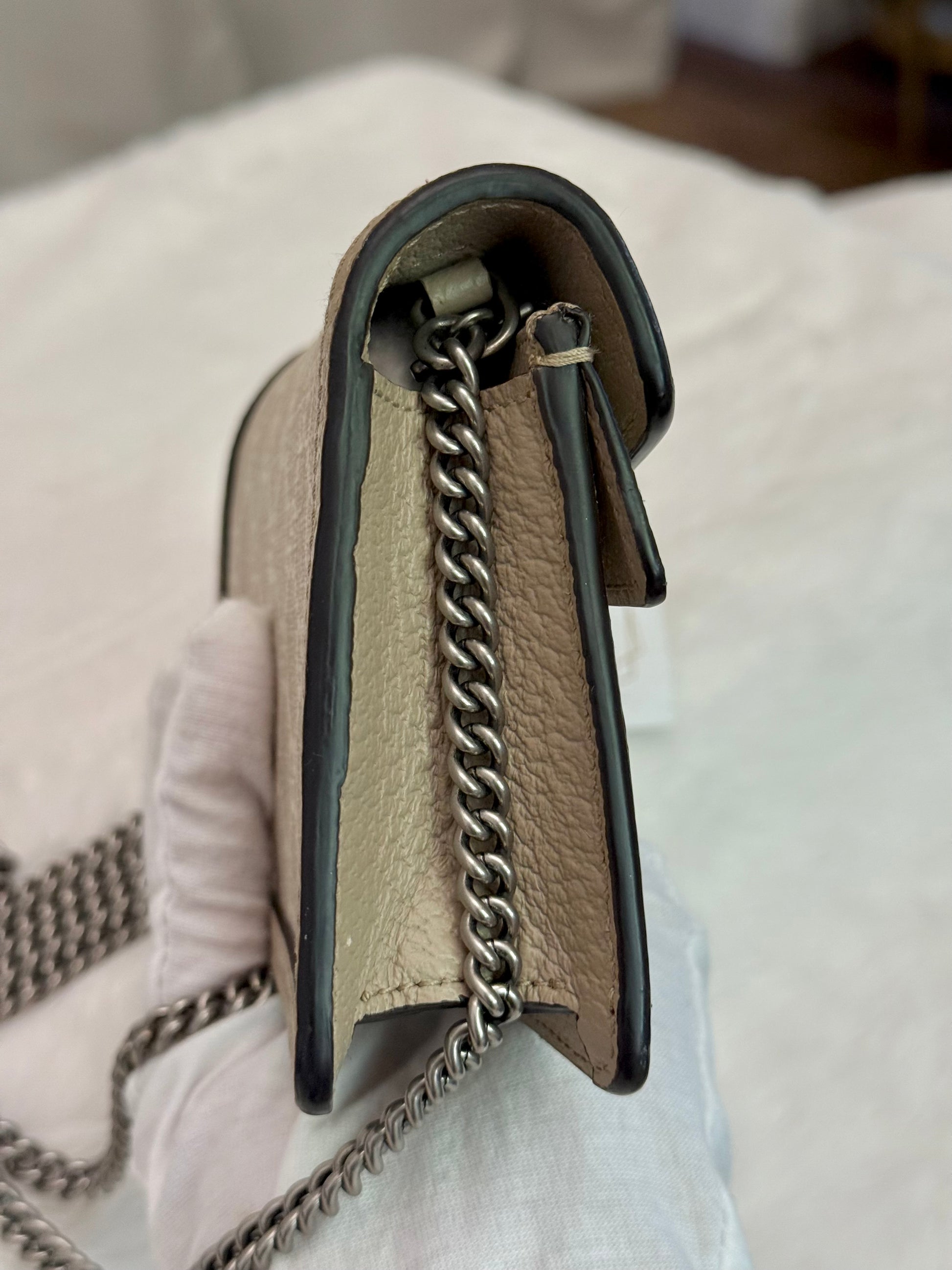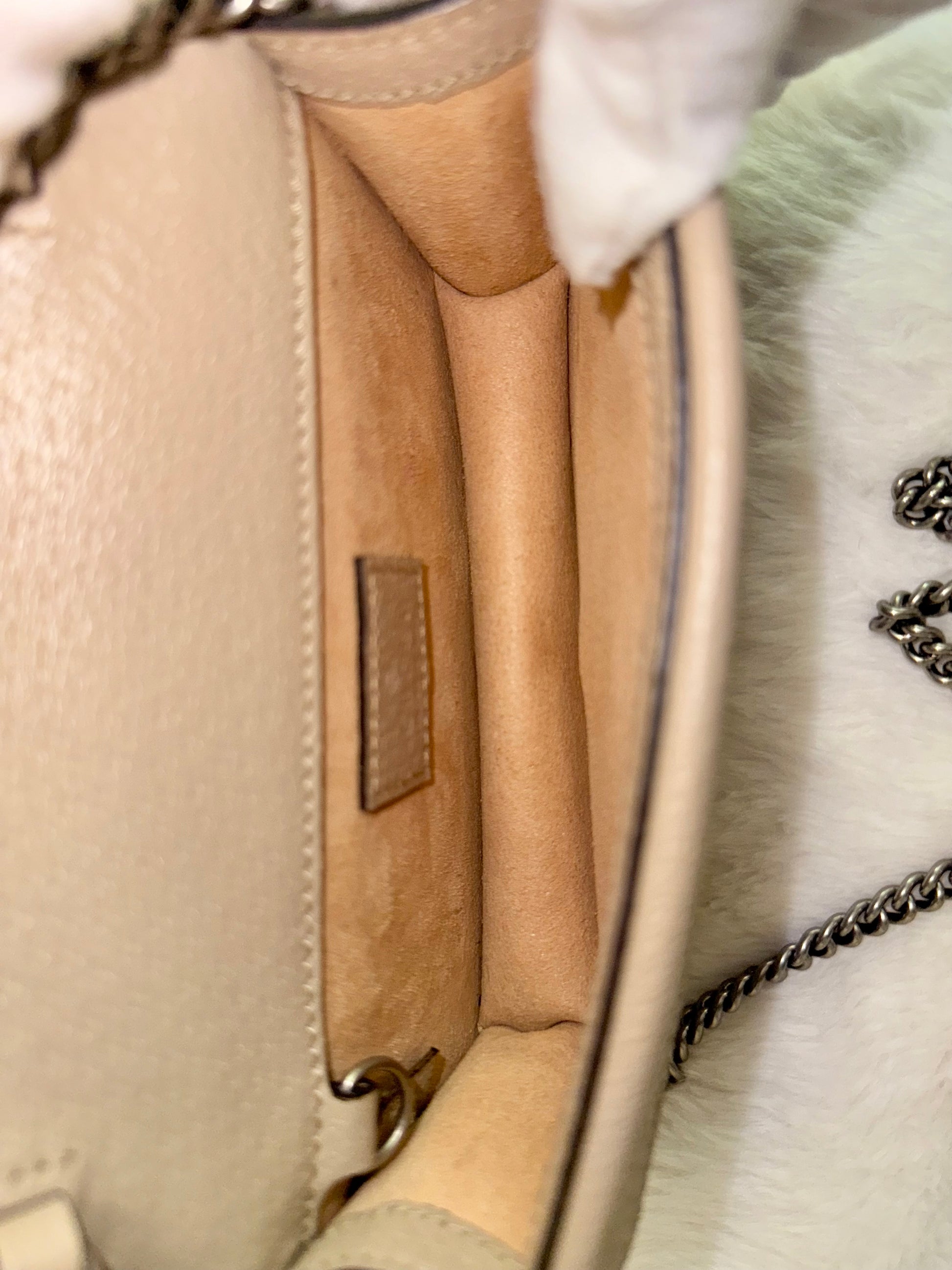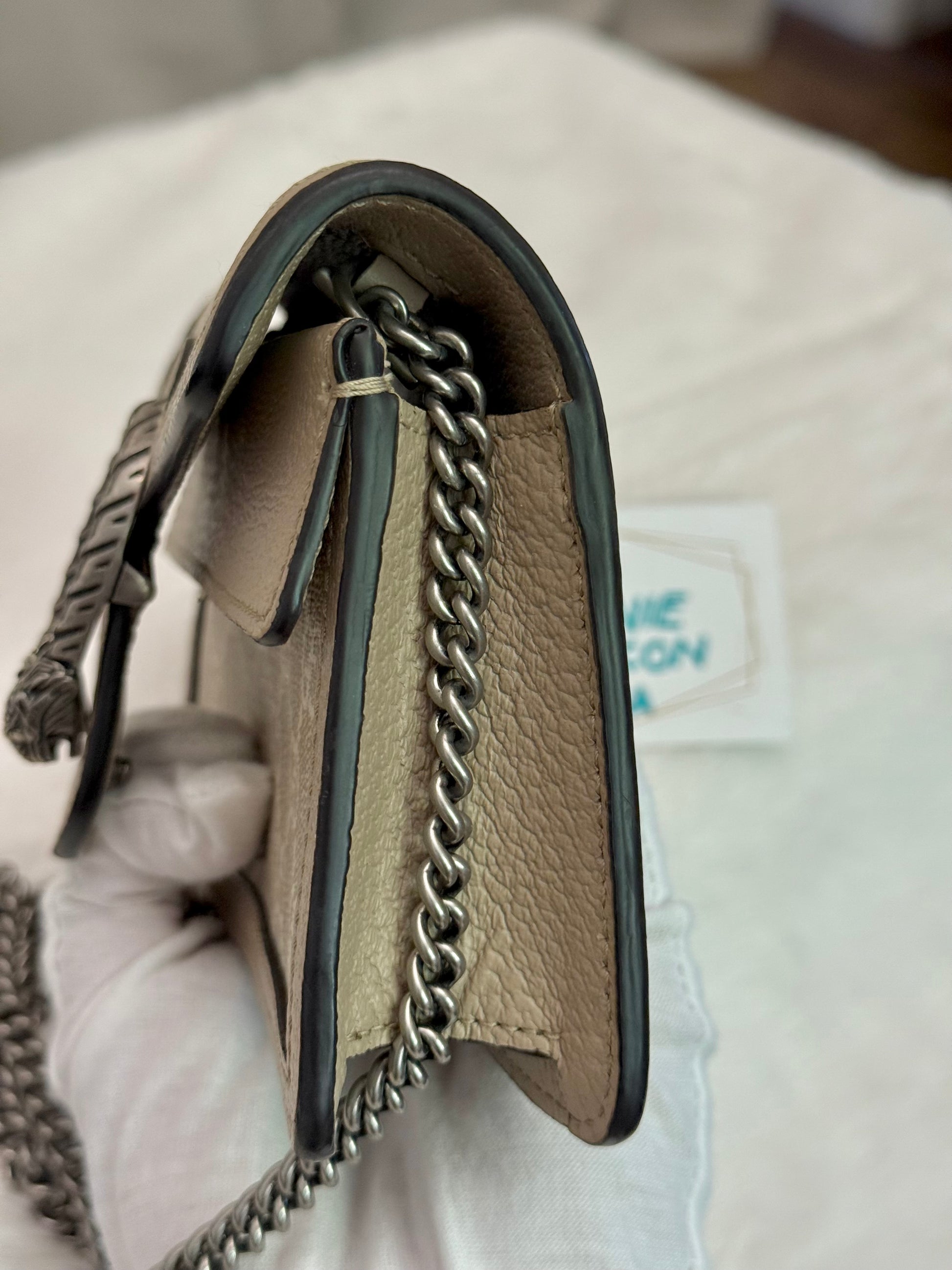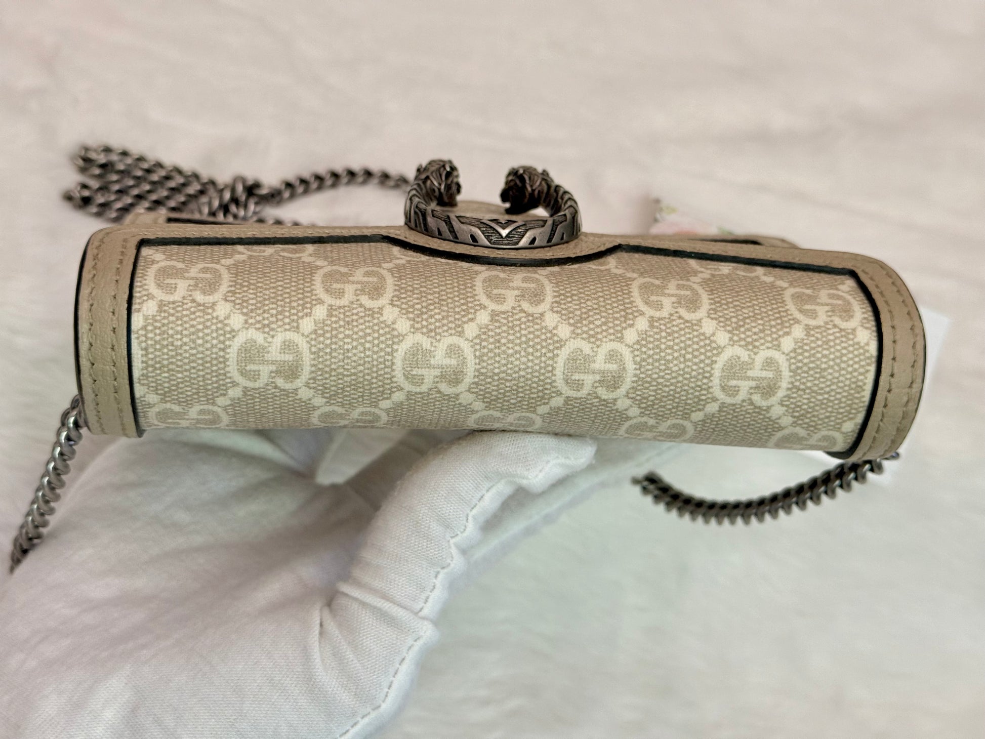 EXCELLENT CONDITION. Coated Canvas is in great condition. Tiger head closure has no flaws. Chain strap has no flaws. Snap closure is still tight. Interior has no major stains but it has reddish faint marks. Trim leather is pristine. No offensive odors, comes from pet and smoke free home.
