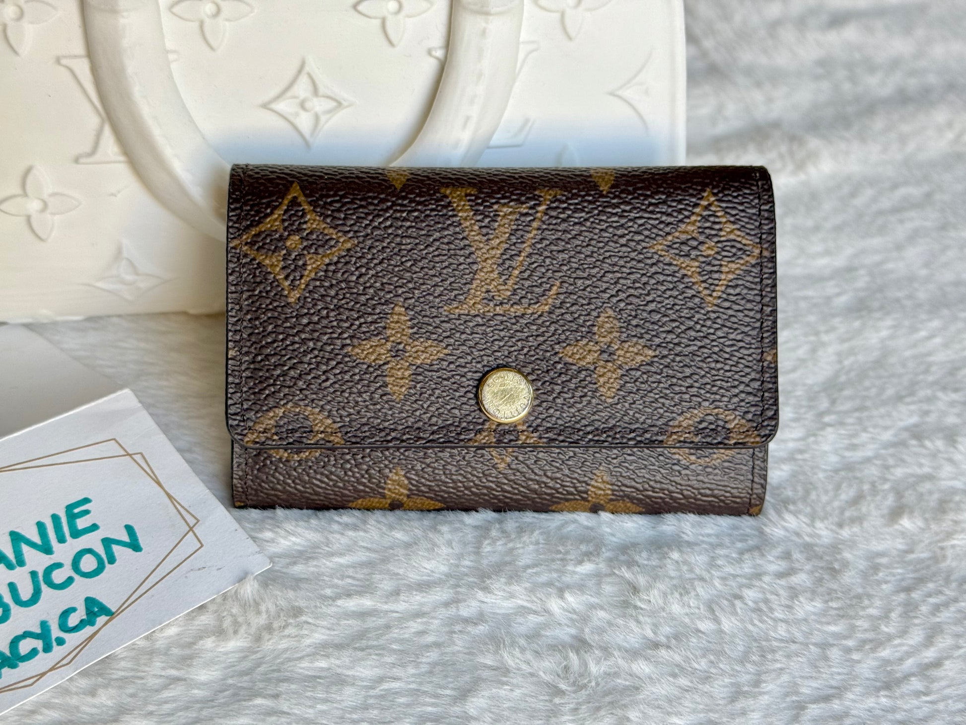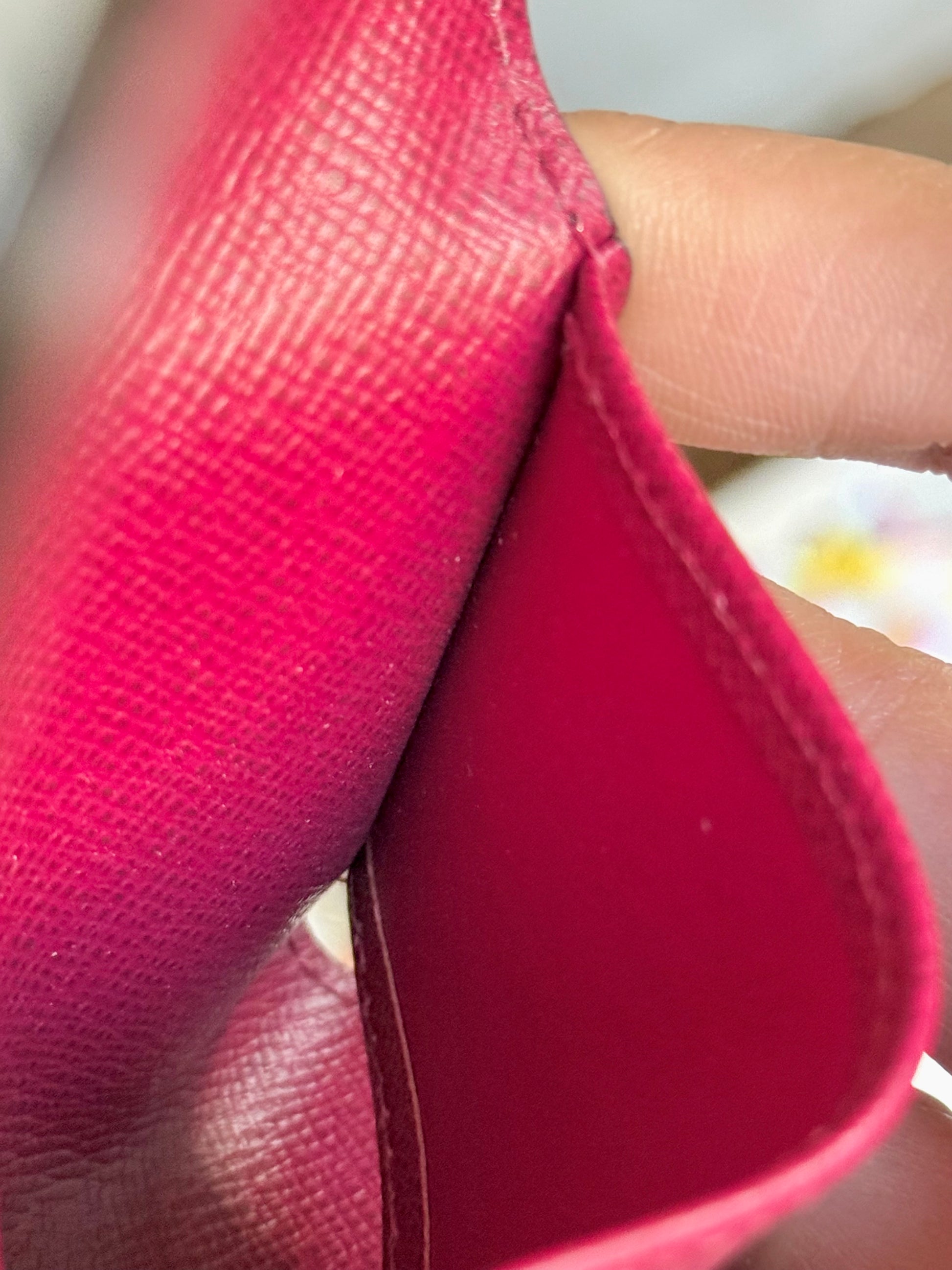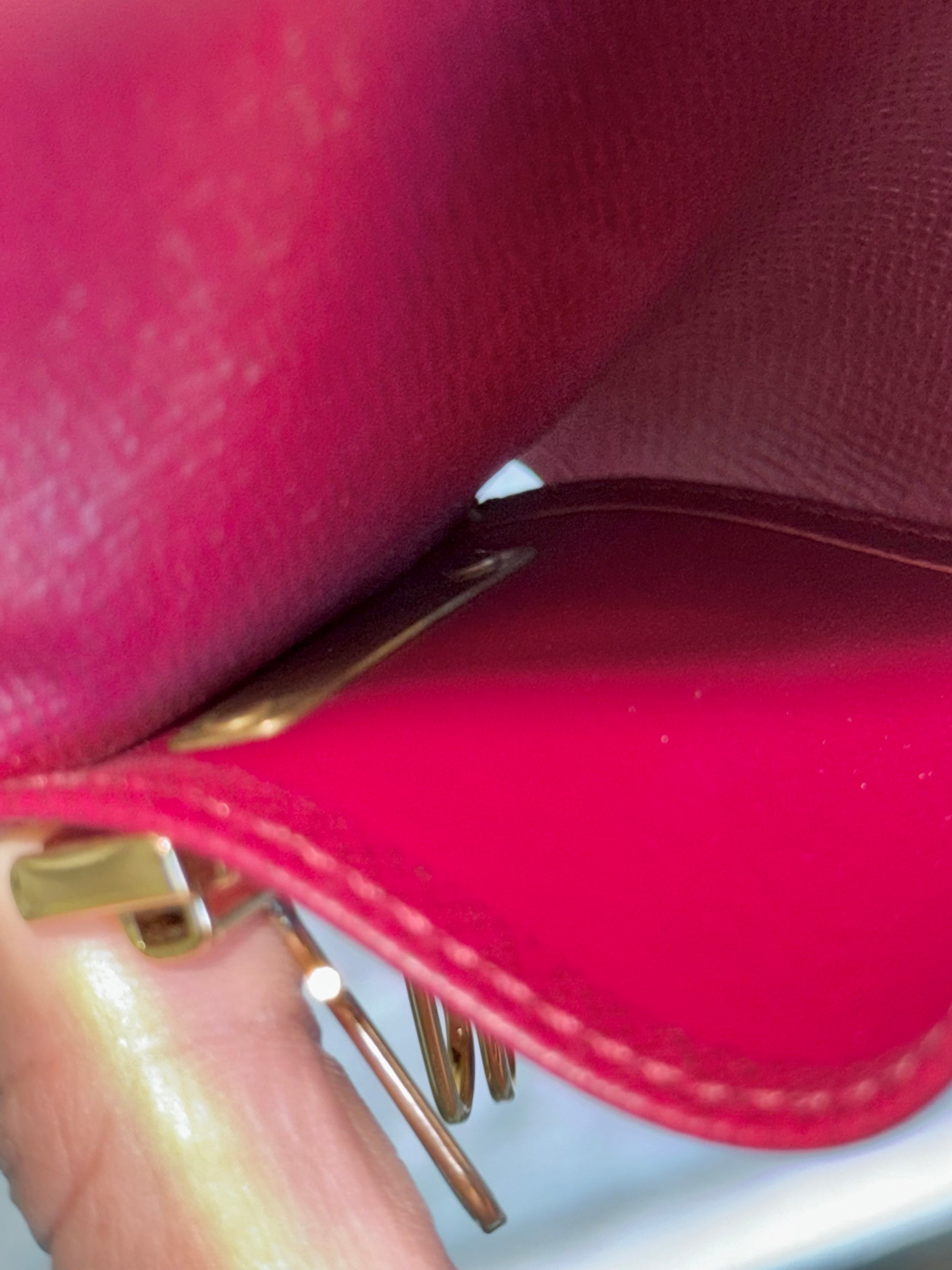 In EXCELLENT condition! Interior color Fuchsia is discontinued. No flaws on canvas, glazing and interior. Hardware shows signs of use: hairline scratches on front button and on key holders.