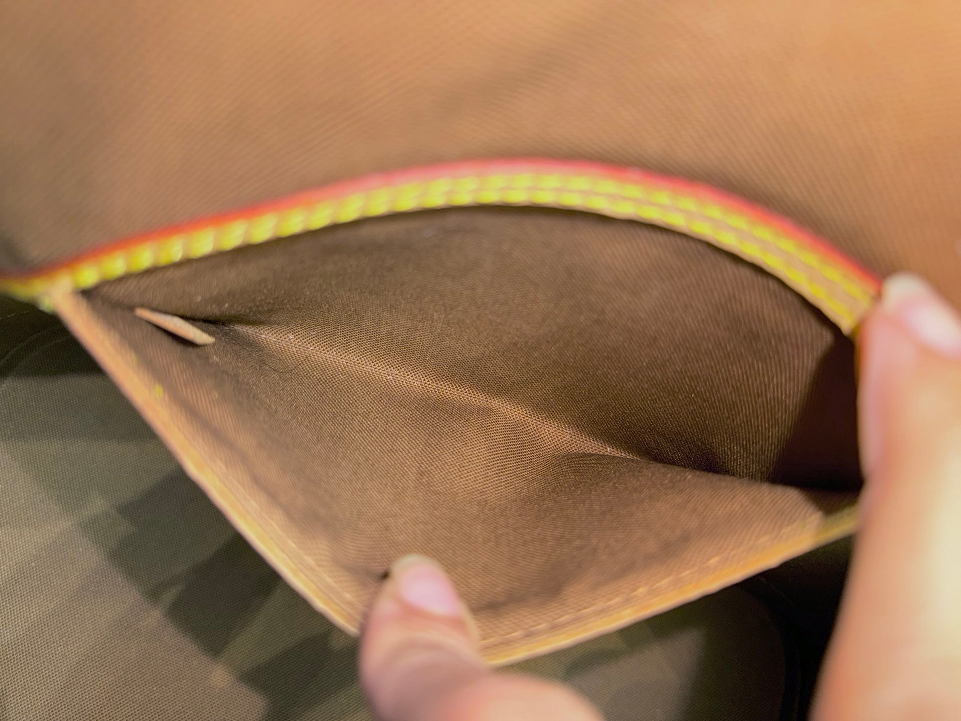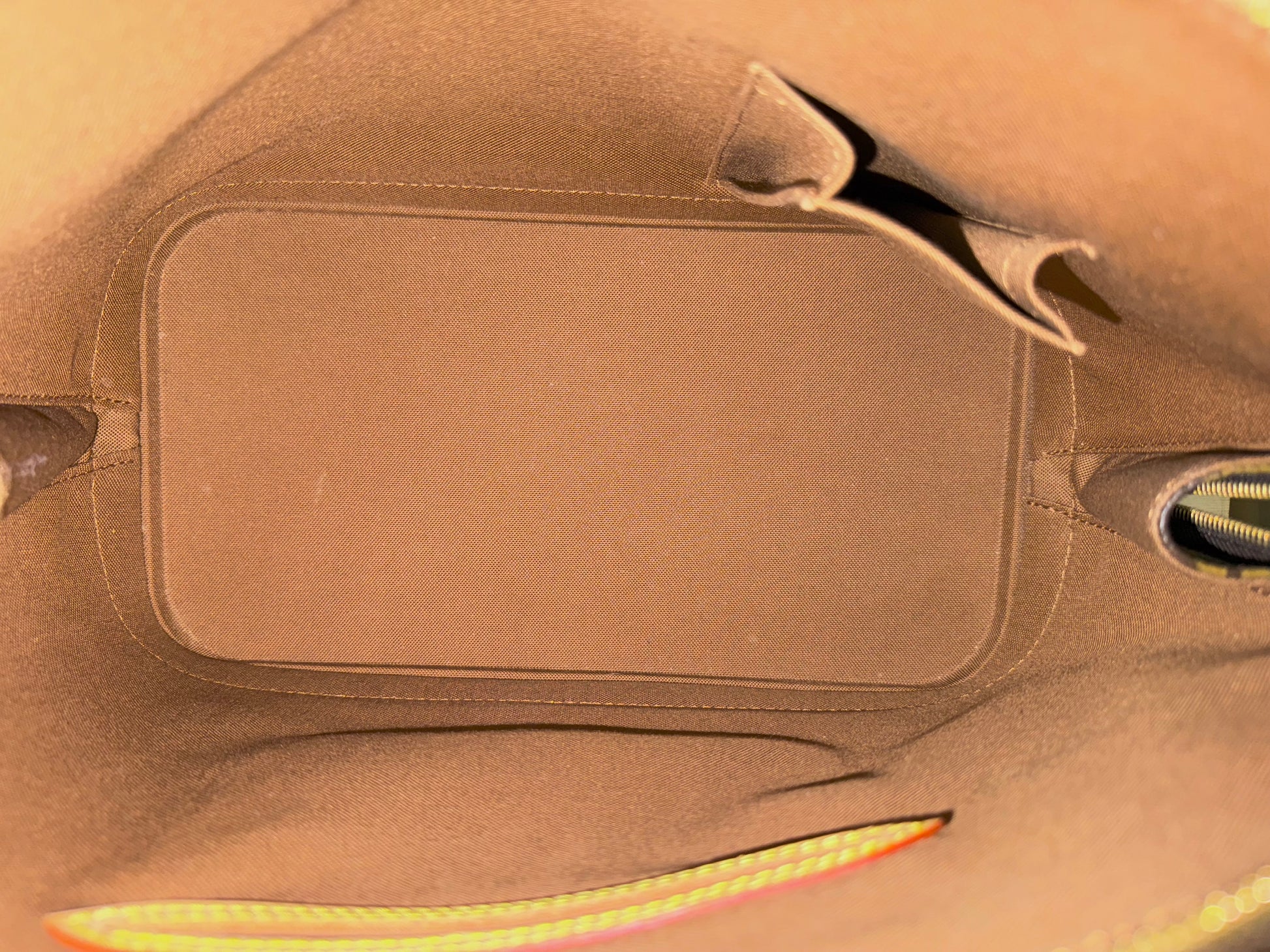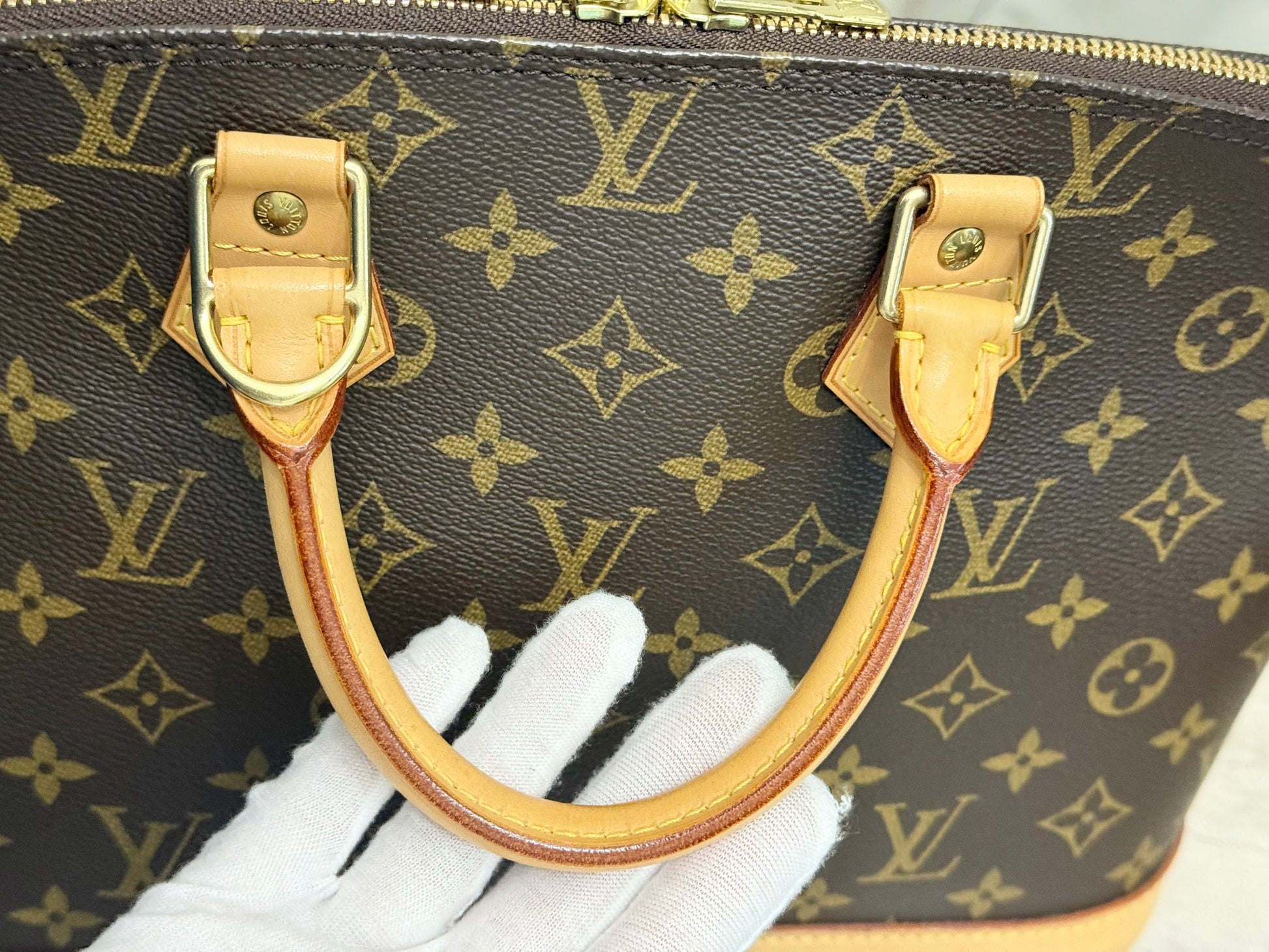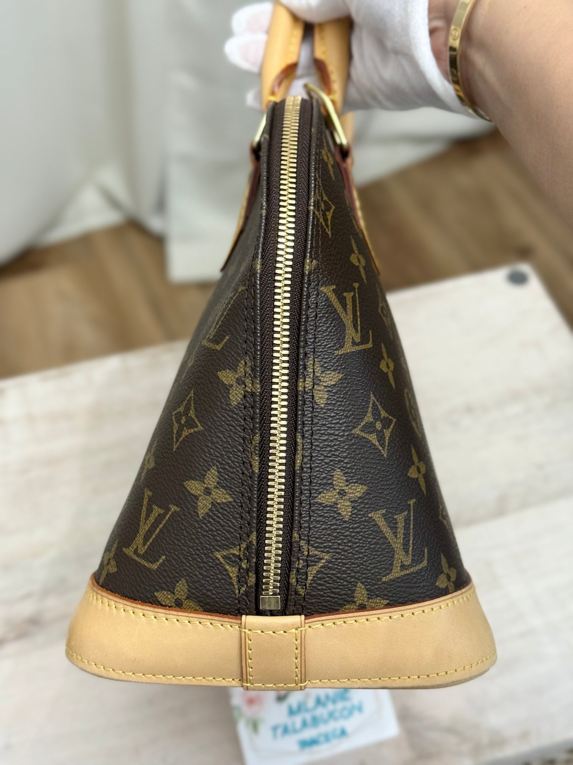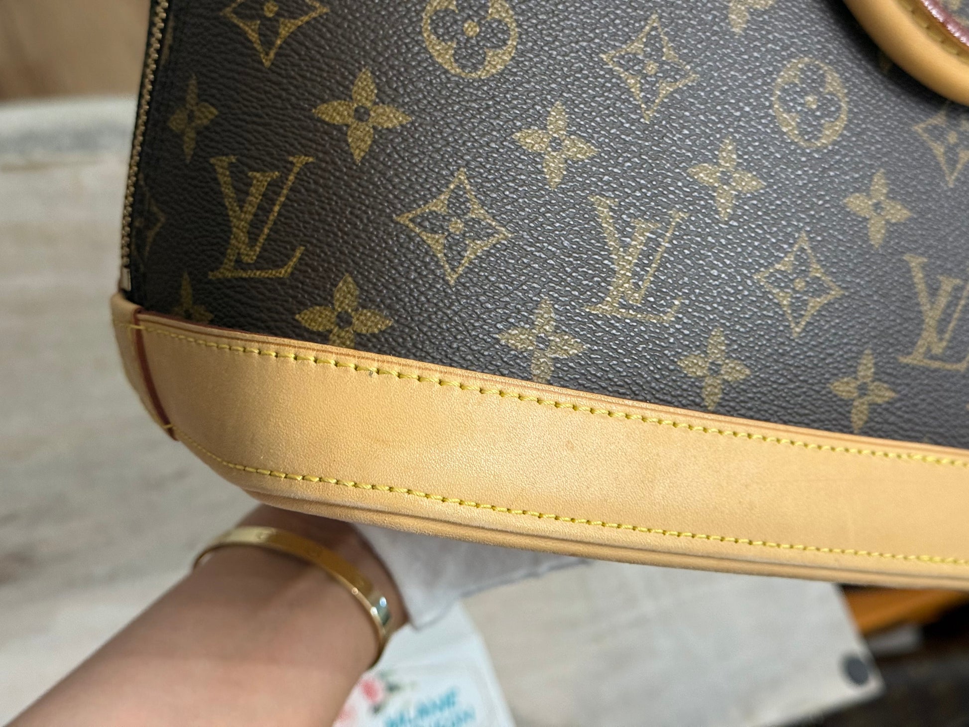 The bag is in EXCELLENT preowned condition! Canvas has no cracks. Zipper runs smooth. Hardware is golden. Interior is clean with minor marks. Vachetta has light patina. Bottom vachetta leather has light patina with marks. No offensive odors, comes from pet and smoke free home.