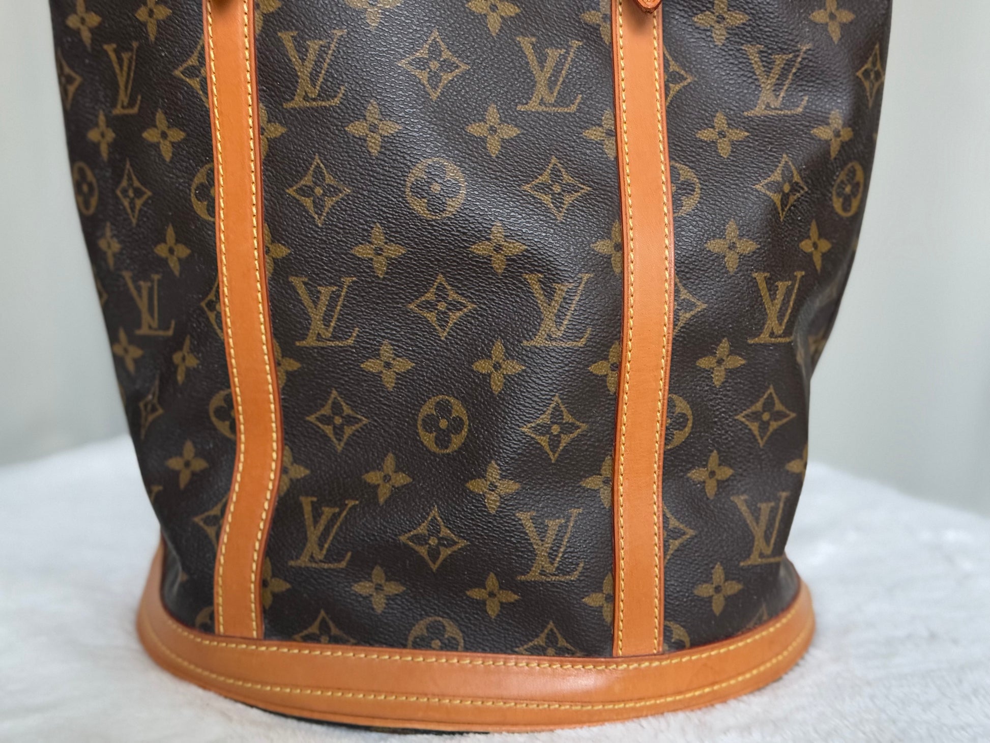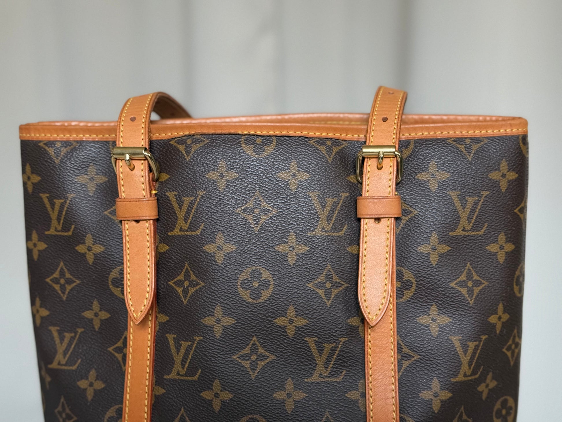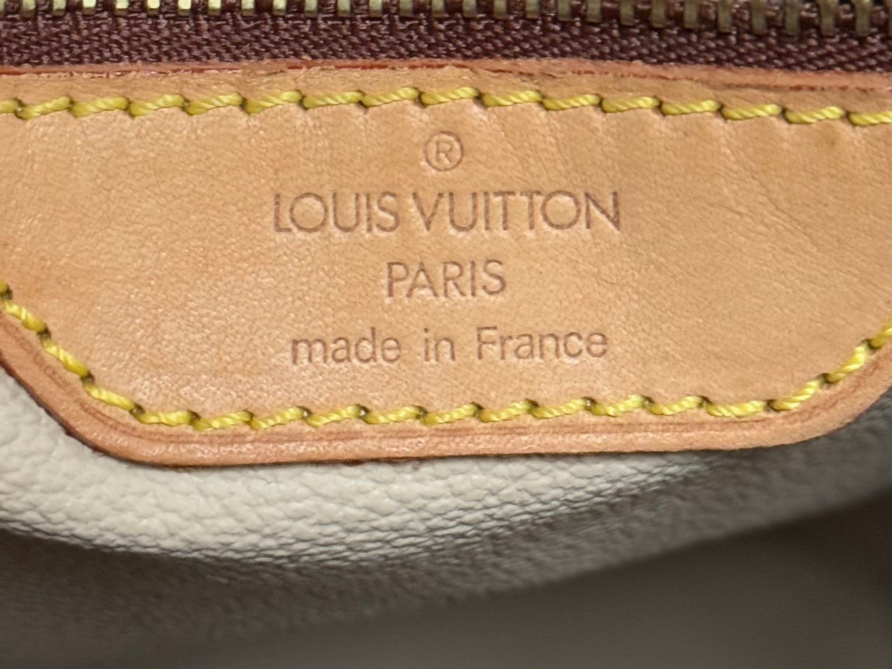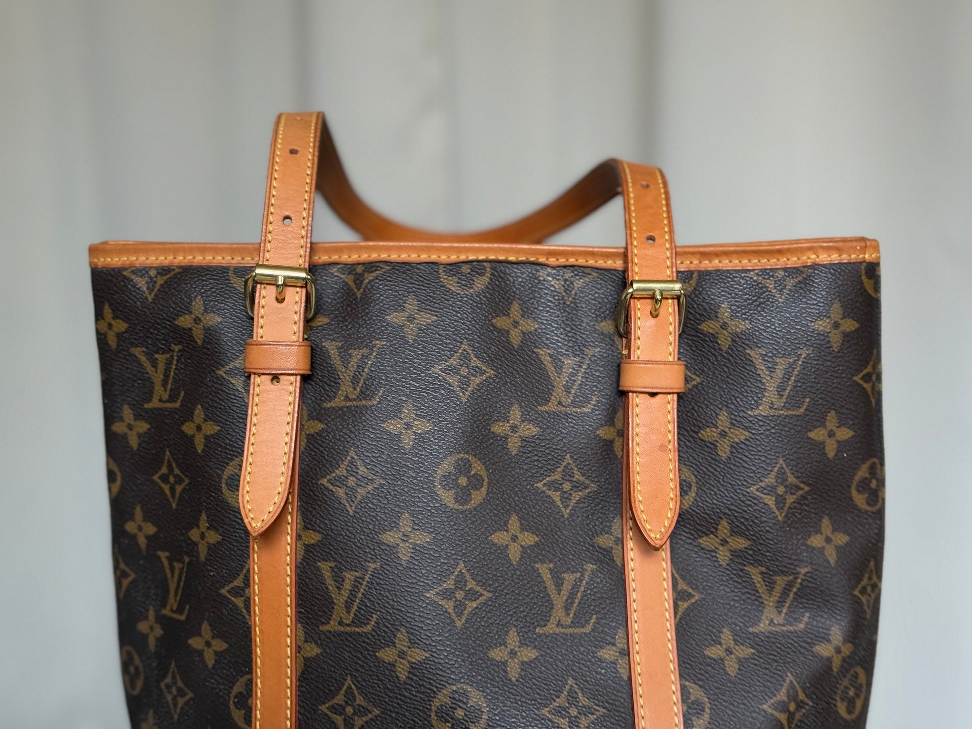The bag is in EXCELLENT condition for her age of 25yo! No flaws on canvas: . Vachetta has lovely patina; trim is solid. Interior has no stickiness, just scuffs and stretched area due to use. Hardware is golden and no tarnish. No offensive odors, comes from pet and smoke free home.