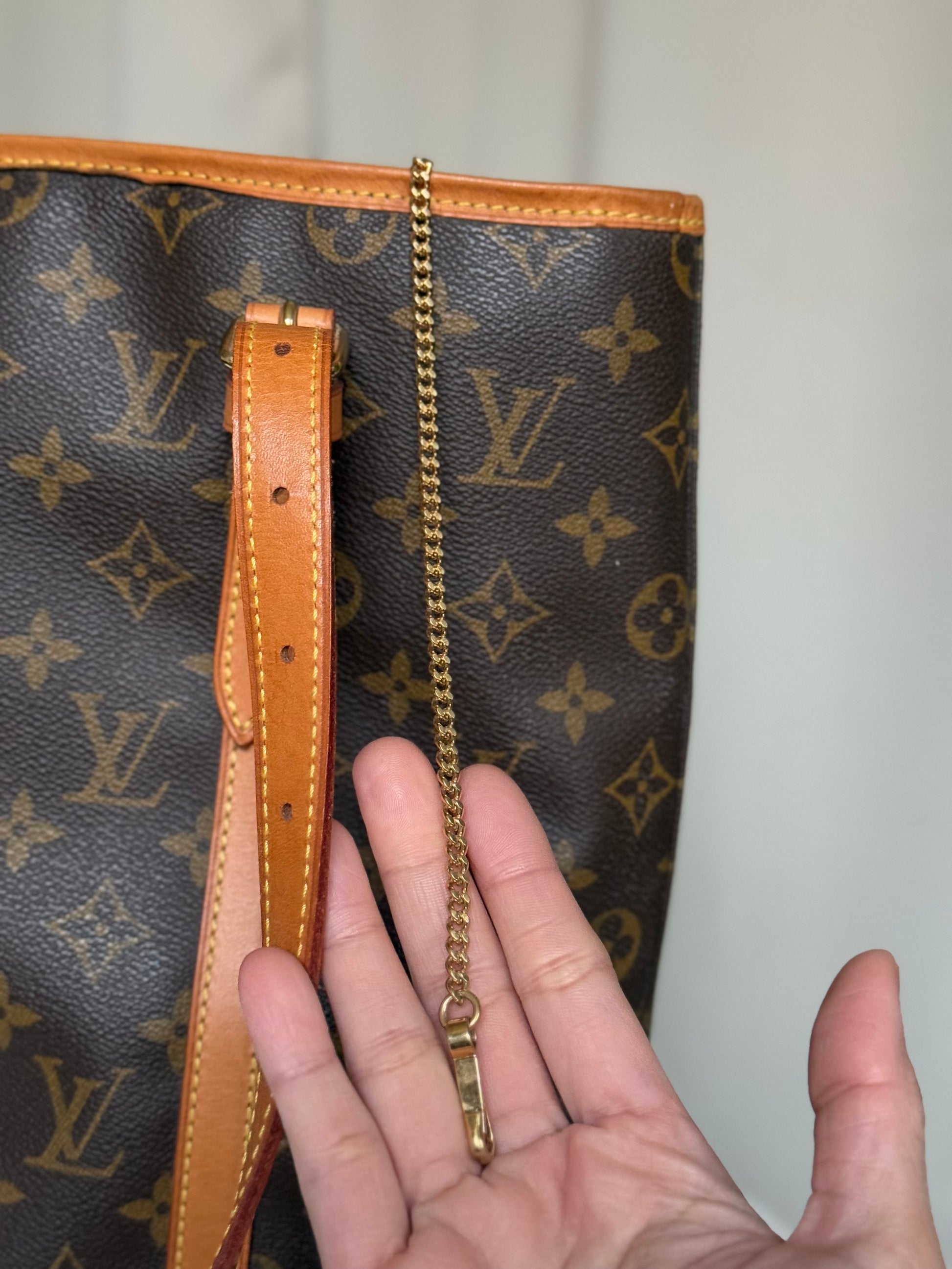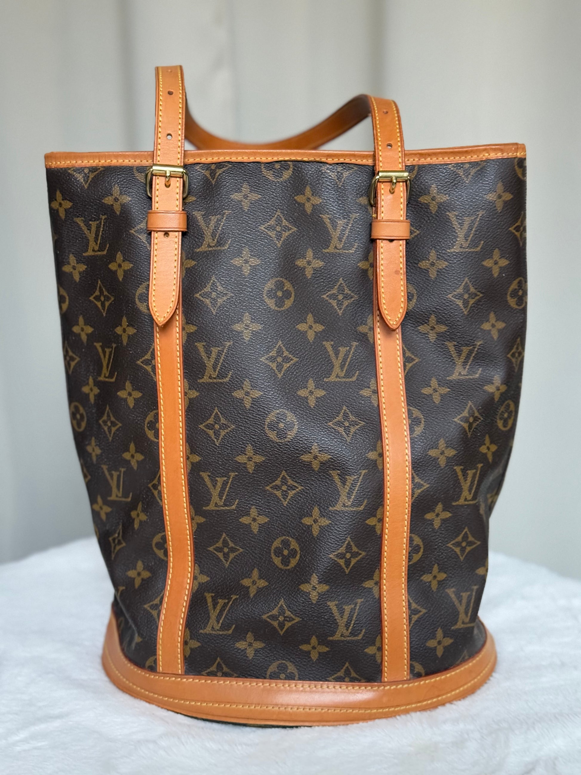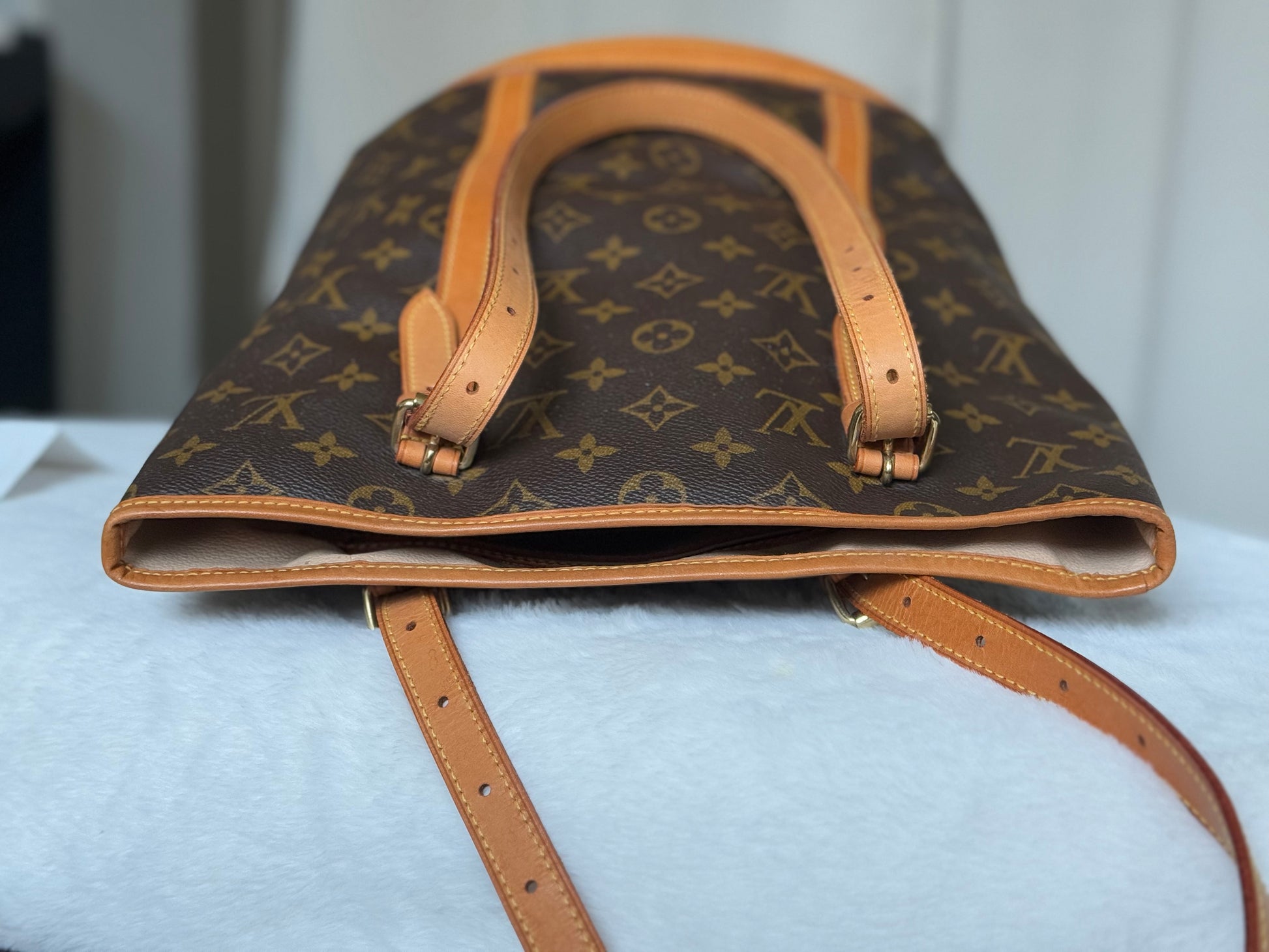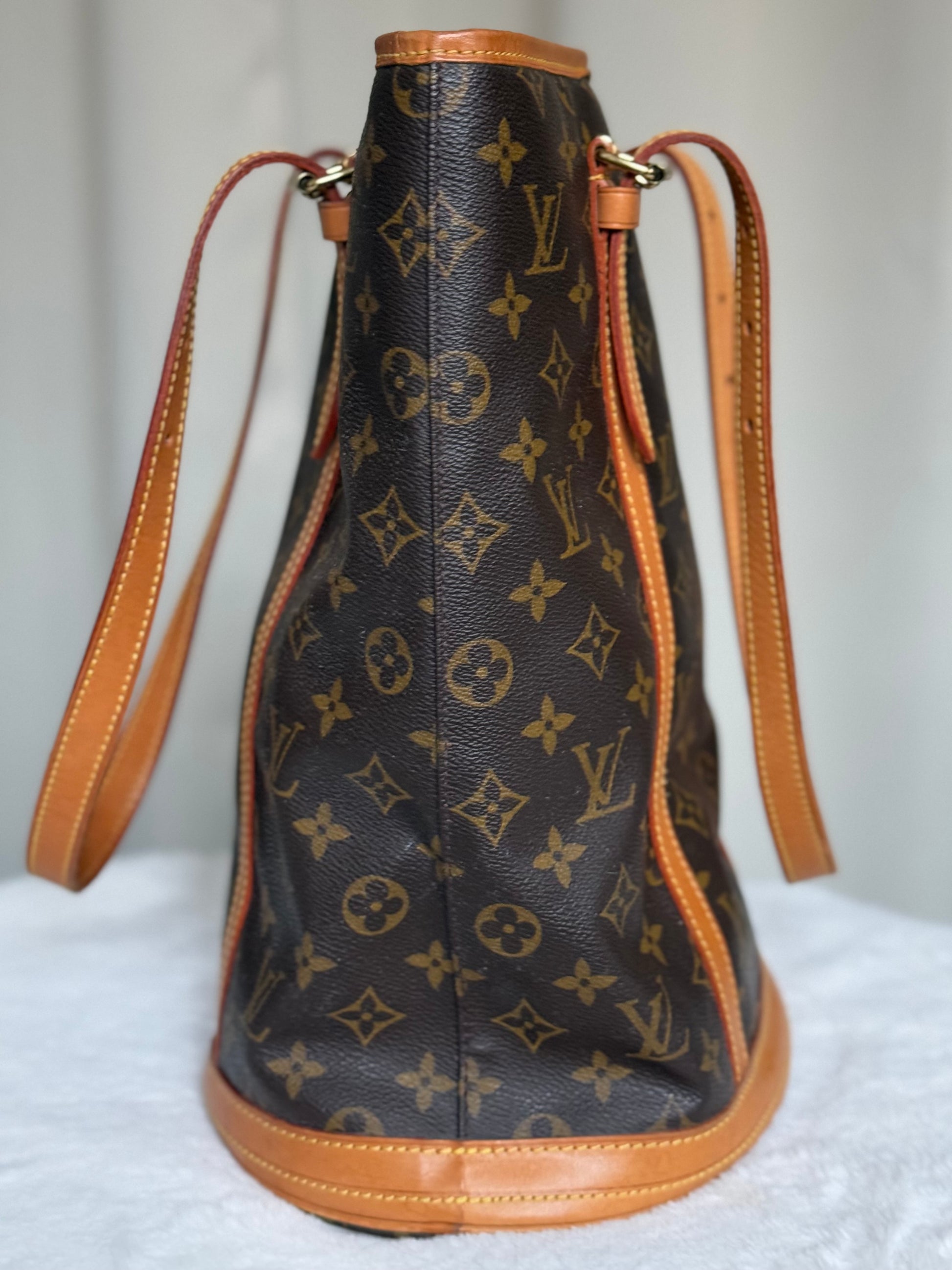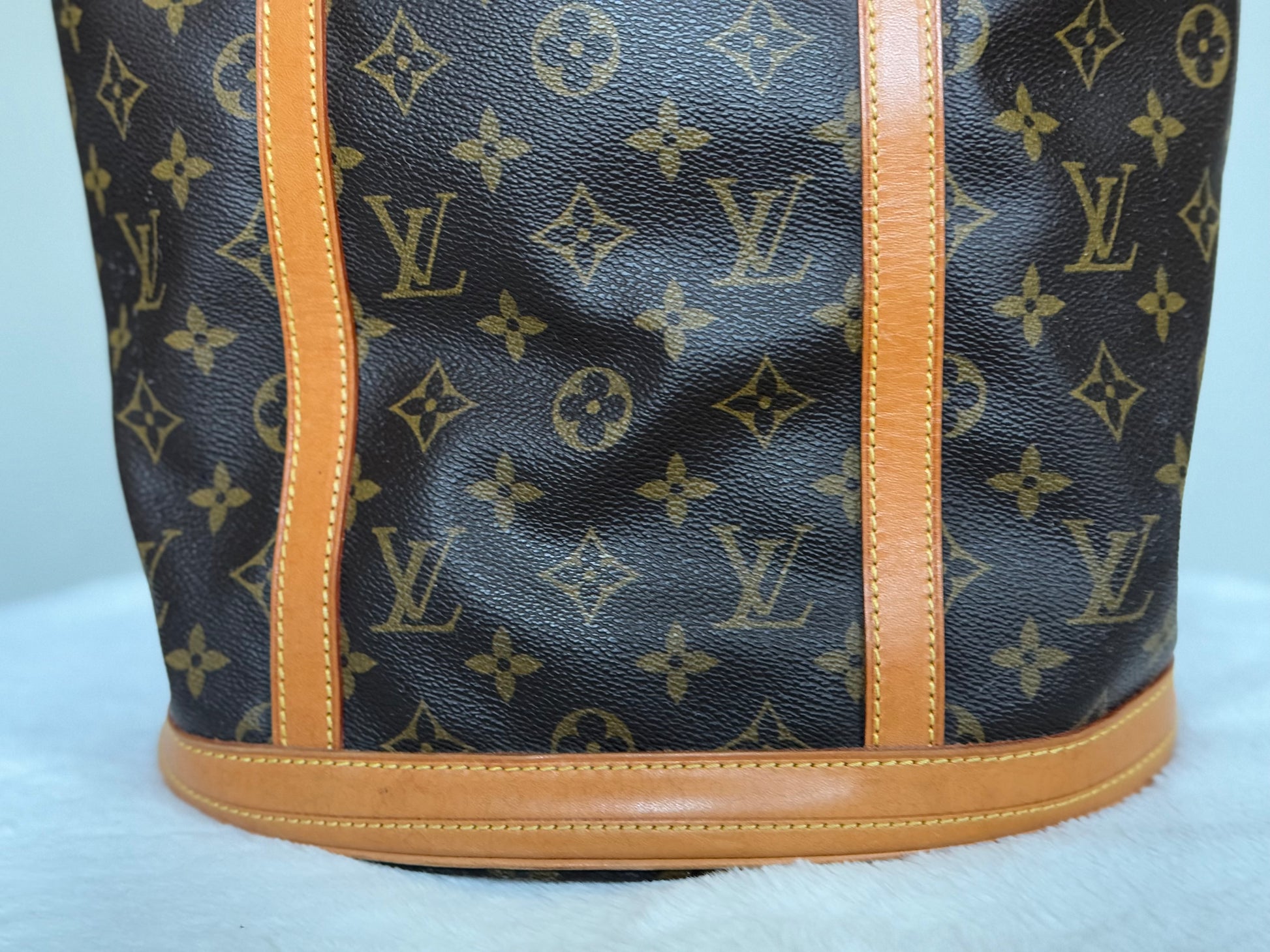 The bag is in EXCELLENT condition for her age of 25yo! No flaws on canvas: . Vachetta has lovely patina; trim is solid. Interior has no stickiness, just scuffs and stretched area due to use. Hardware is golden and no tarnish. No offensive odors, comes from pet and smoke free home.