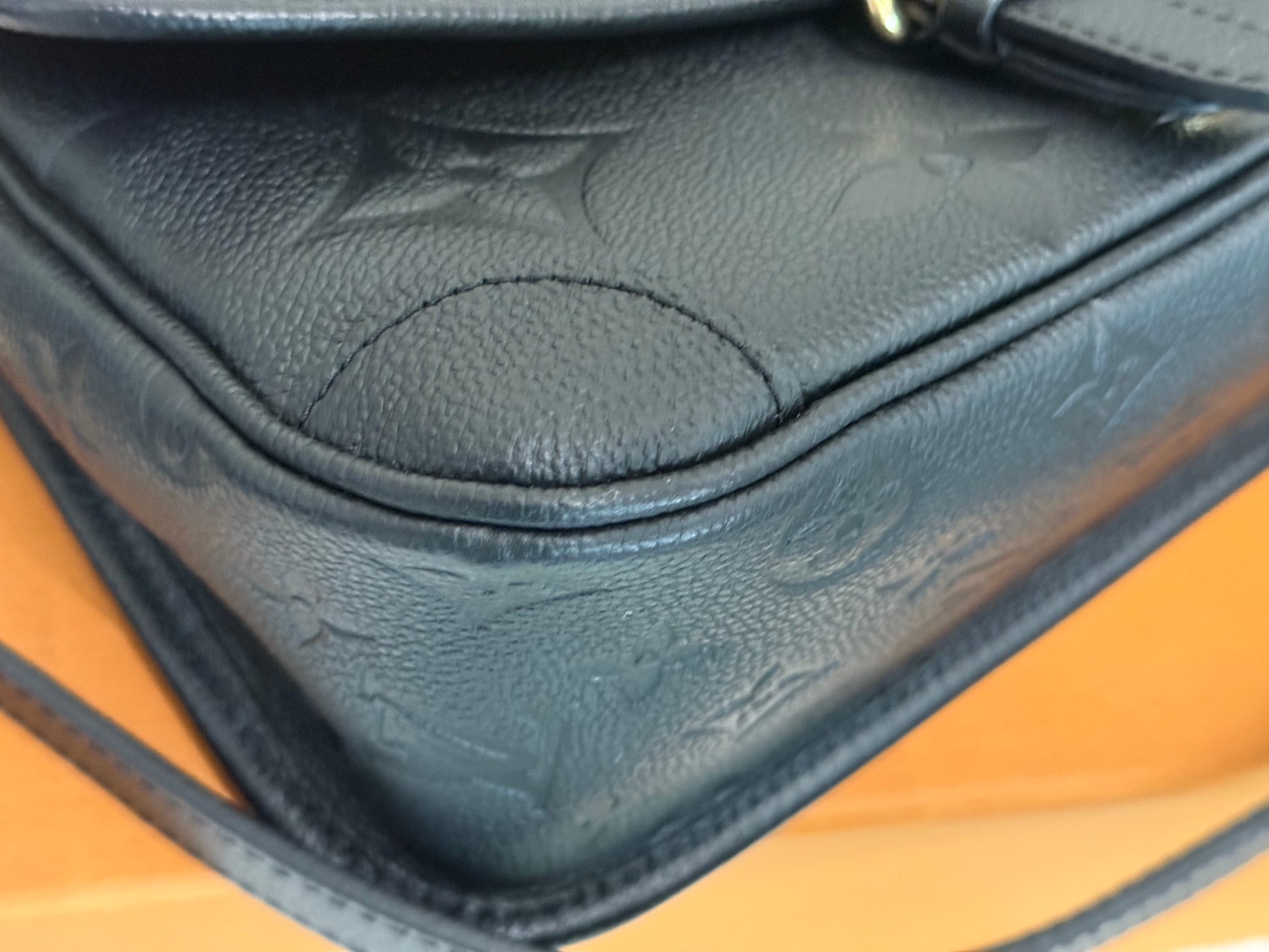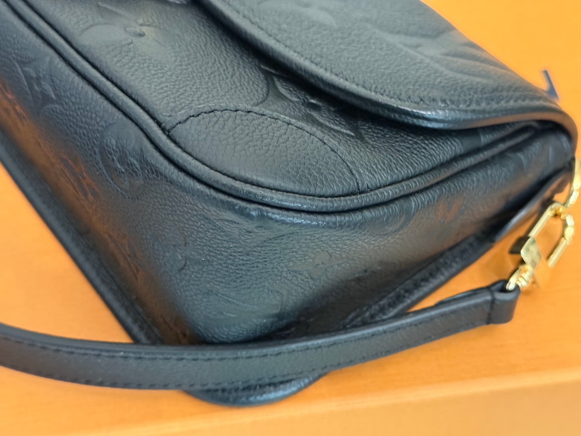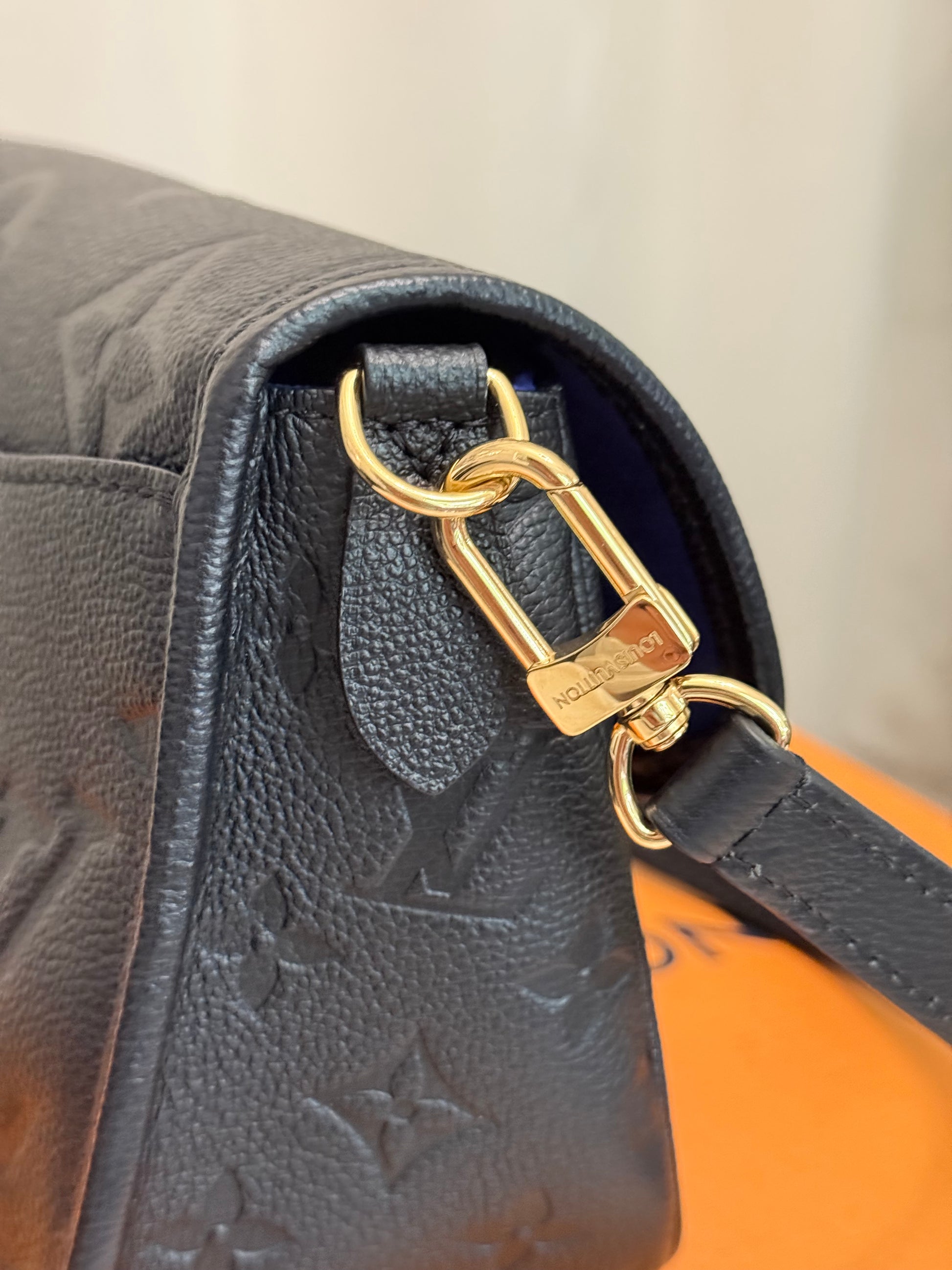 In MINT/ALMOST NEW condition! No flaws to mention on leather, hardware, straps and glazing. Empreinte leather has deep embossing. Hardware is golden with faint hairline scratches. Interior is clean as well as the interior pocket. No offensive smell, comes from pet and smoke free home.