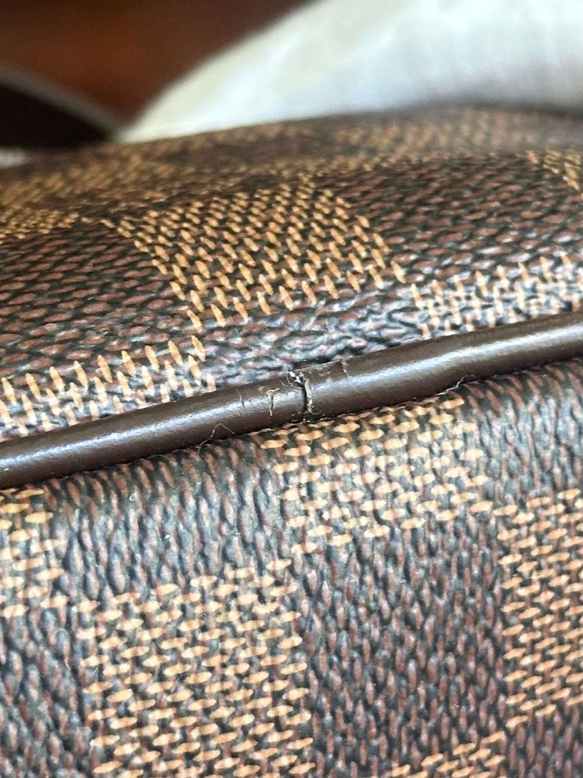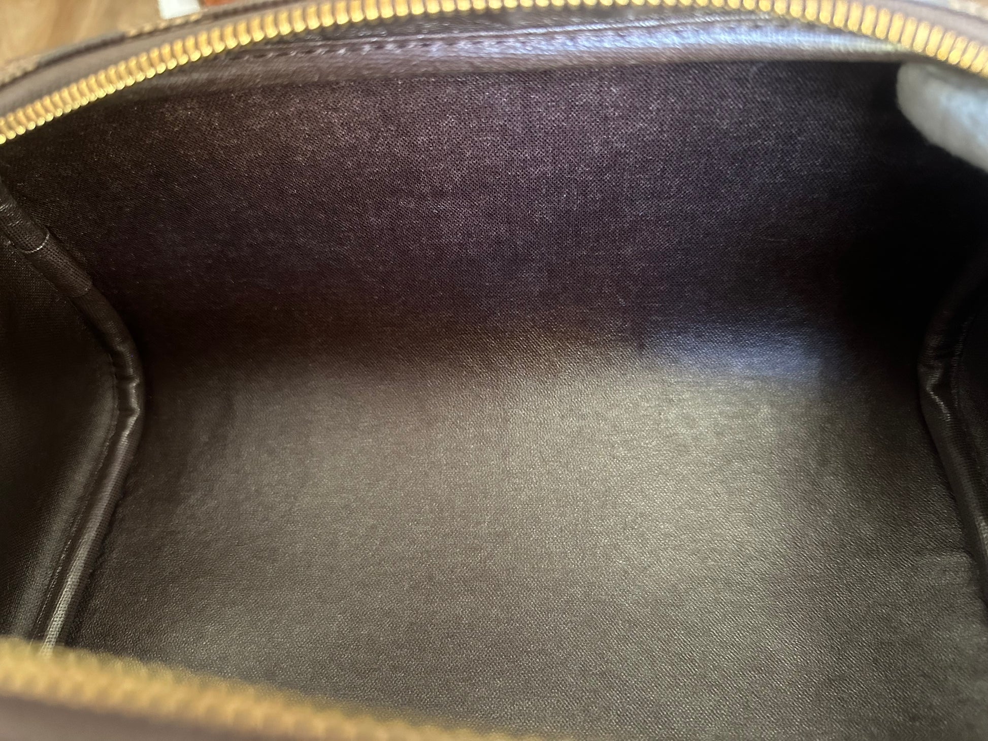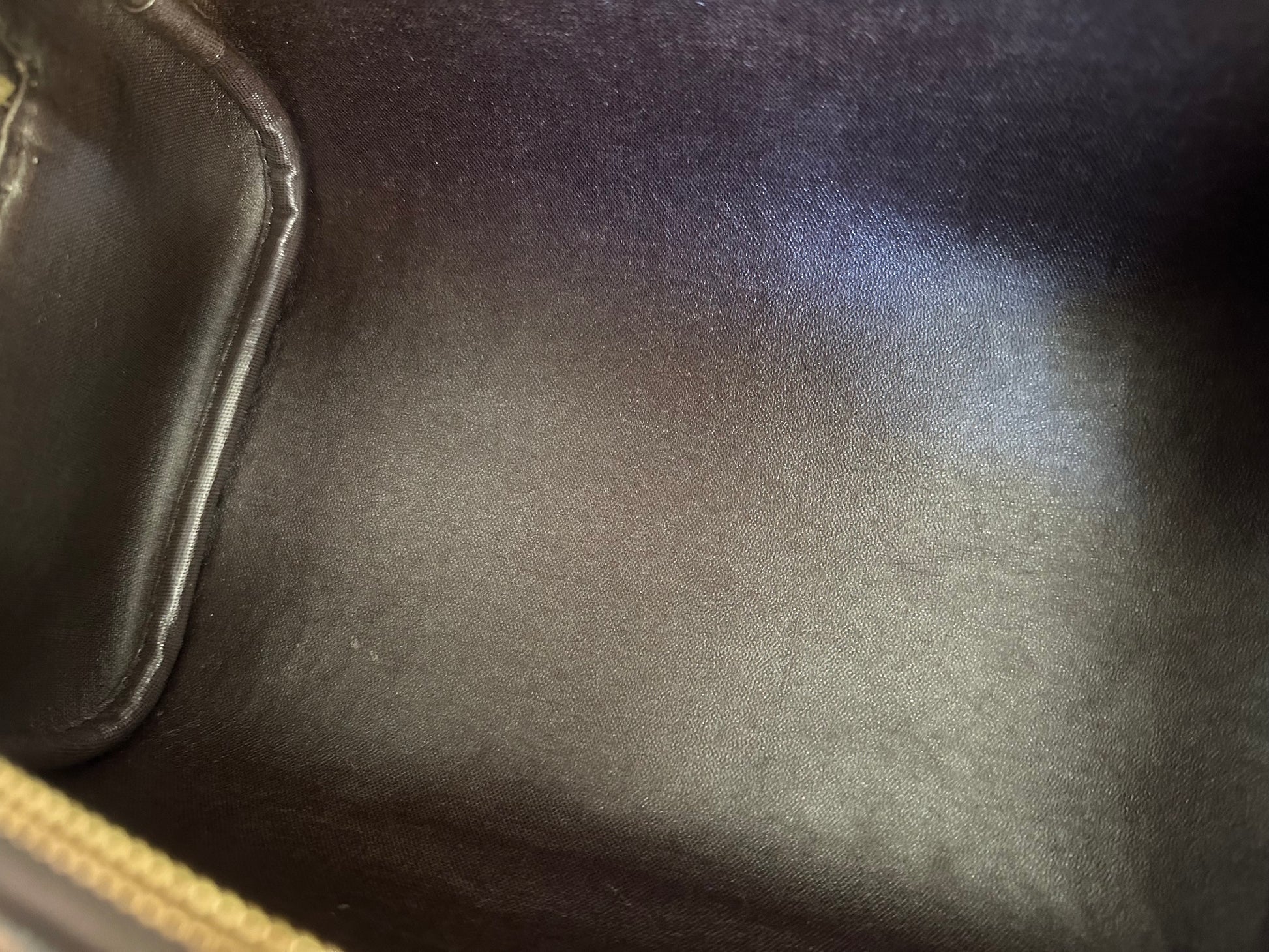 In EXCELLENT condition! Canvas is in great shape! Leather tab, handle and pipings have signs of use. Interior shows usage spots, please see pics. No strong perfume or soap smell, comes from pet and smoke free home.