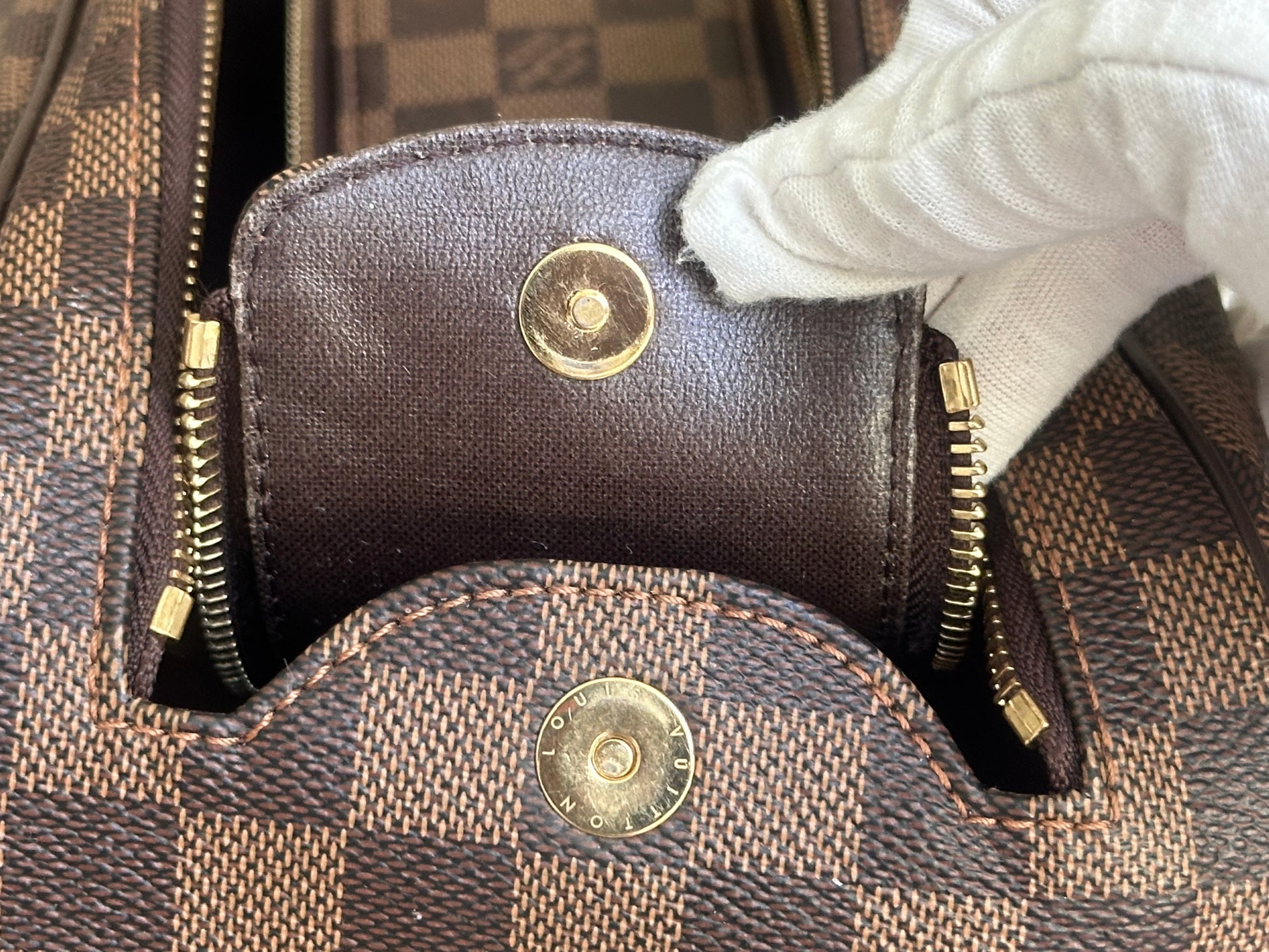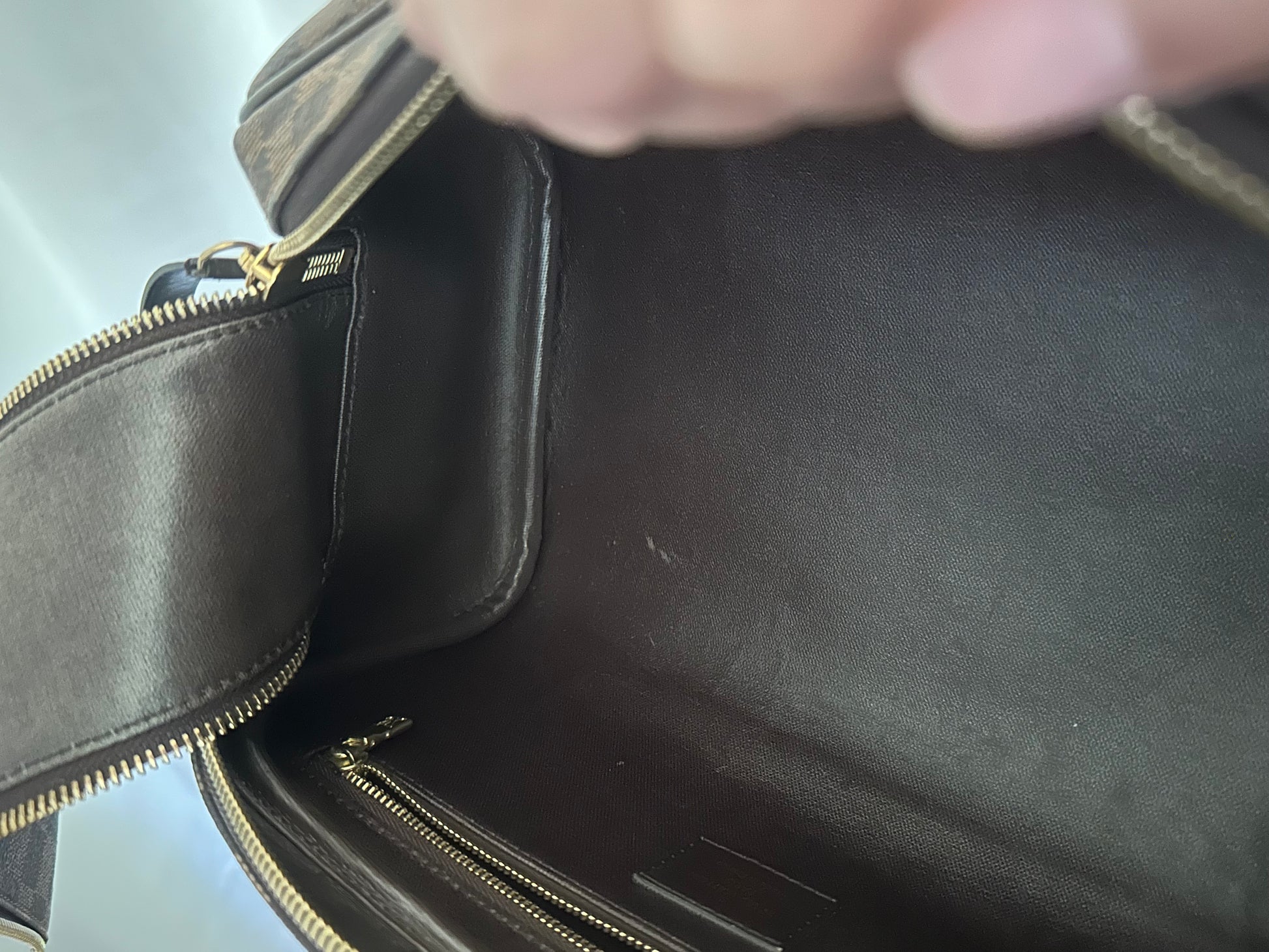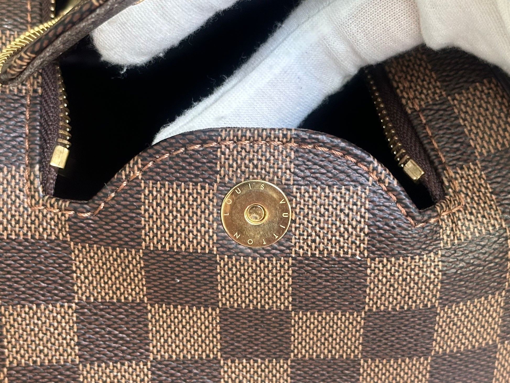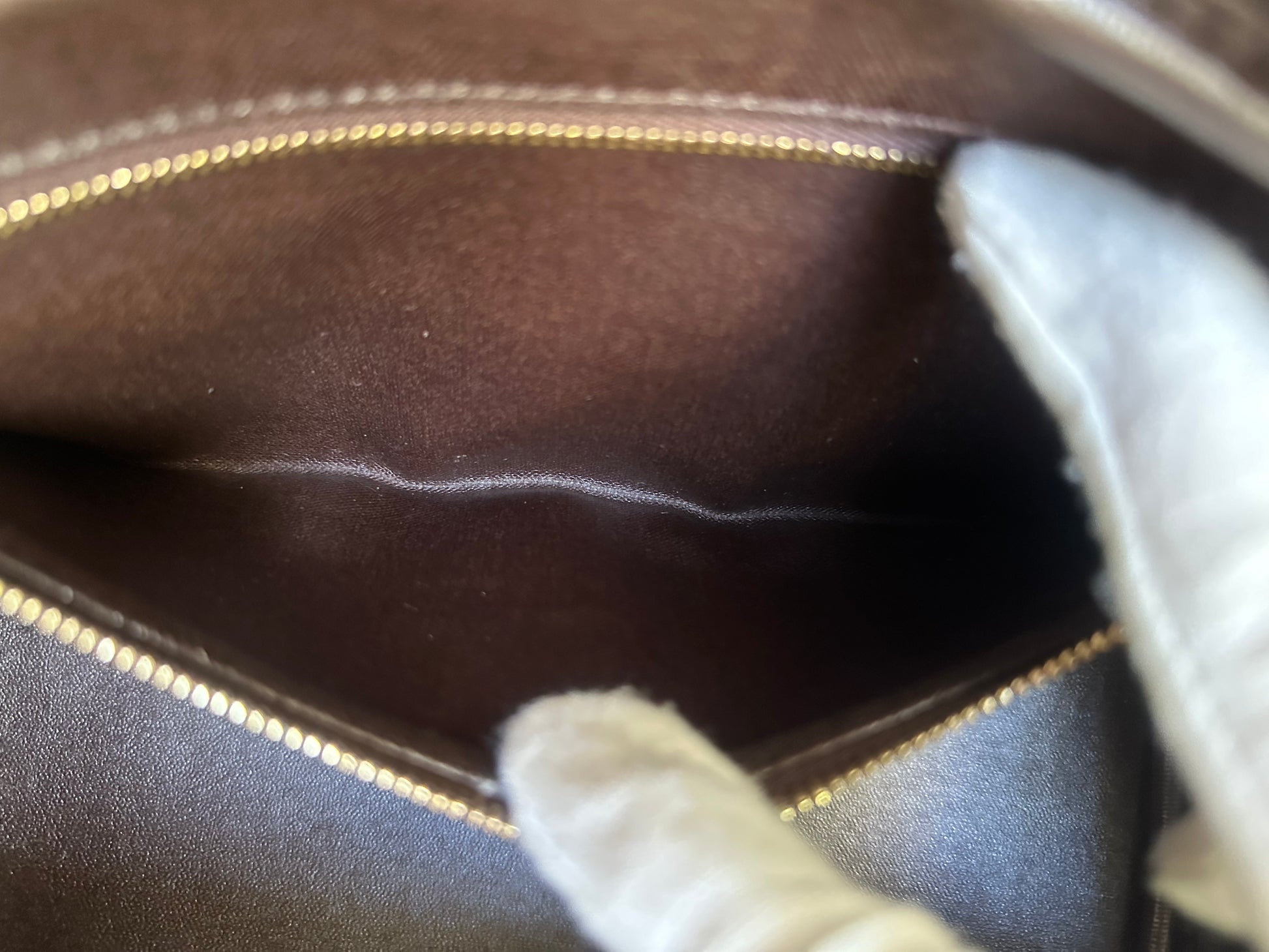 In EXCELLENT condition! Canvas is in great shape! Leather tab, handle and pipings have signs of use. Interior shows usage spots, please see pics. No strong perfume or soap smell, comes from pet and smoke free home.