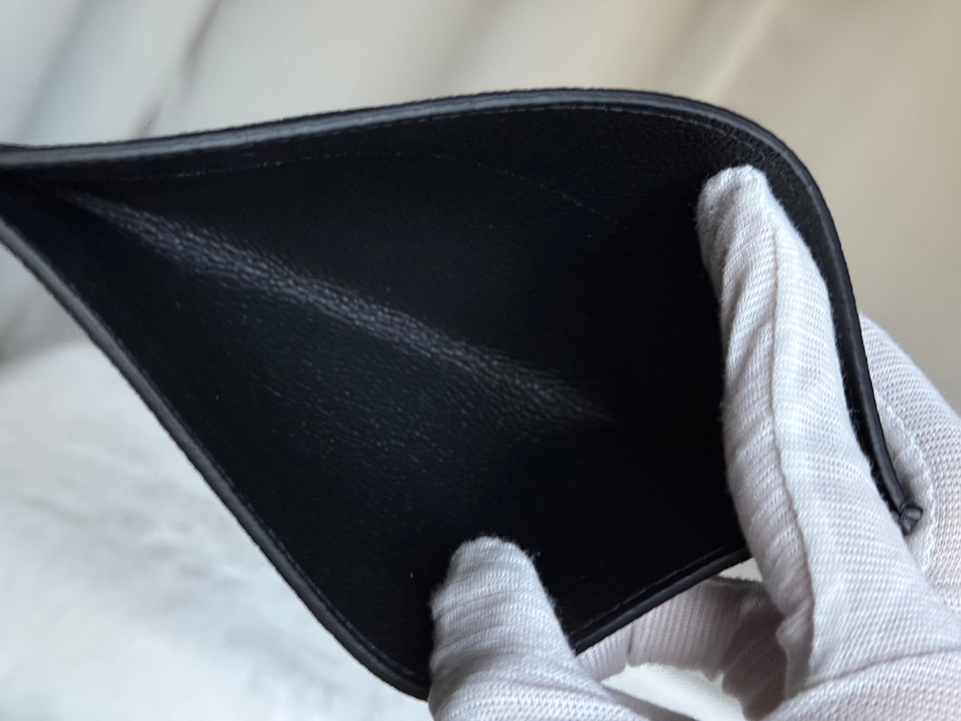 EXCELLENT condition! Minimal signs of use can be seen. Leather is supple and still has deep embossing. Hardware has hairline scratches in front button which is inevitable. Interior is clean. Snap button is still tight. Both inserts are also in excellent condition. No offensive smell, comes from pet and smoke free home.