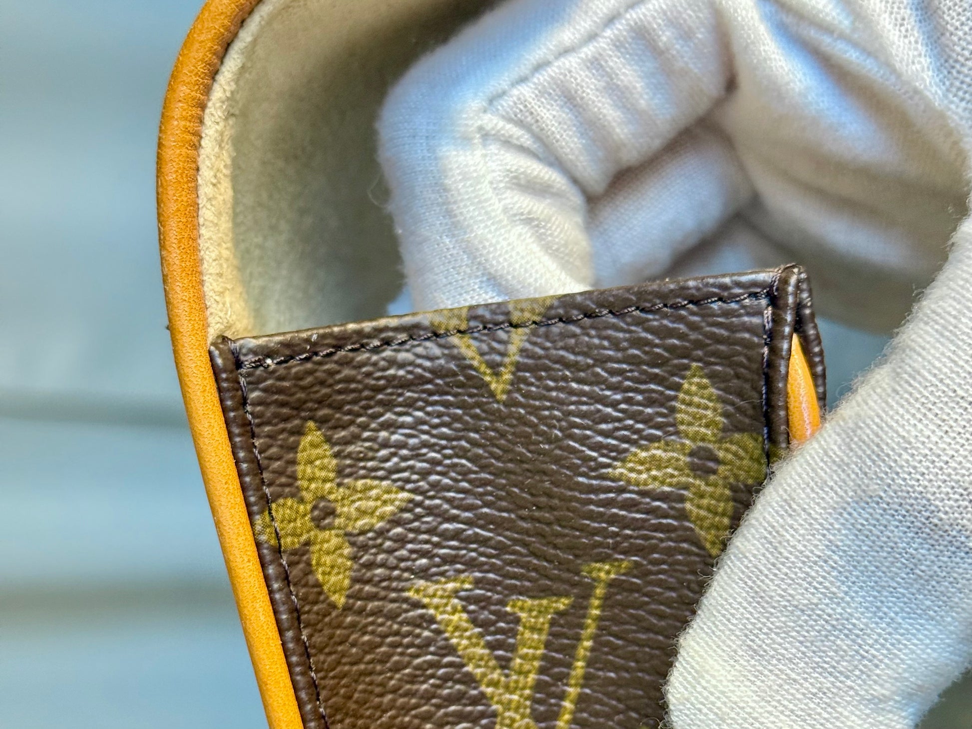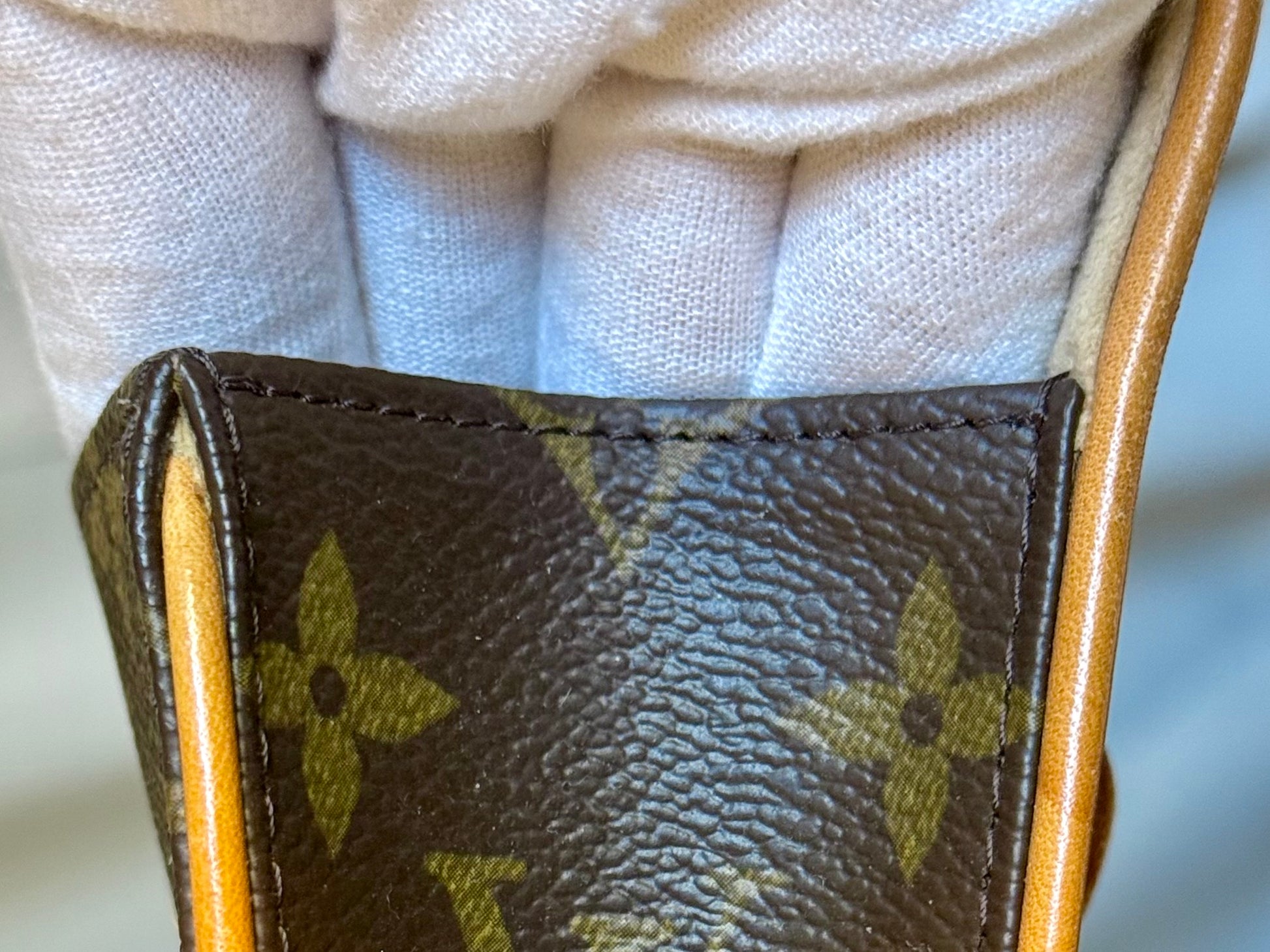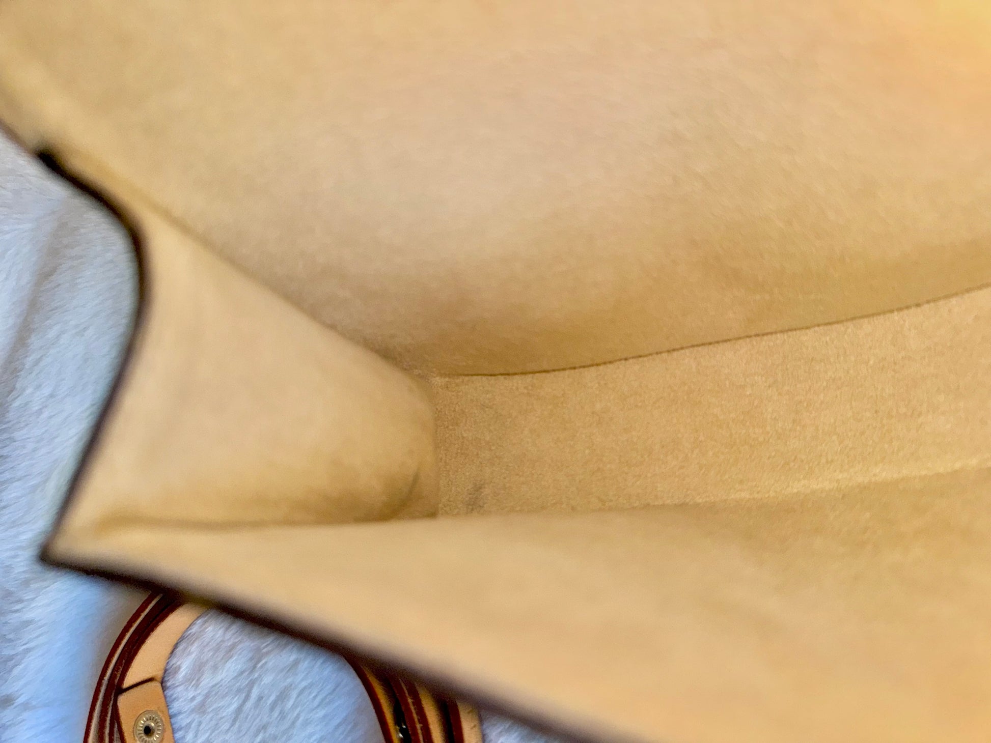 In EXCELLENT condition! Canvas has no scuffs or marks nor cracks. Vachetta trim on bag has patina that matches the vachetta belt with marks as shown. Inside is clean with minimal marks as shown. Strong magnetic closure. No offensive odors, comes from pet and smoke free home.