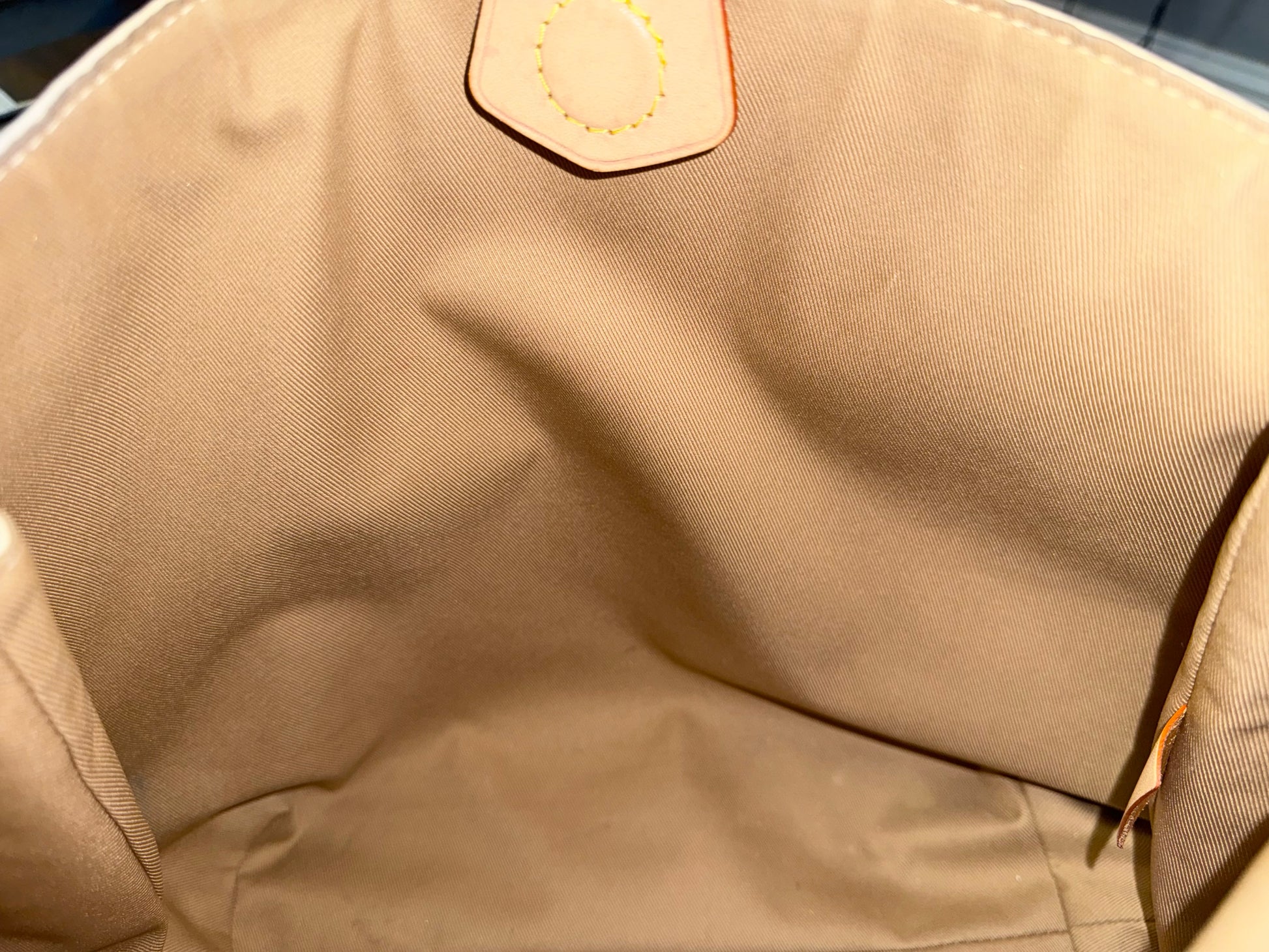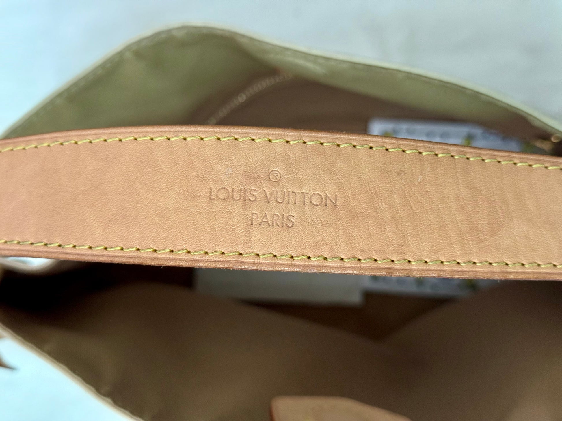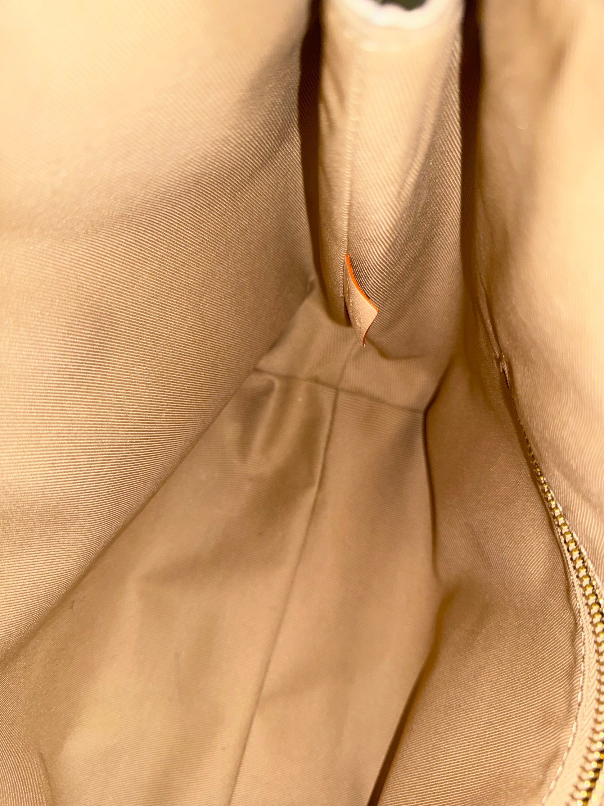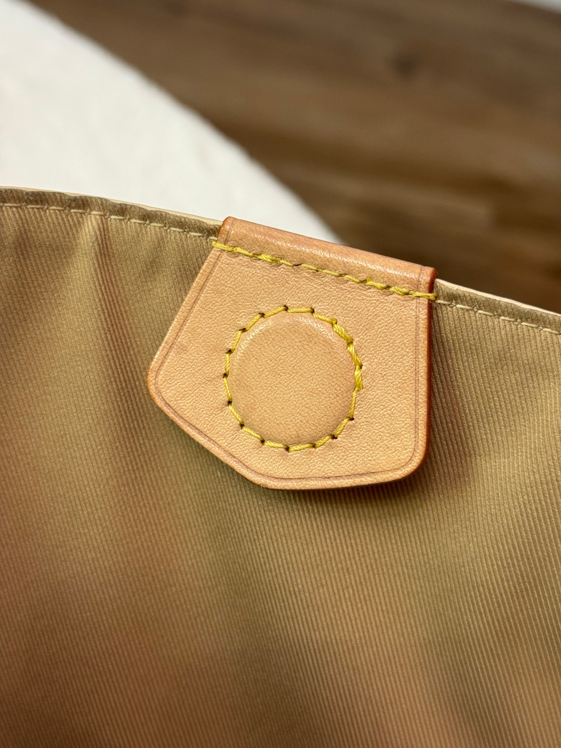 Still in VERY GOOD CONDITION! Canvas is in great shape with no cracks. Minor scuffs on bottom corners. Vachetta has light patina with marks. Luggage tag has darker patina with marks. Interior is clean with minor marks. One side of strap has missing strap keeper, does not affect function. No offensive odors, comes from pet and smoke free home.