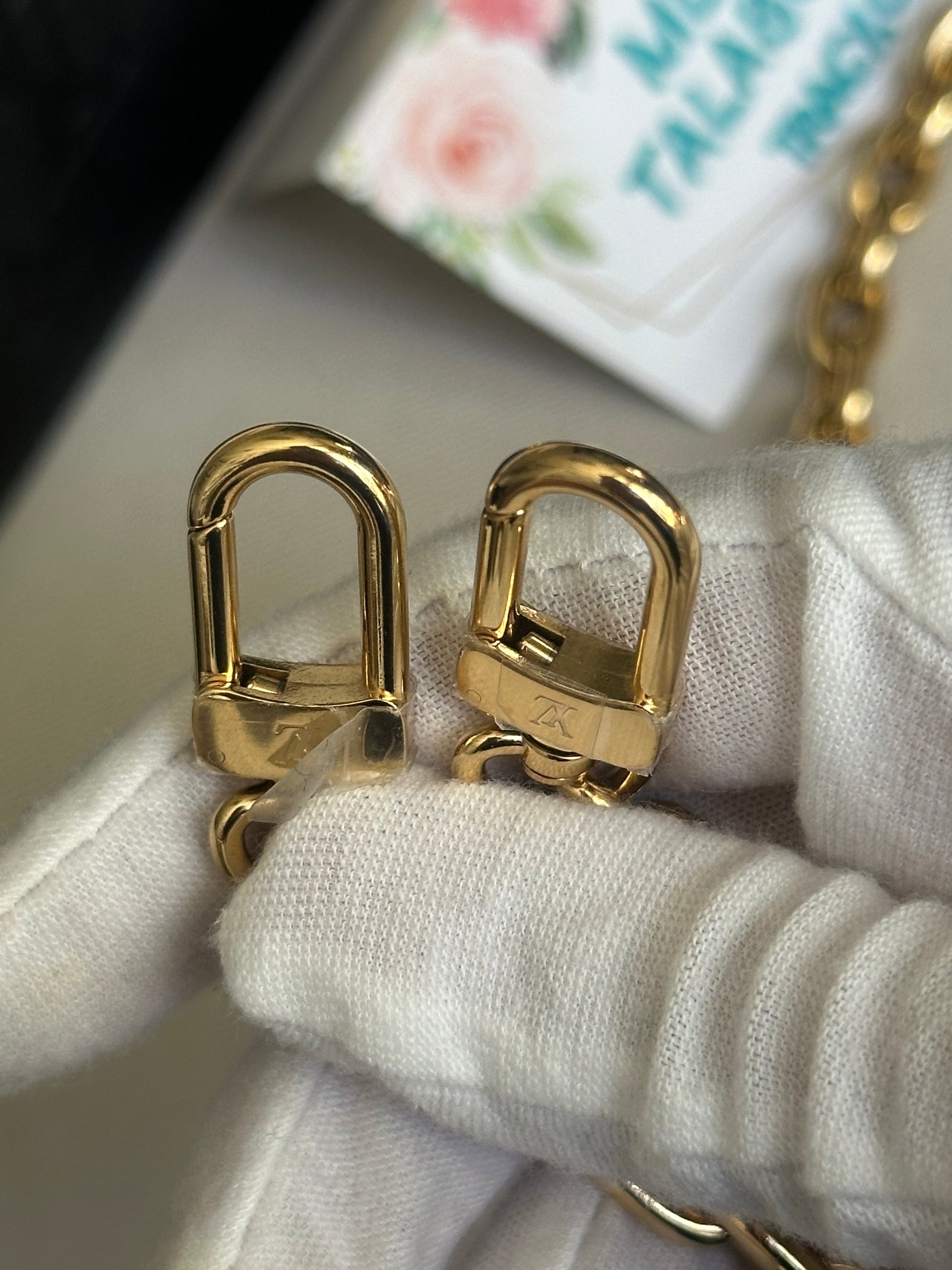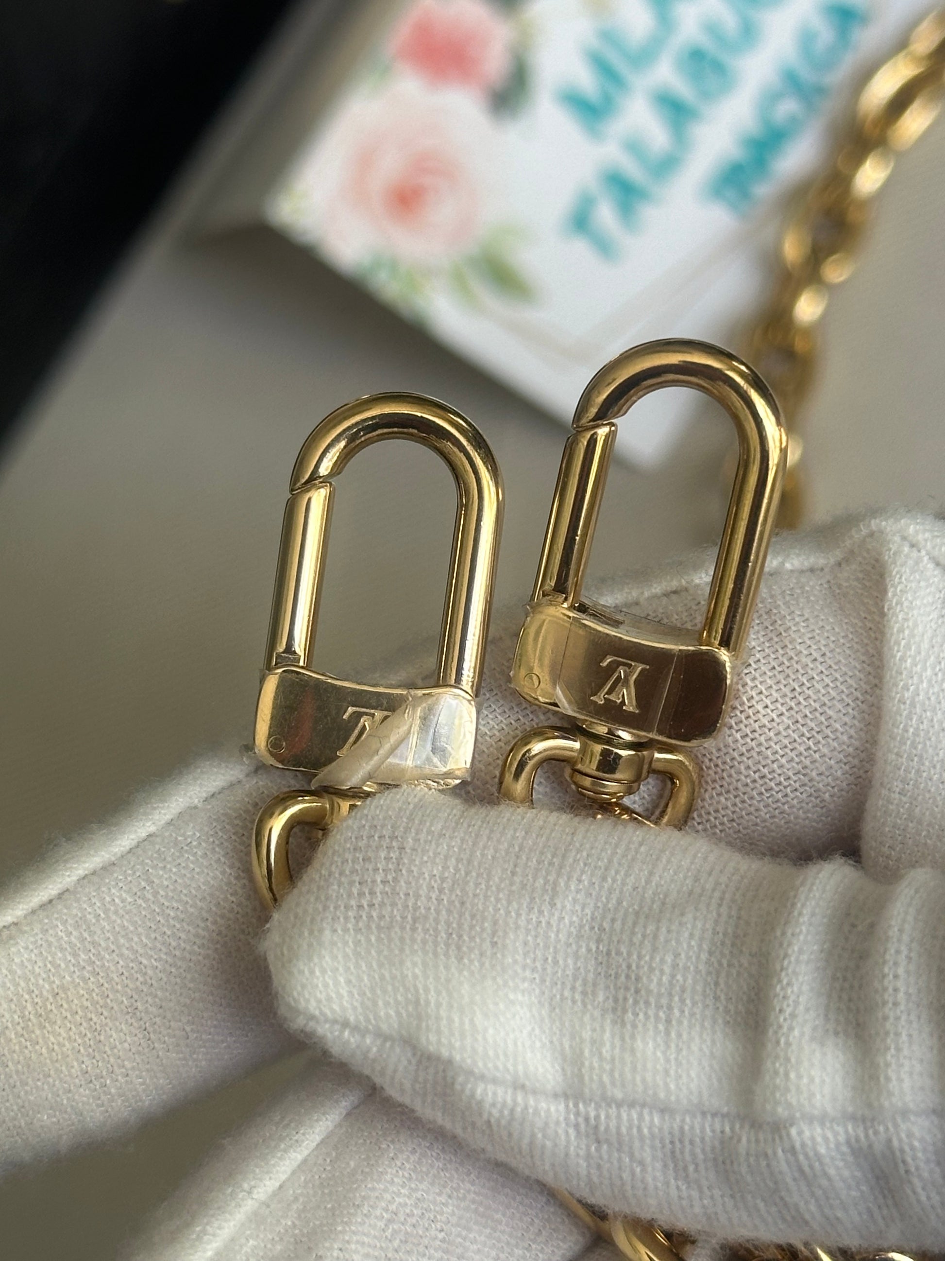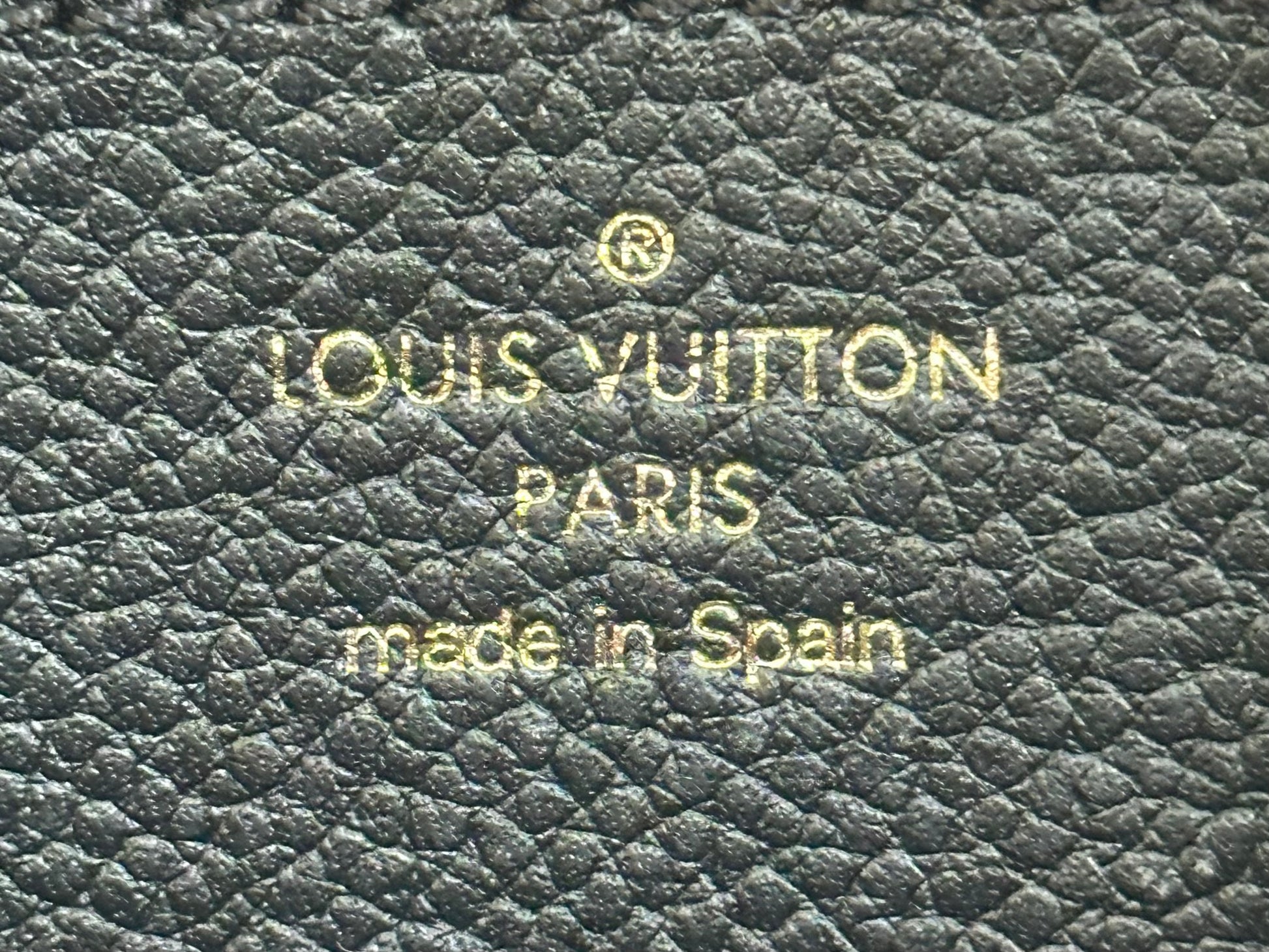 Gorgeous NEW condition! No flaws to mention. Mono empreinte leather has deep embossing and gorgeous. Hardware is golden and shiny that still has the plastic on except for the front plate which shows inevitable hairline scratches at the back, zipper runs smooth. Interior is clean. No offensive smell, comes from pet and smoke free home.