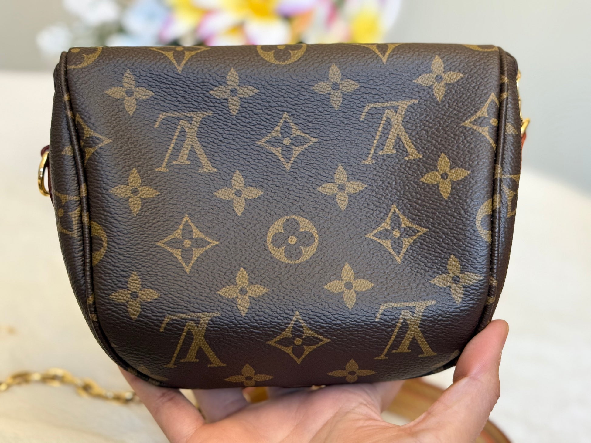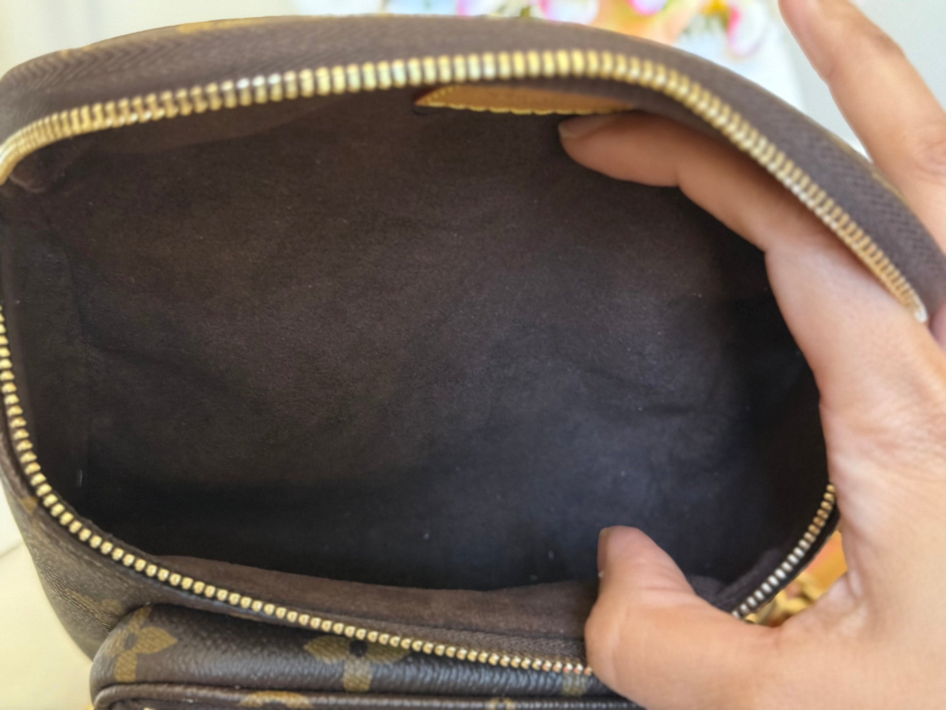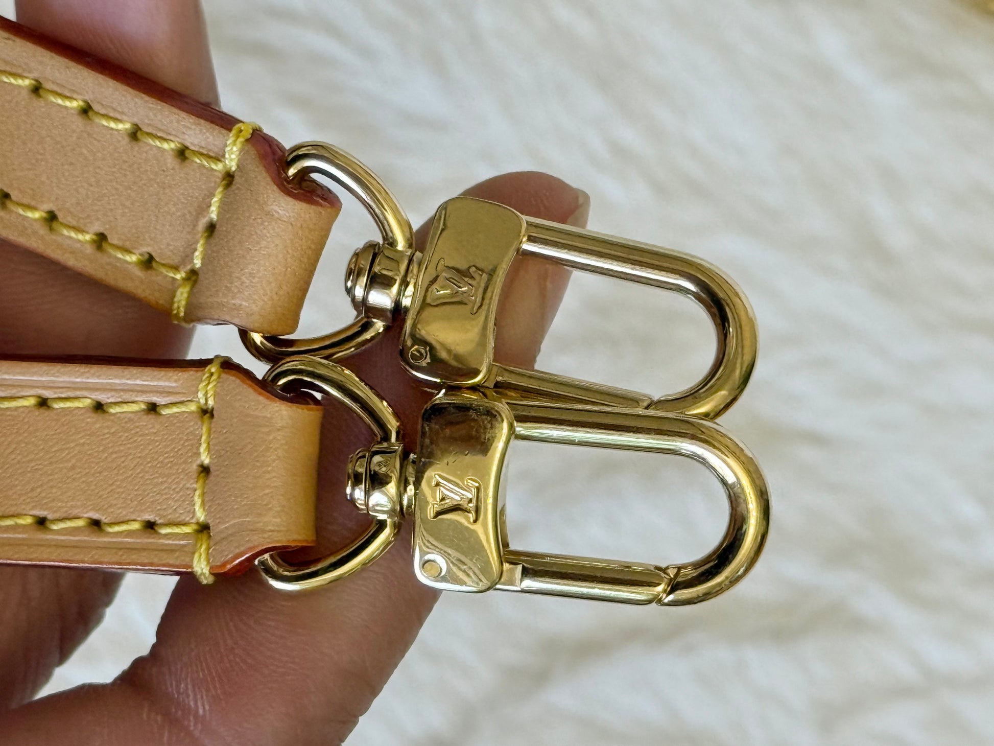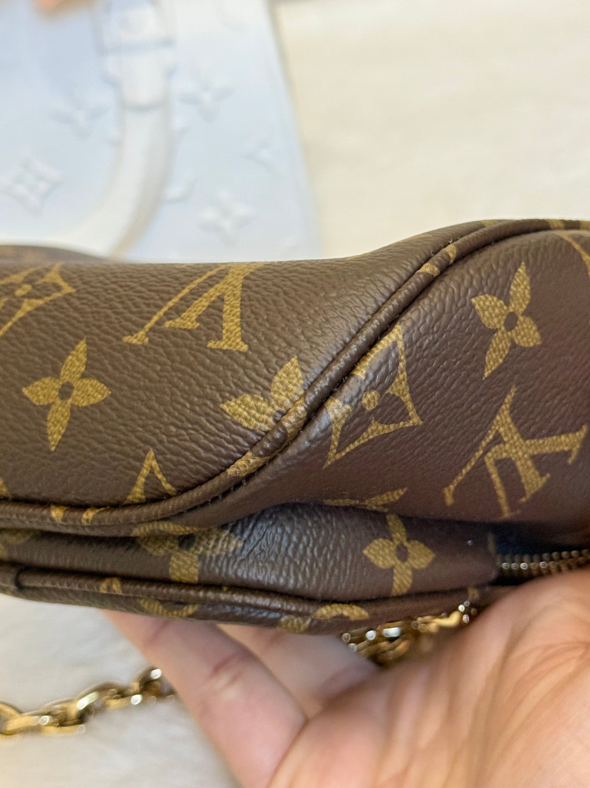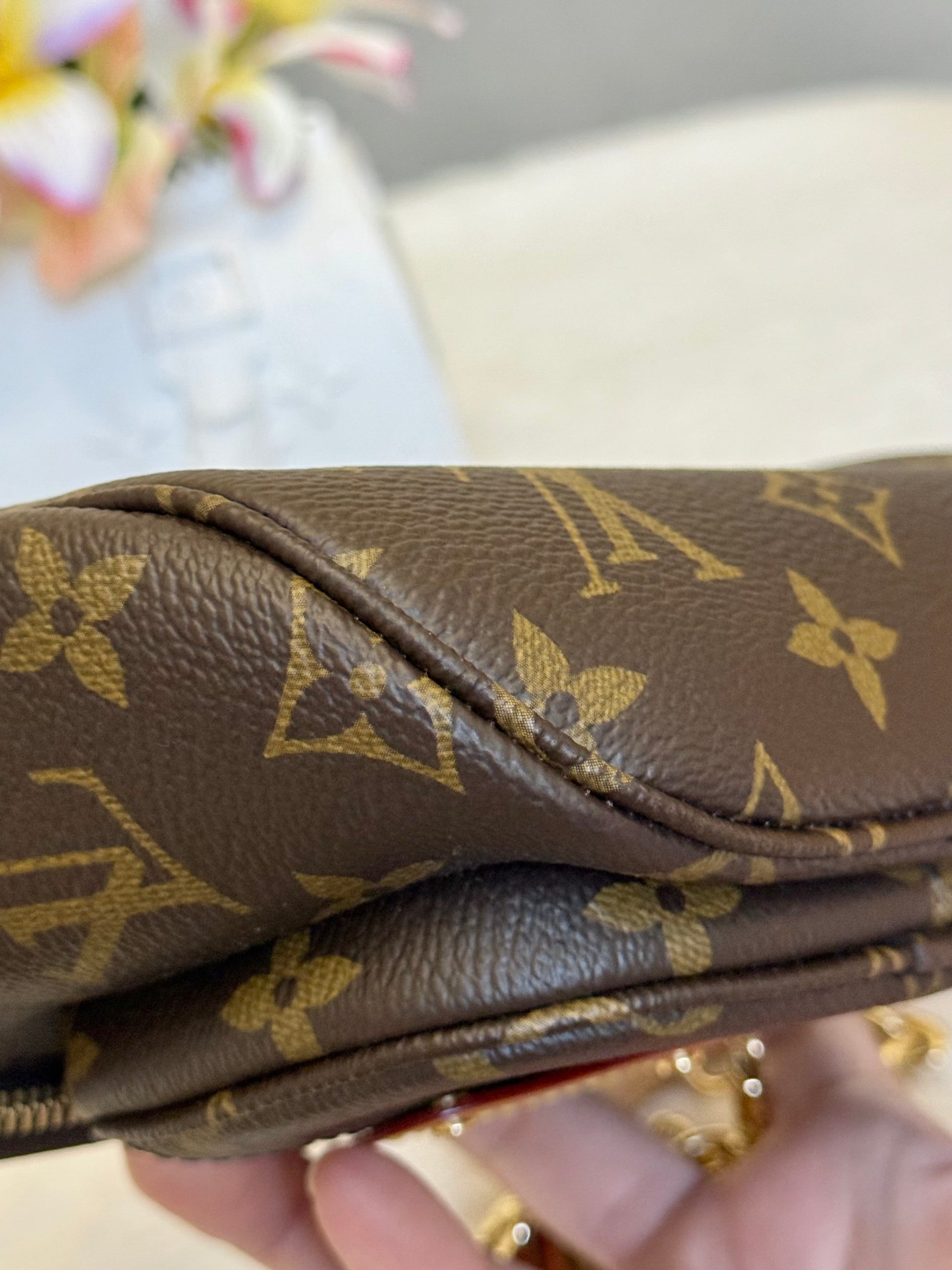 This bag is in EXCELLENT condition! Minimal signs of use can be seen. Monogram canvas is great and has no cracks. Interior is spotless. Hardware is like new, golden and no heavy scratches. Vachetta is treated and shows no marks. Stamp on heat stamp means this bag was purchased by an employee. No offensive smell, comes from non-smoking and no pet home.