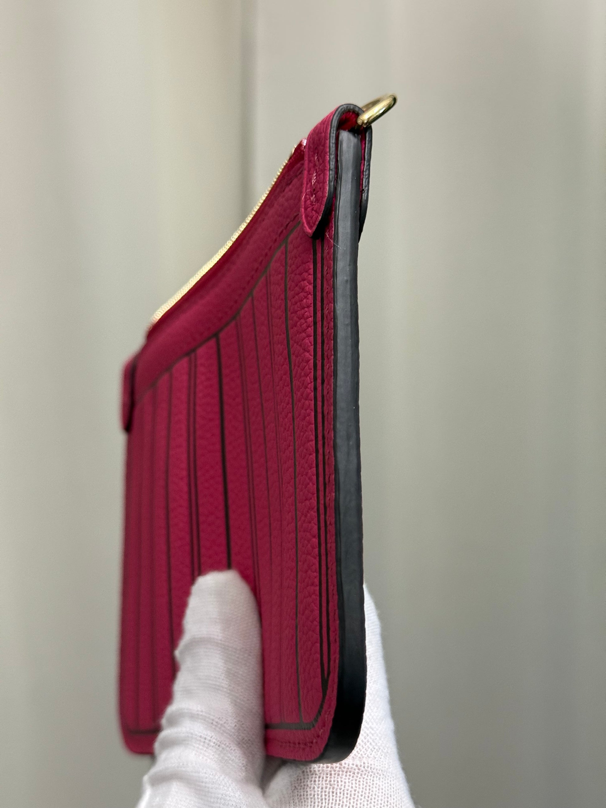 comes with dustbag, strap, pouch, wristlet strap and authentication