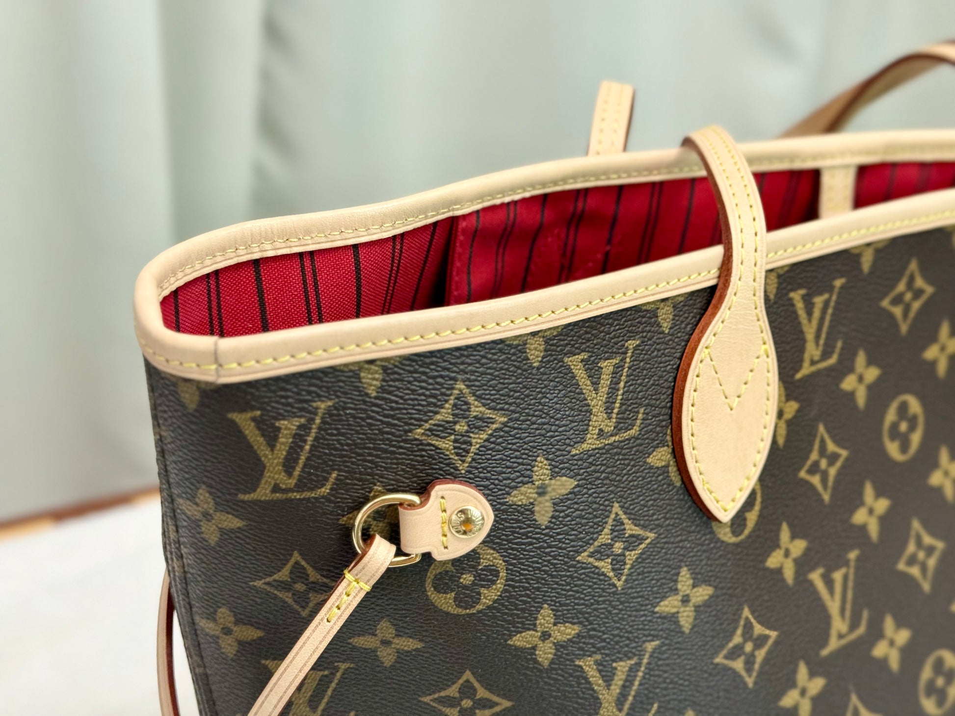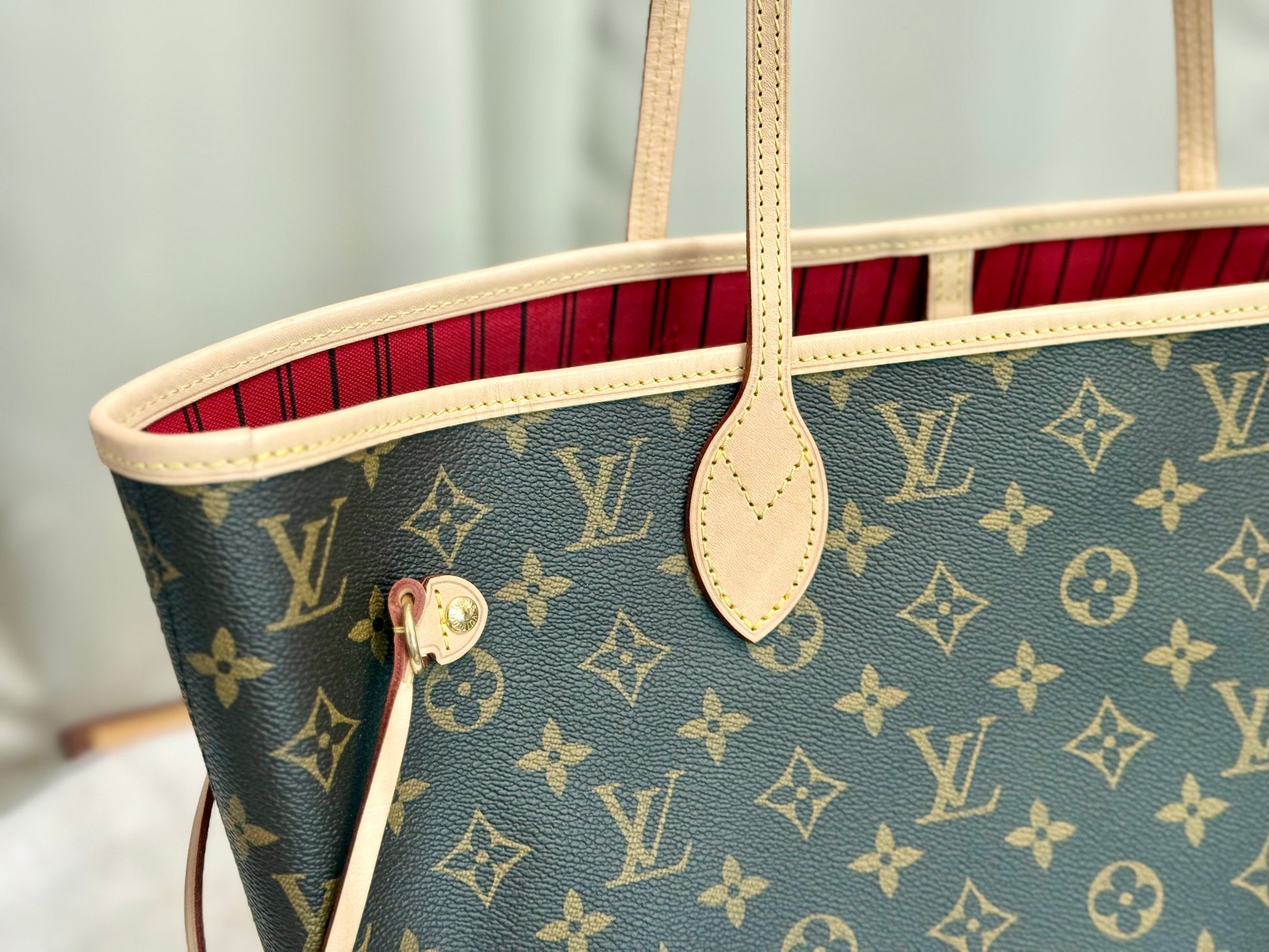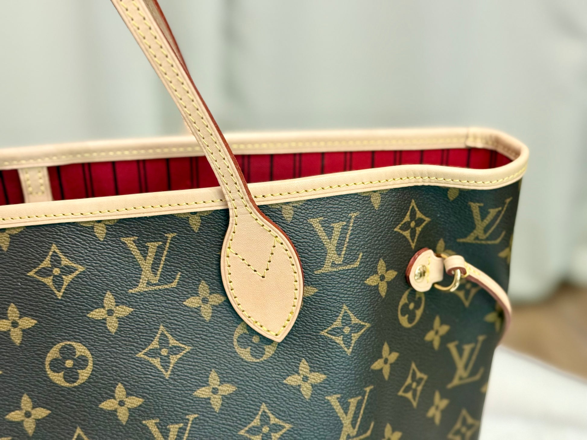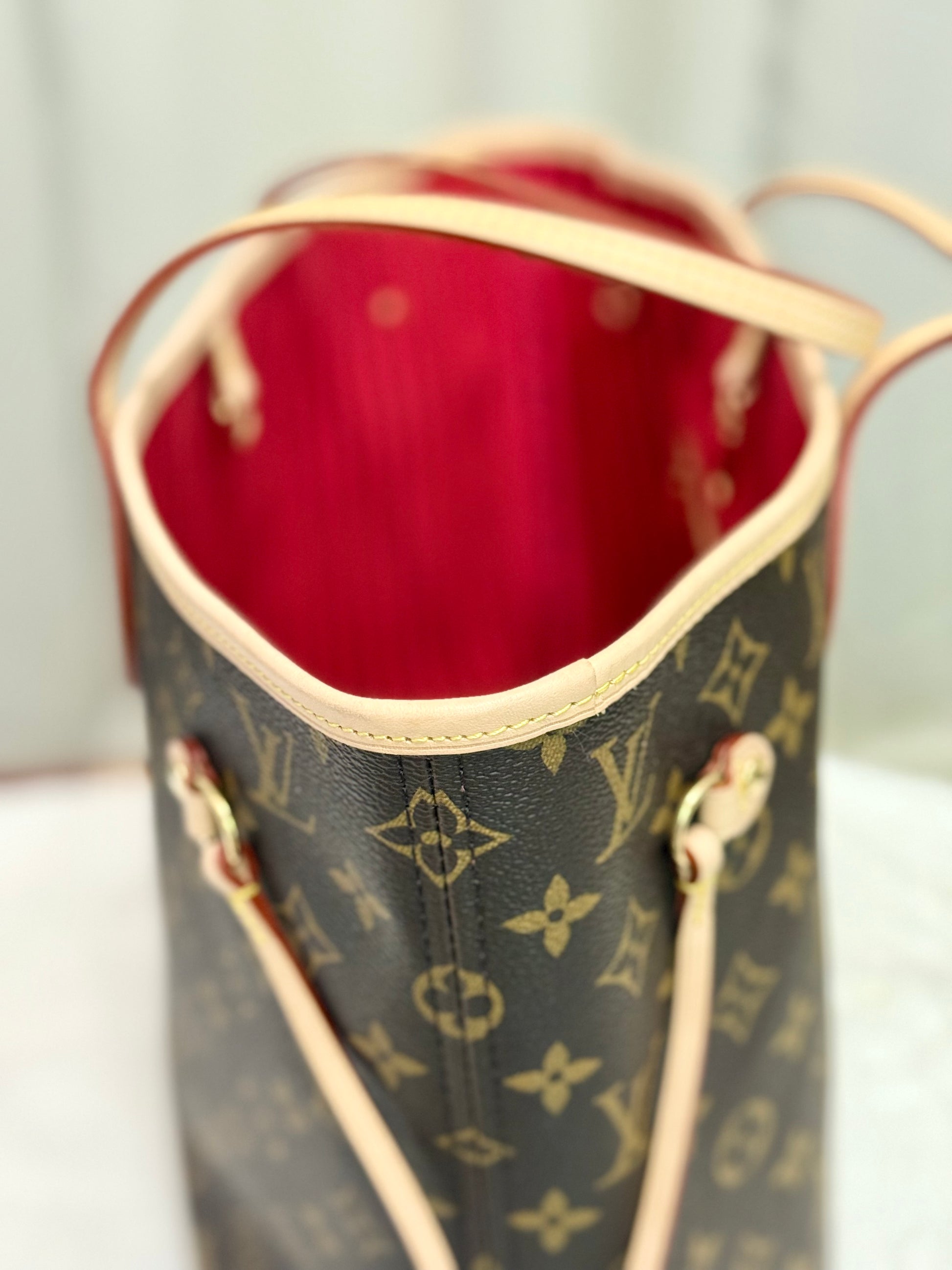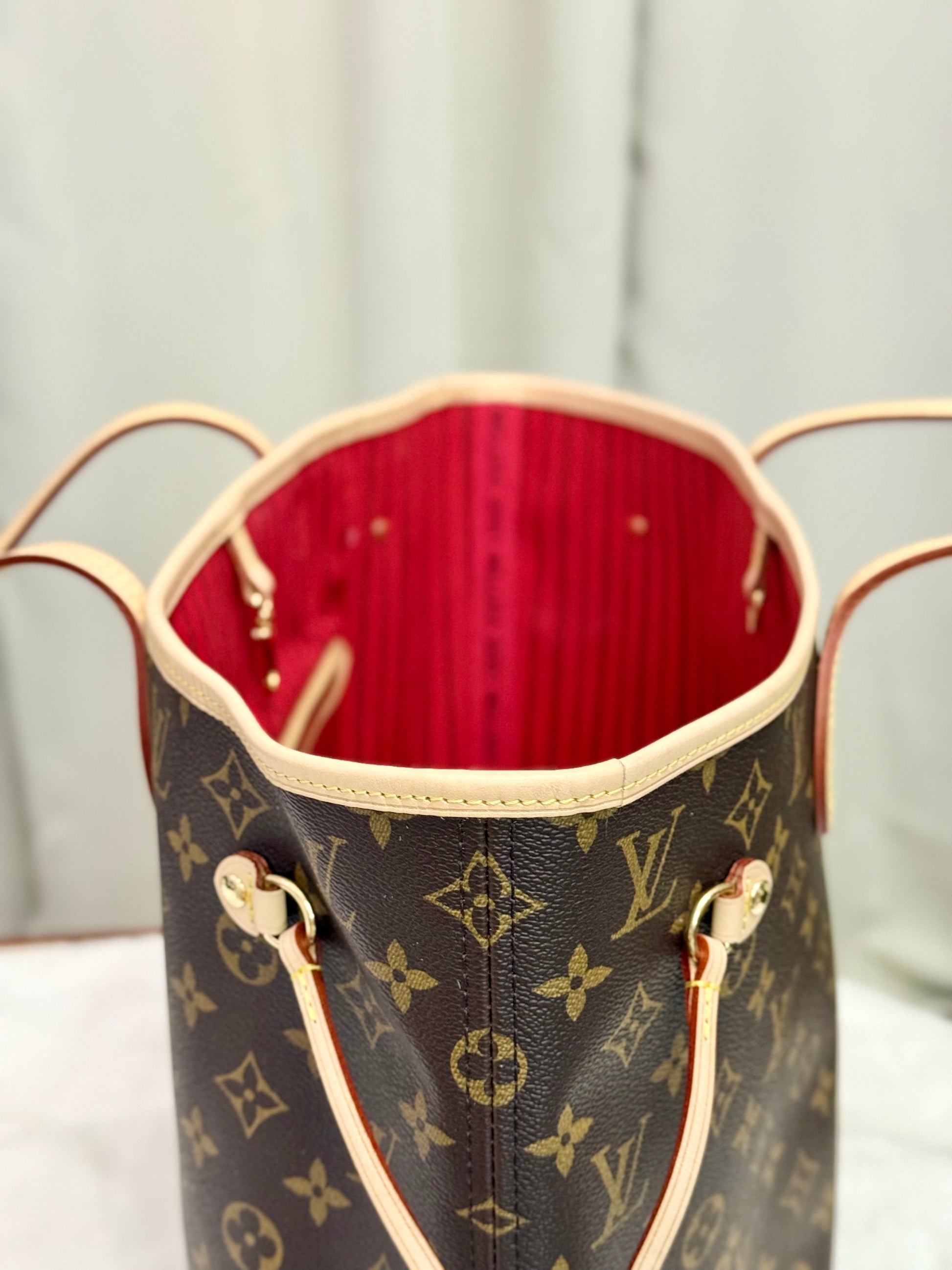 Louis Vuitton Neverfull MM Mono with Cerise Interior