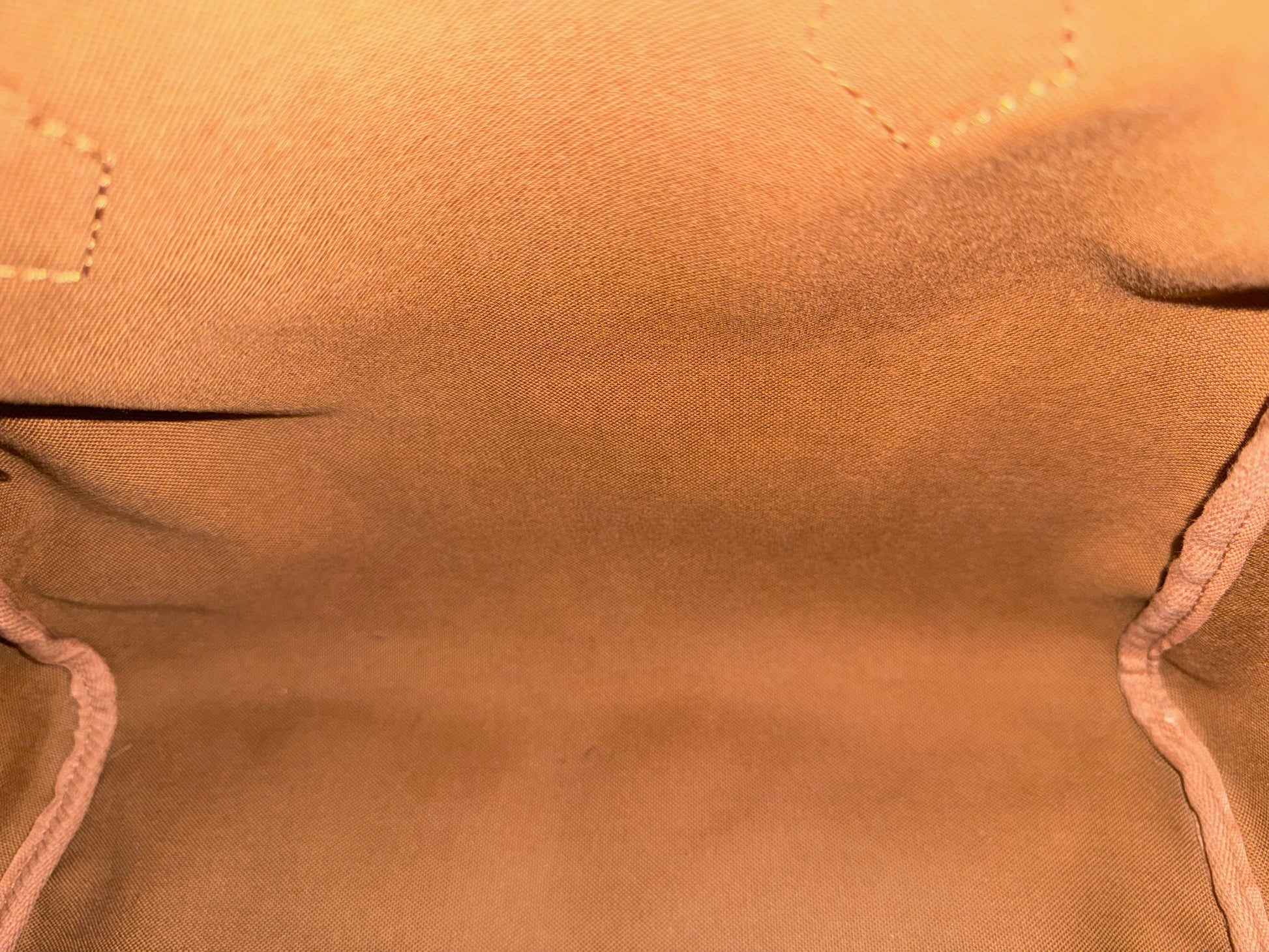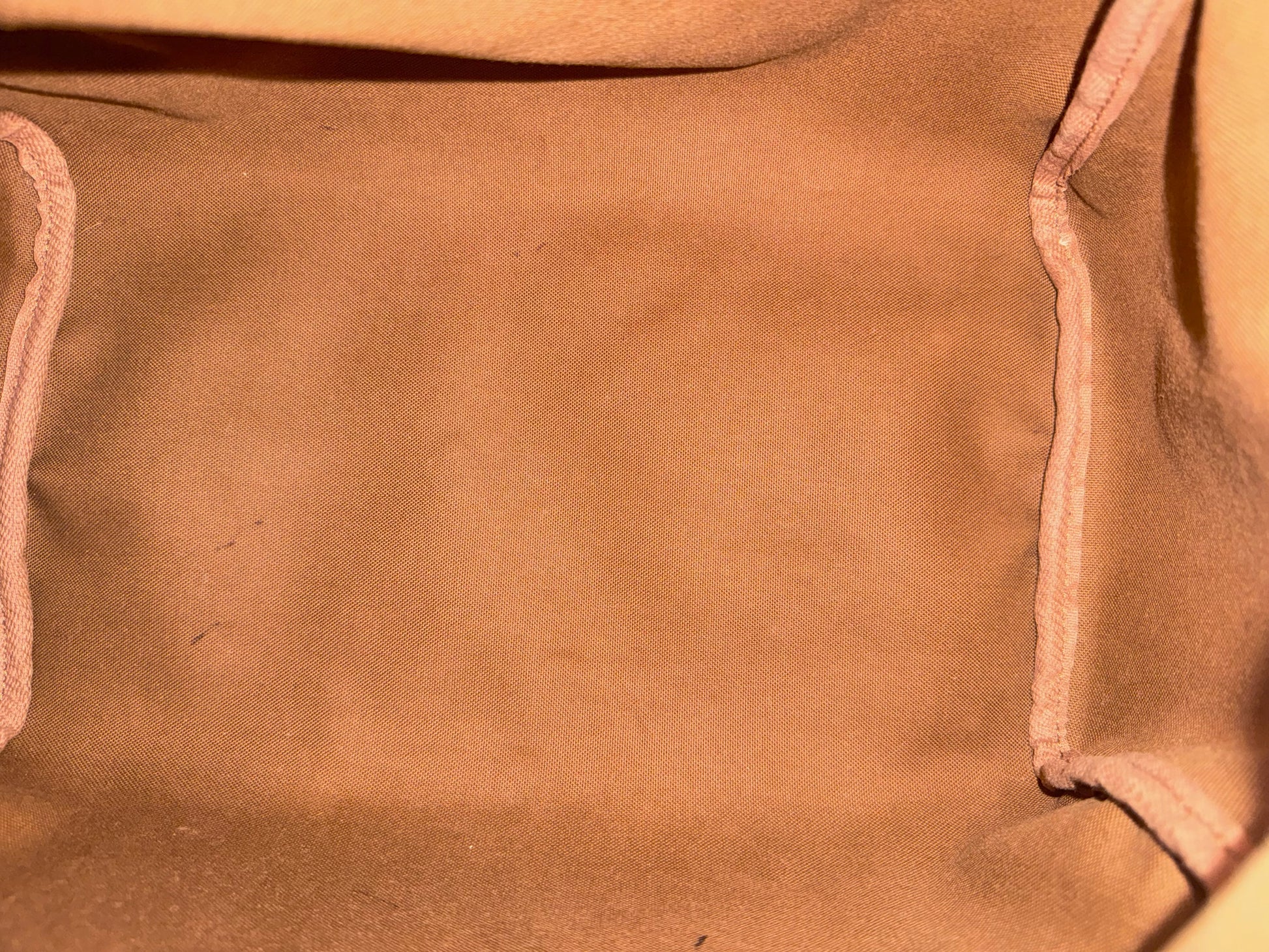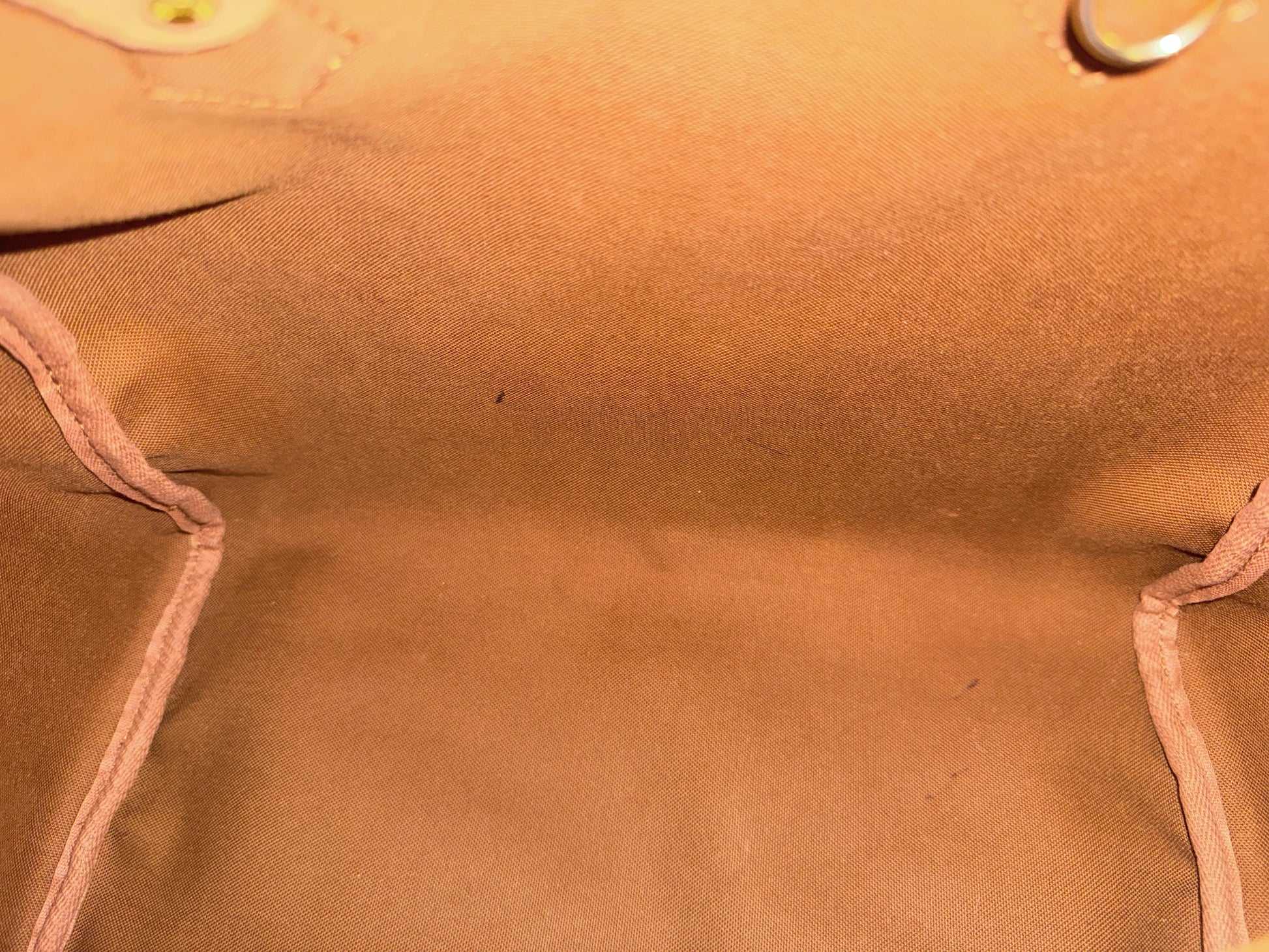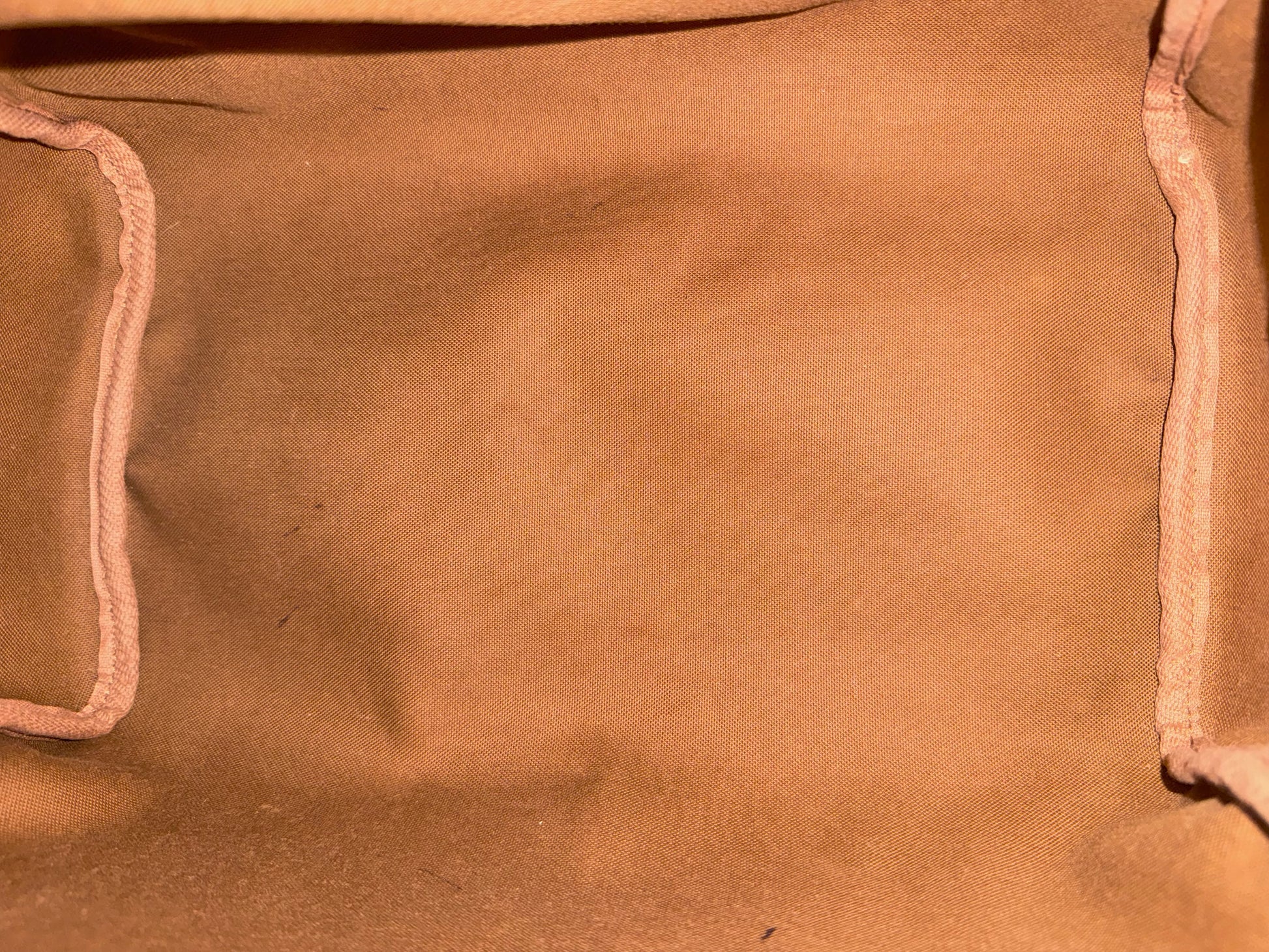 In EXCELLENT CONDITION! Canvas is bright and clean and no cracks. Hardware is still golden, zipper runs smooth. Vachetta has patina with marks, one handle is darker than the other one. Interior has minor marks. No offensive odors, comes from smoke and pet free home. It will shipped folded.