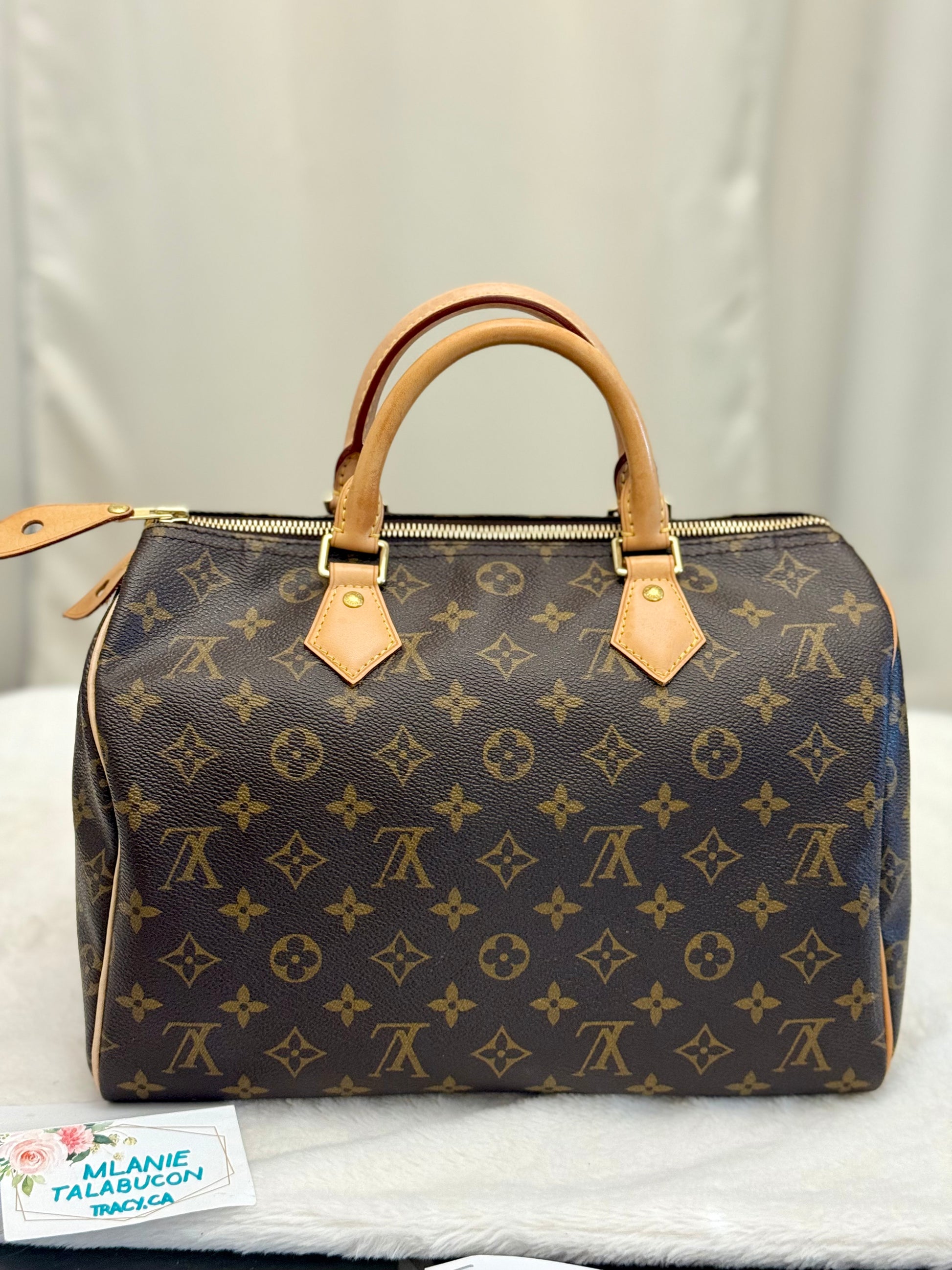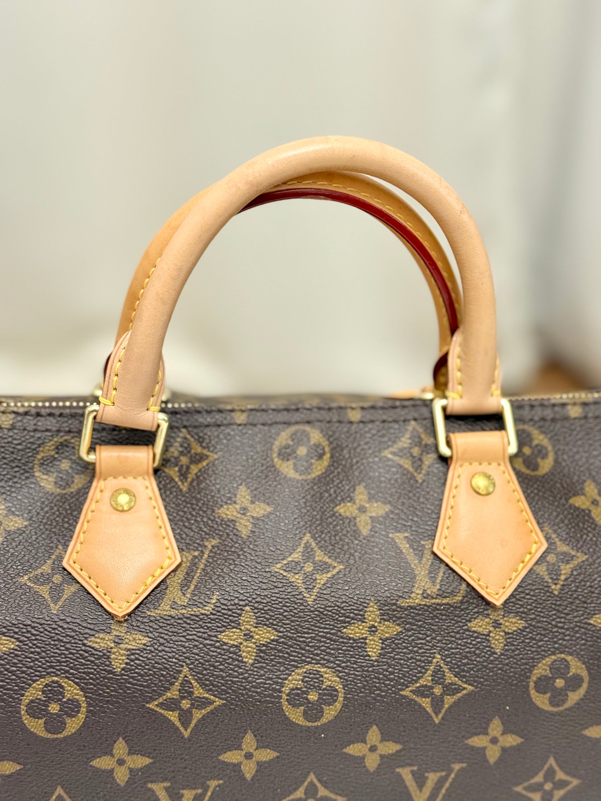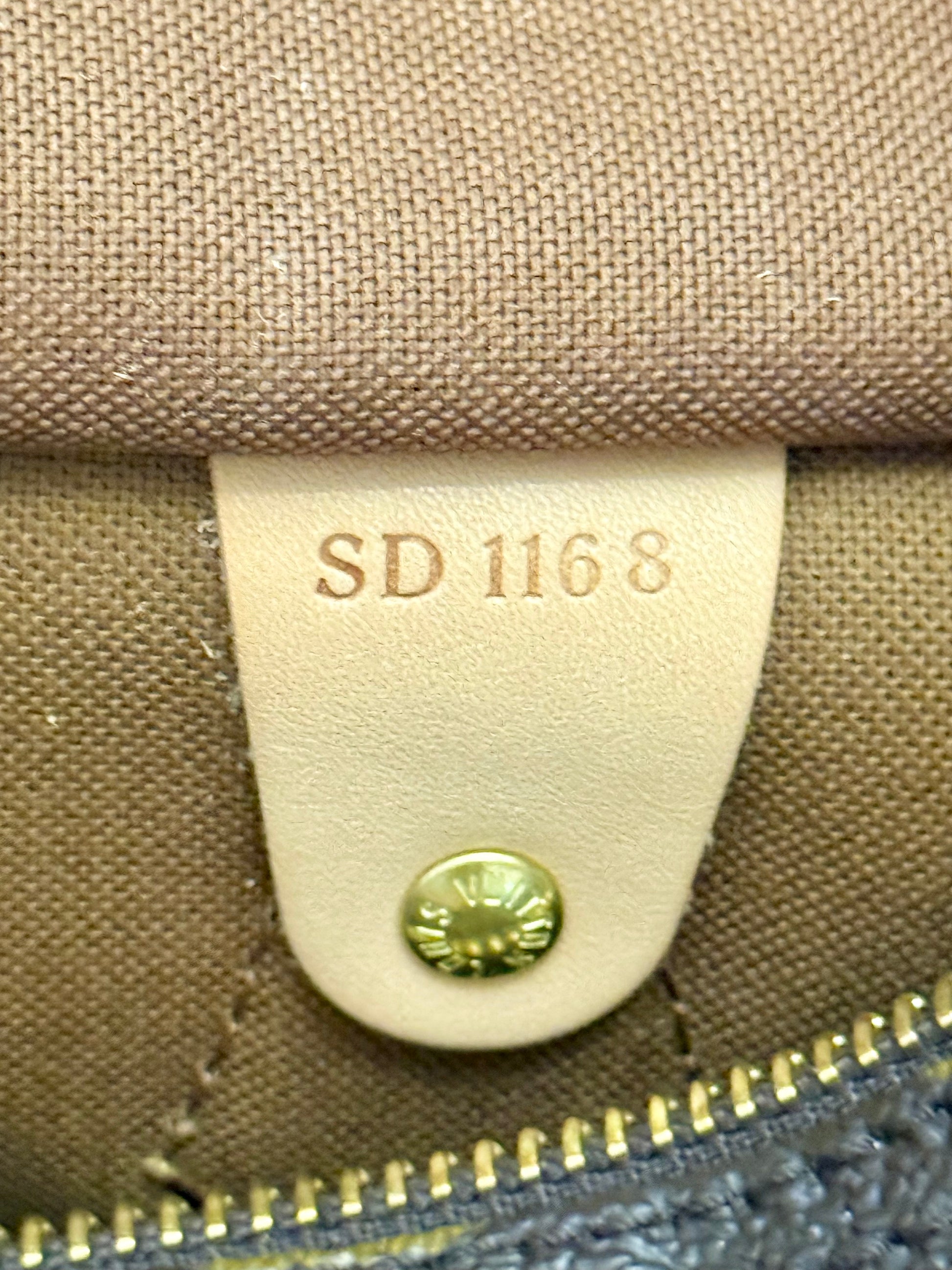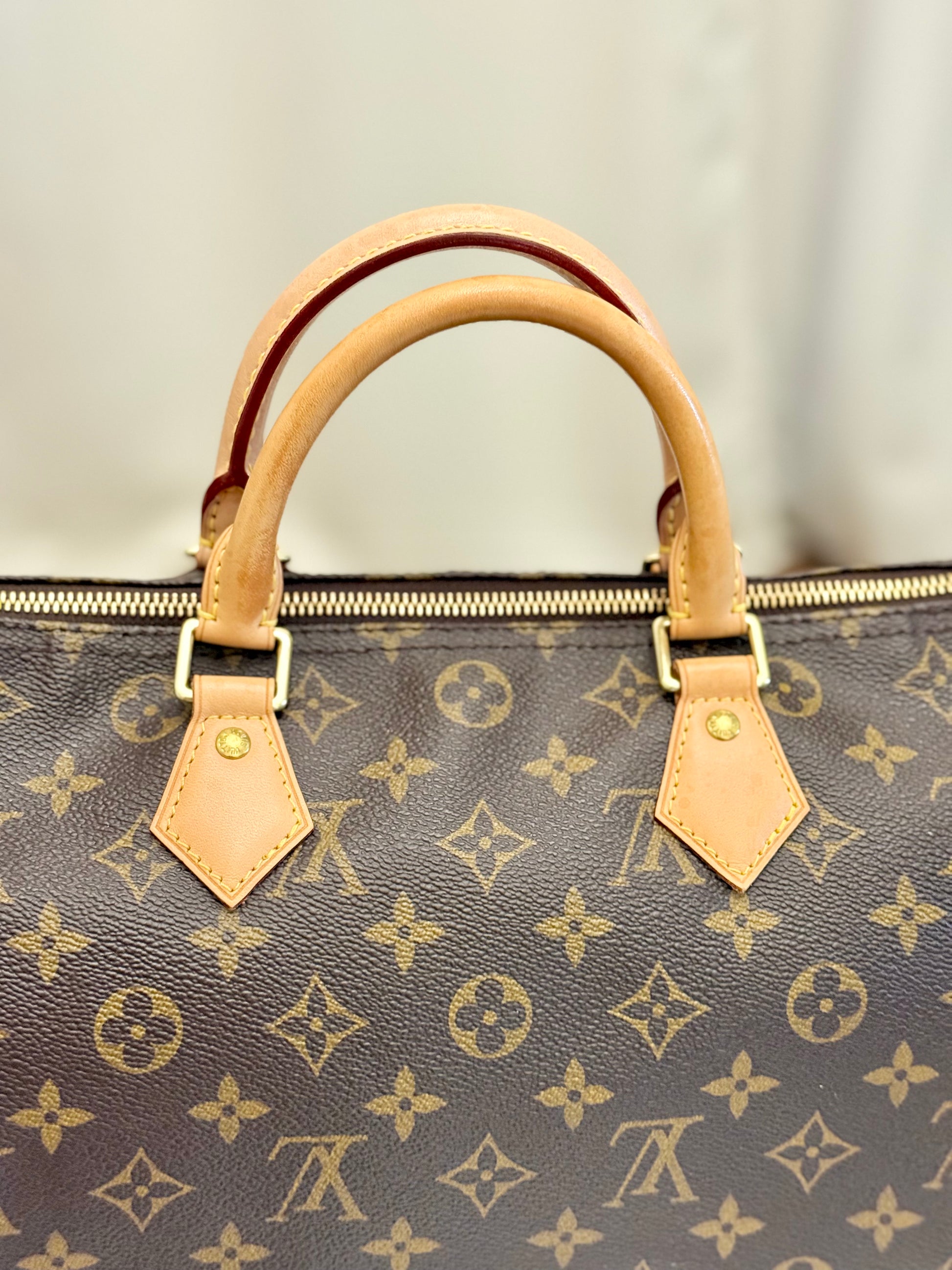 In EXCELLENT CONDITION! Clean inside and out! Canvas is bright and clean and no cracks. Hardware is golden, zipper runs smooth. Vachetta has patina, one handle has more than the other. Interior is clean. No offensive odors, comes from smoke and pet free home. It will shipped folded.