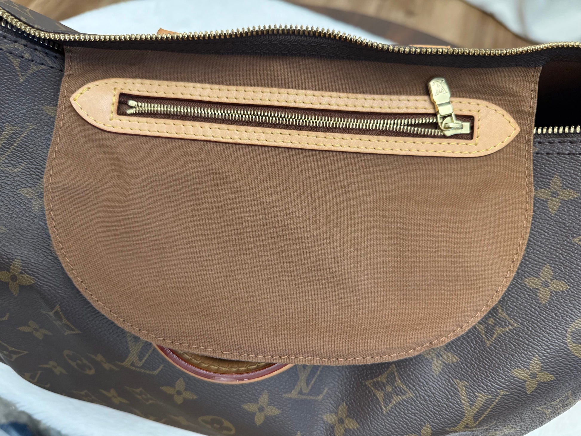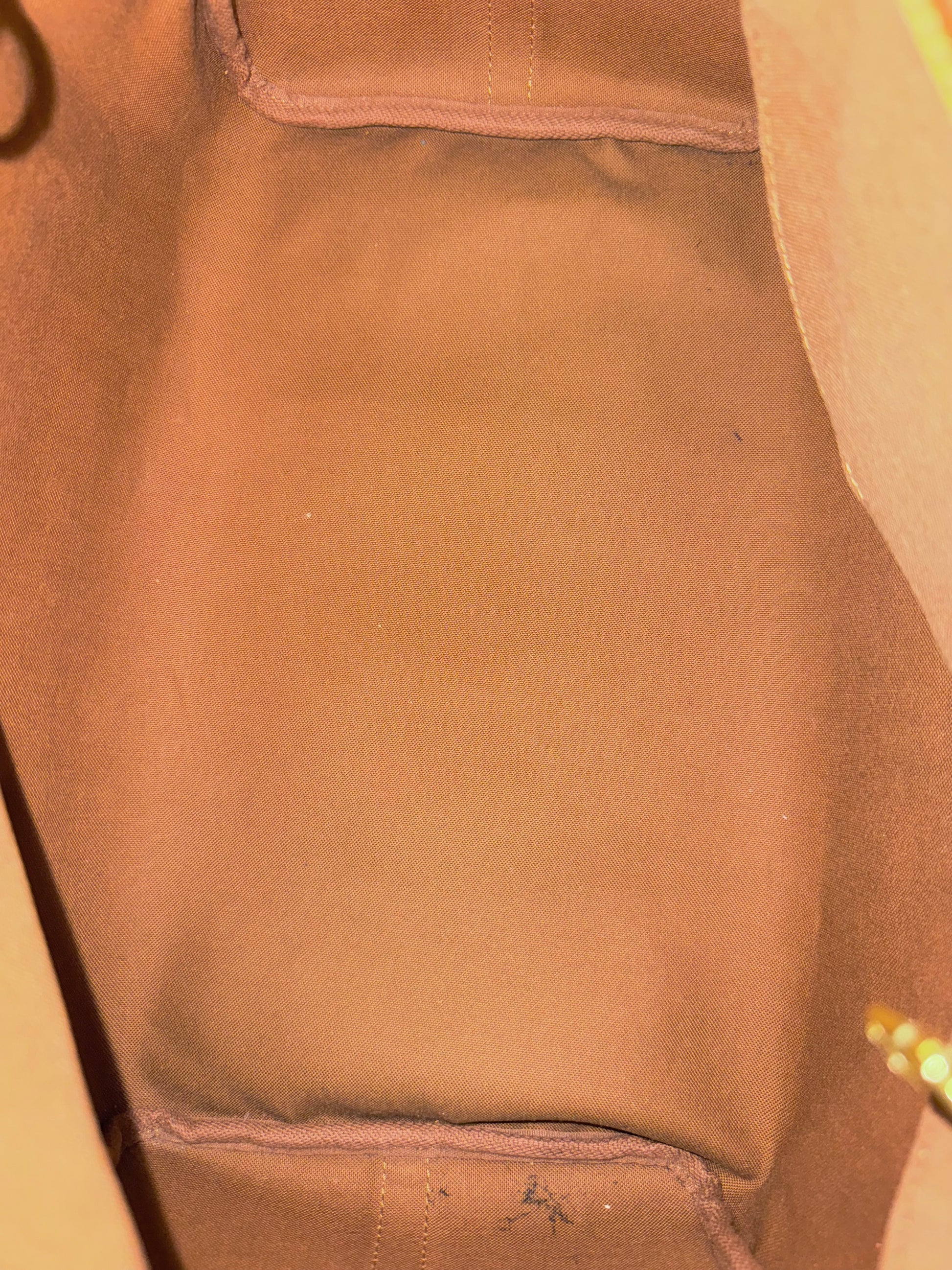 The bag is in EXCELLENT preowned condition! Canvas is bright and clean. Vachetta has light patina with marks. Uneven patina is seen on handle straps and bandouliere strap. Interior has small marks but can still be considered clean. Interior pocket is clean as well. Hardware is still golden. Glazing and piping are both in great condition. No offensive odors, comes from smoke and pet free home.