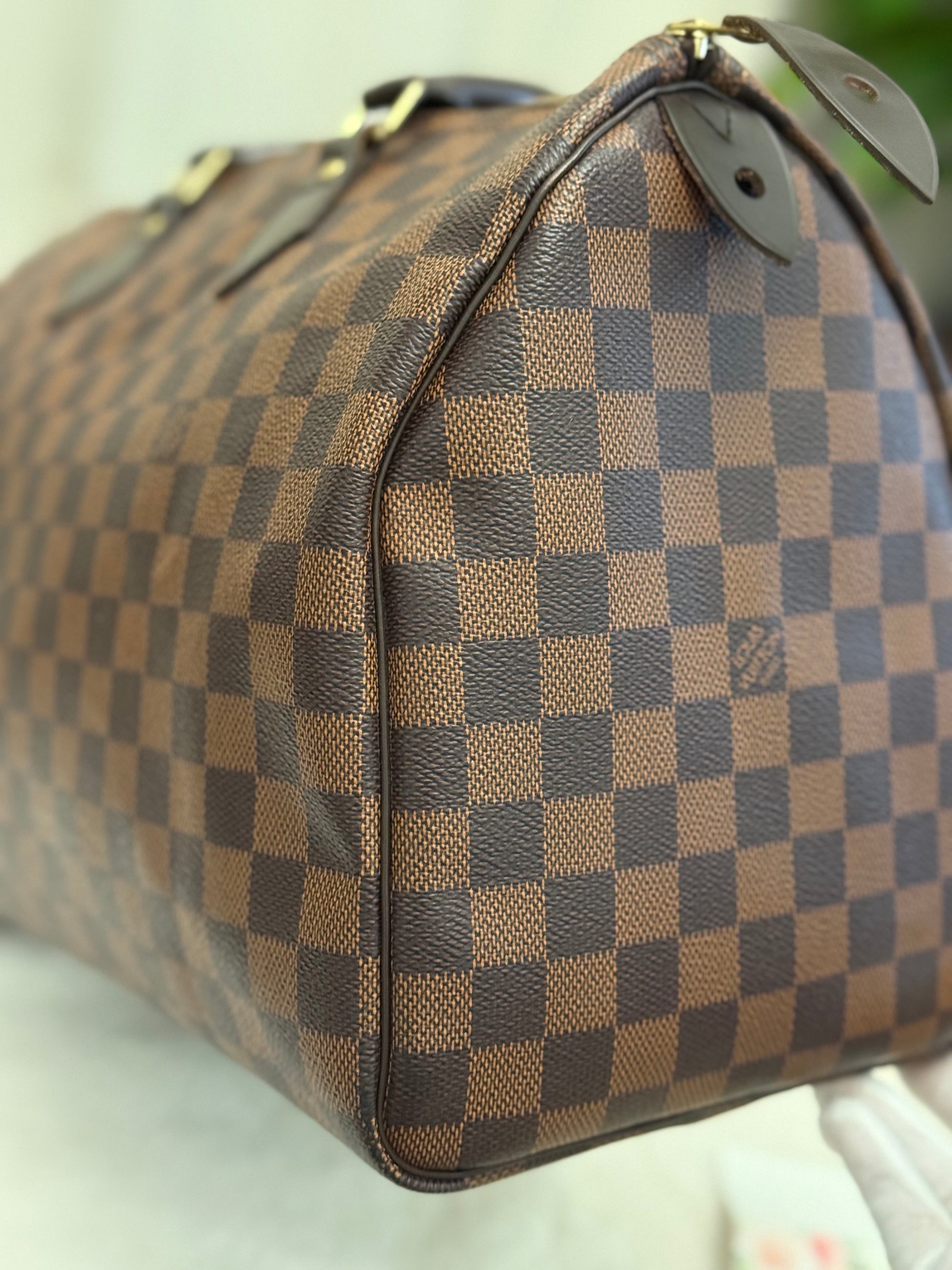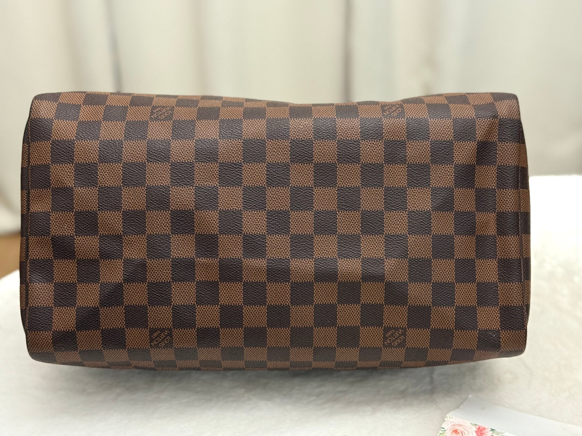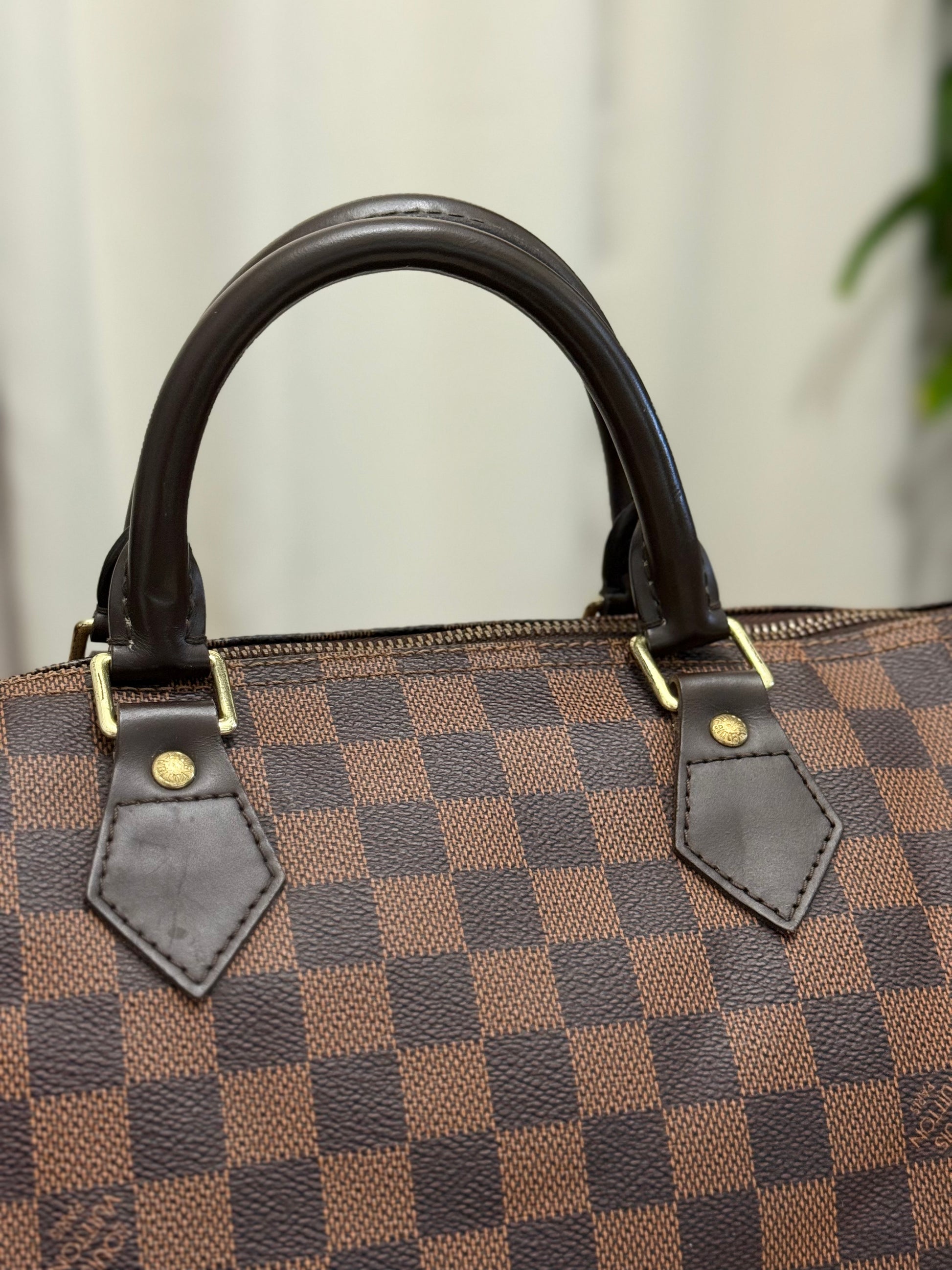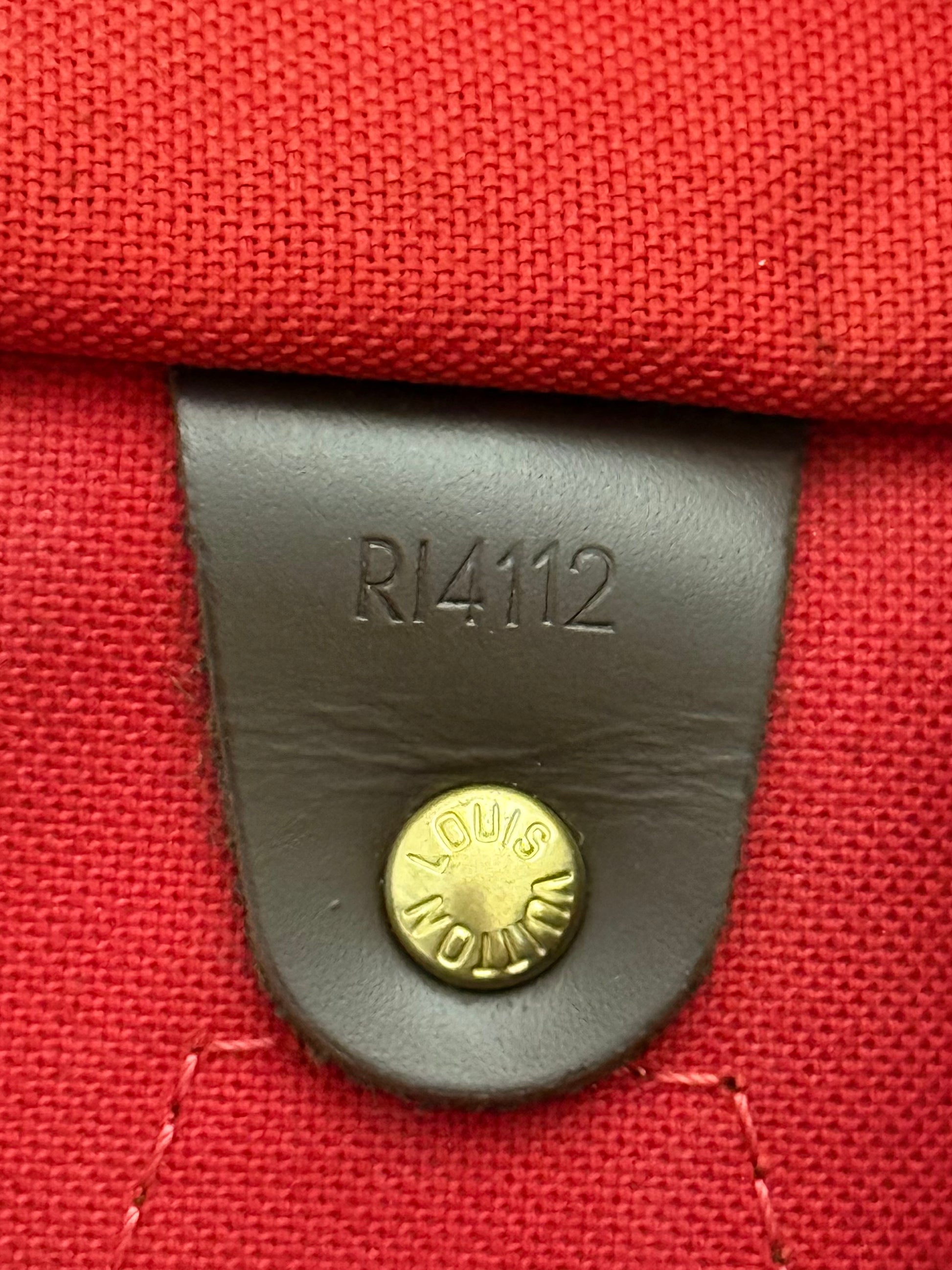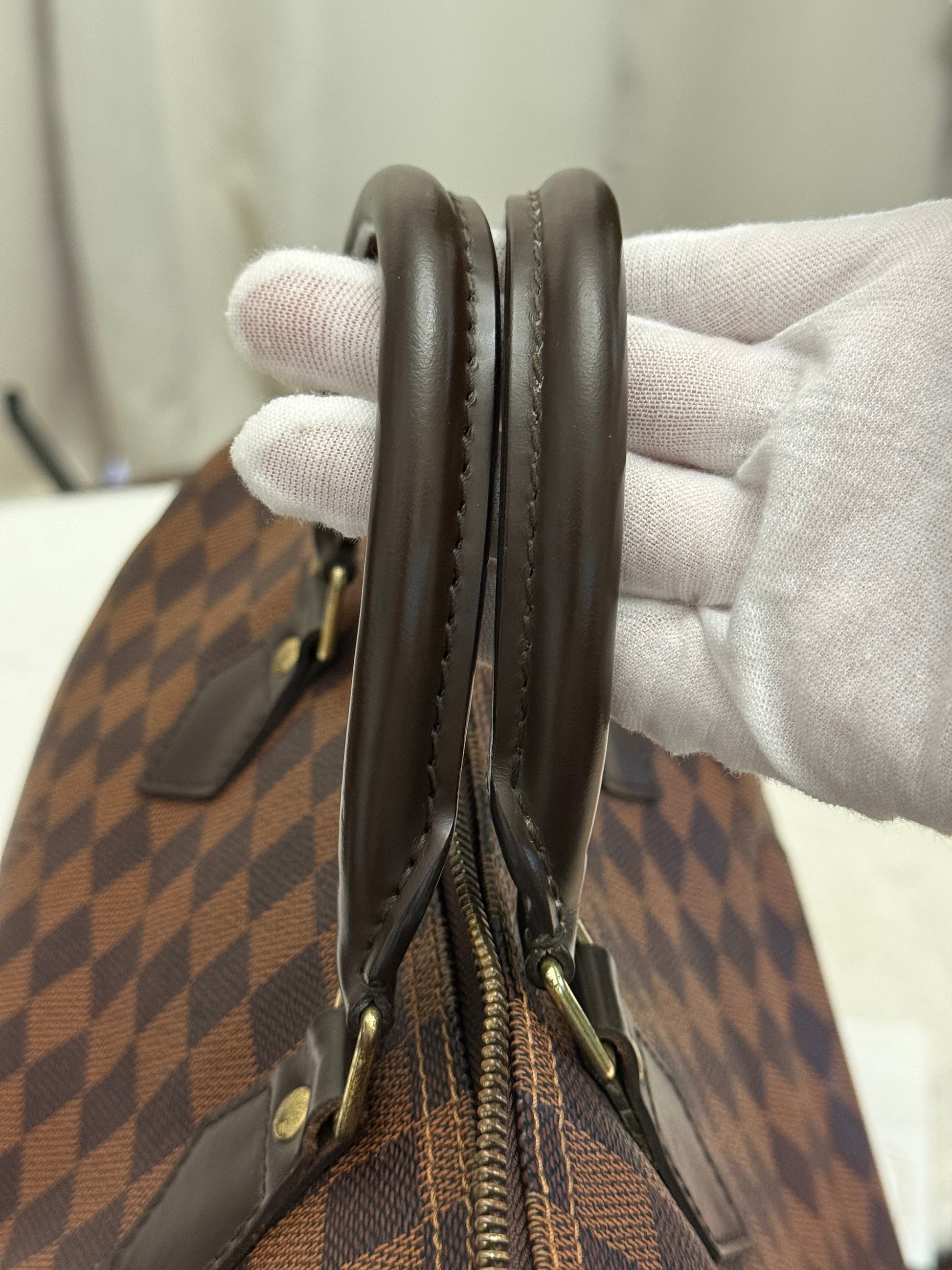 The bag is still in excellent condition! Canvas is bright and clean with no cracks. Minor rubbing in canvas on the edges. No exposed piping. Leather in the bag and strap are in great condition, still shiny. Interior has marks, including organizer. No stickiness in the interior pocket. Hardware has tarnish. No offensive odors, comes from pet and smoke free home.