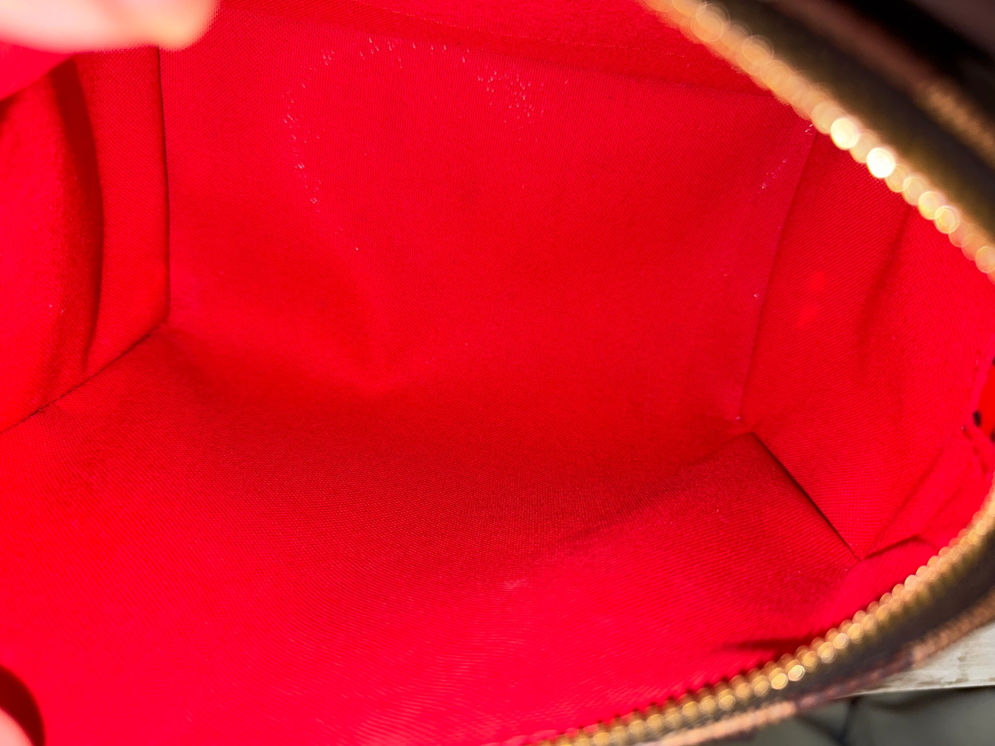The bag is in LIKE NEW/MINT condition! Canvas has no flaws!. Hardware is golden and shiny. Interior is clean. Strap has no signs of use hardware has plastic on. No offensive odor: comes from pet and smoke free home.