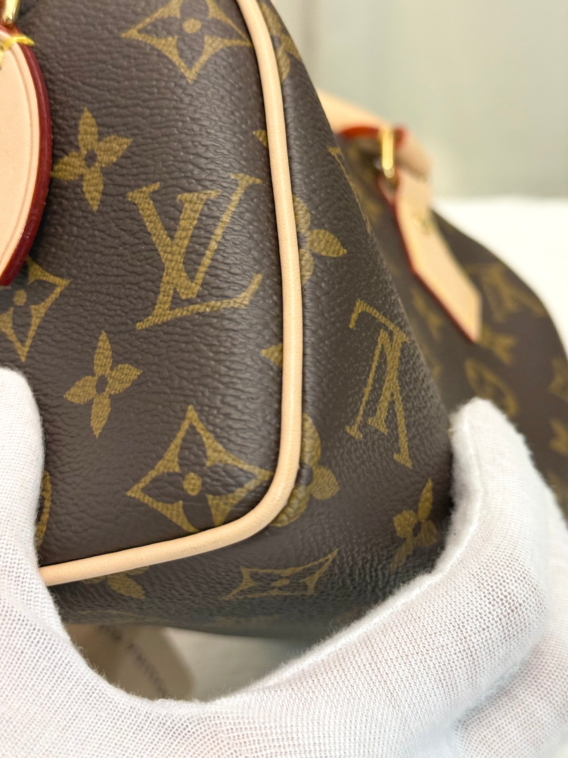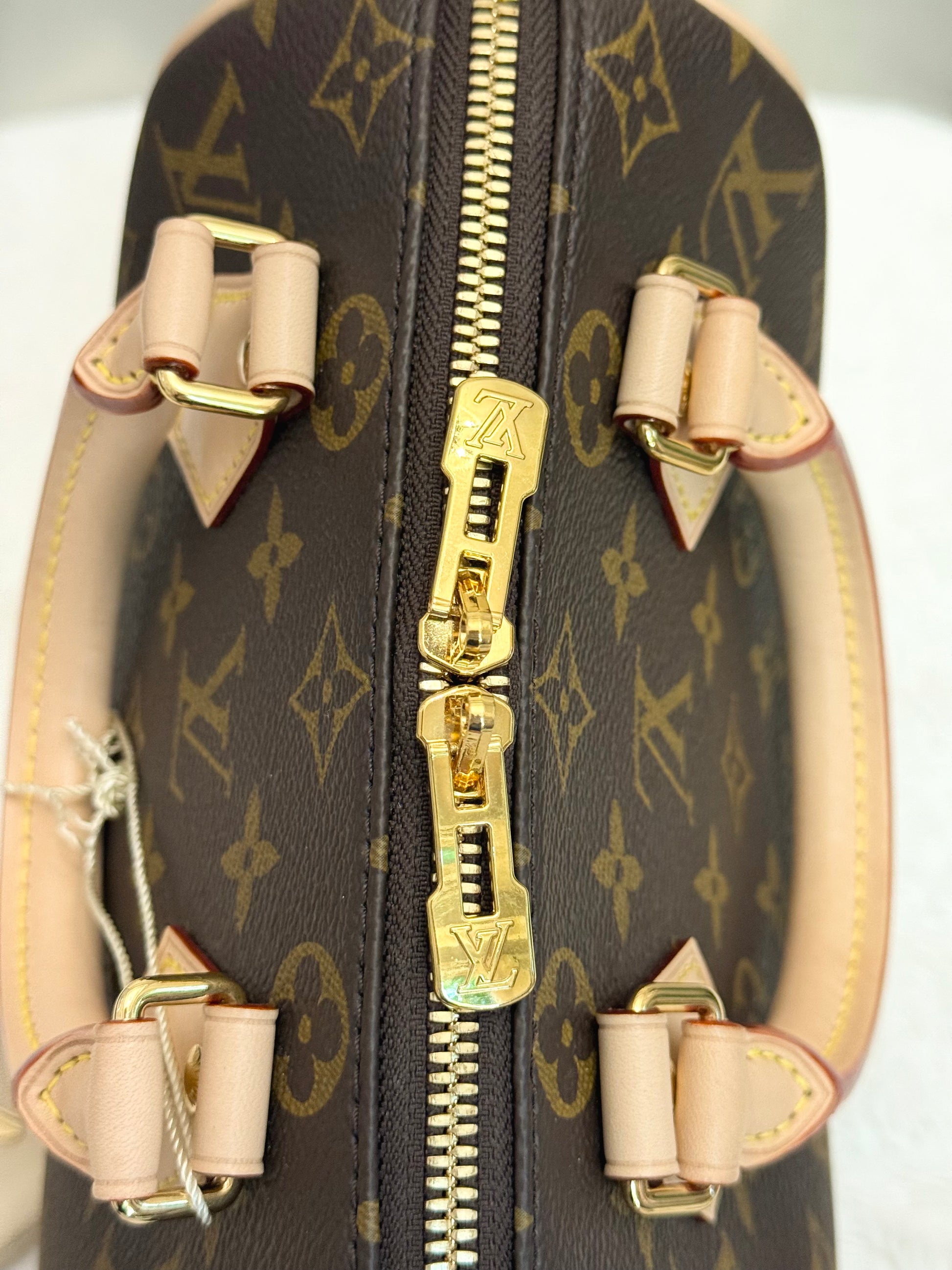 The bag is in LIKE NEW/MINT condition! Canvas has no flaws! Vachetta has NO patina, with FAINT marks that i want to disclose, see pics. Hardware is golden and shiny. Interior is clean. Strap has no signs of use hardware has plastic on. No offensive odor: comes from pet and smoke free home.