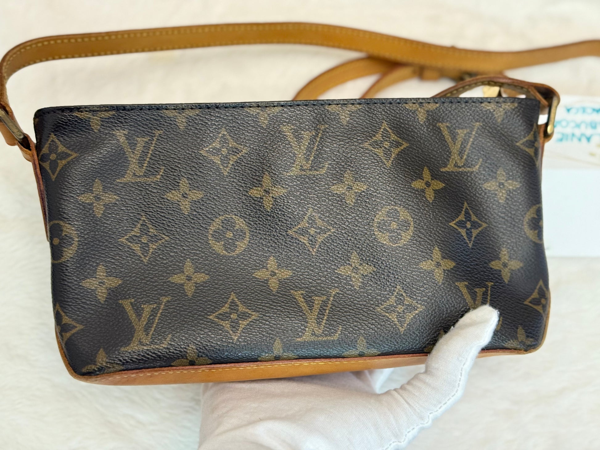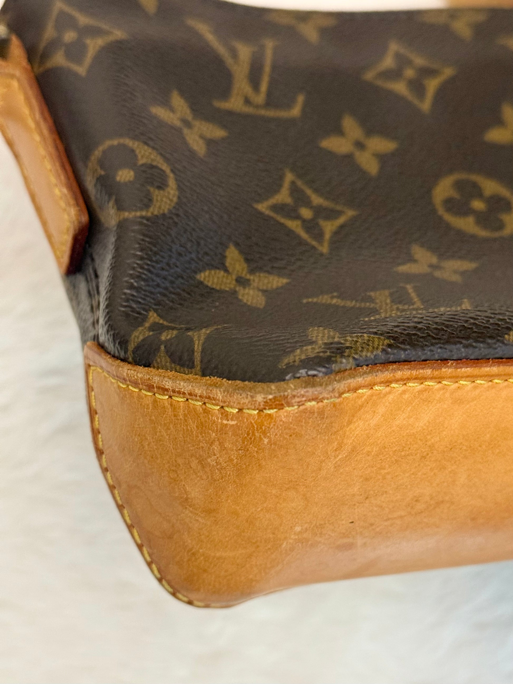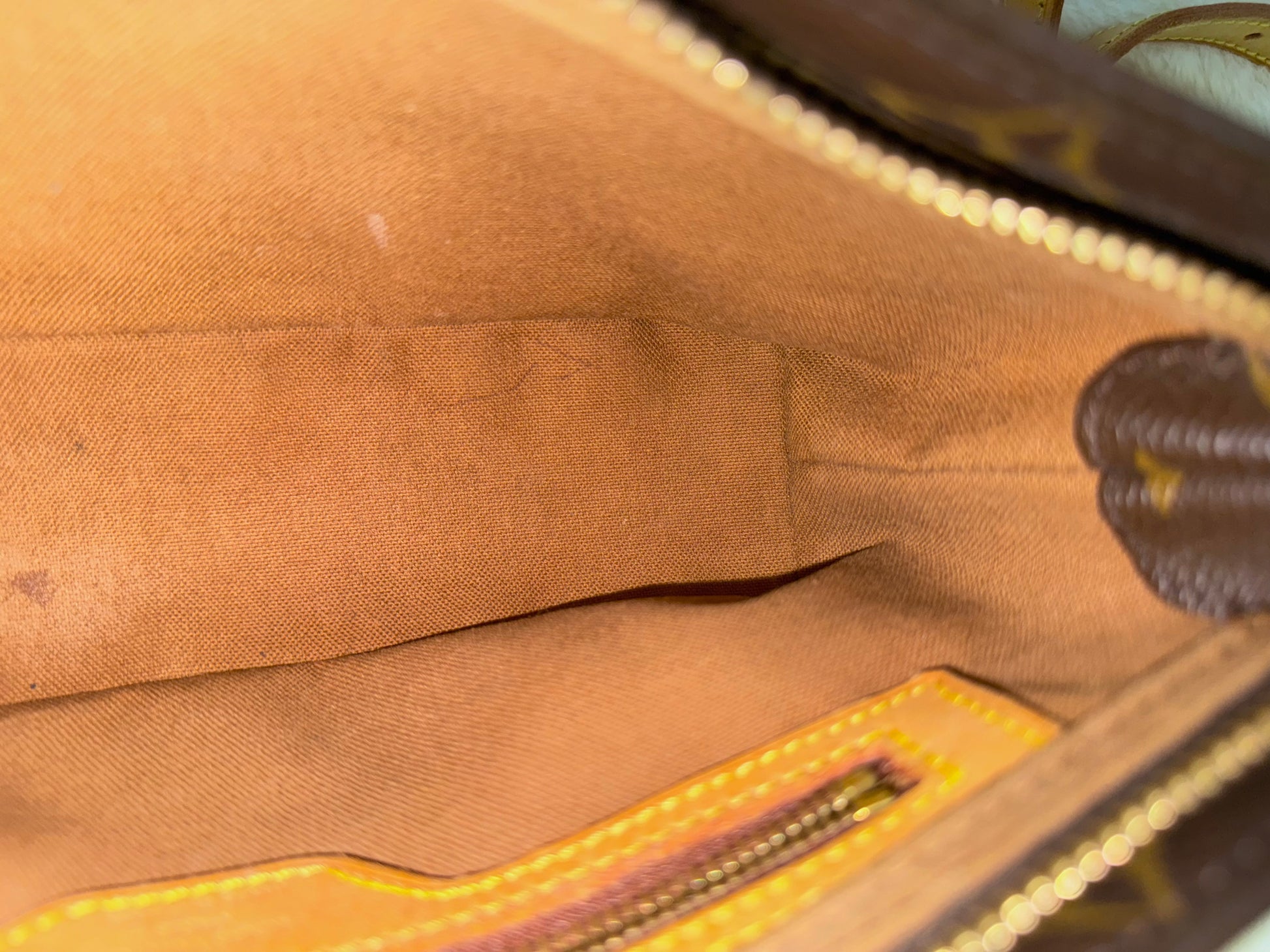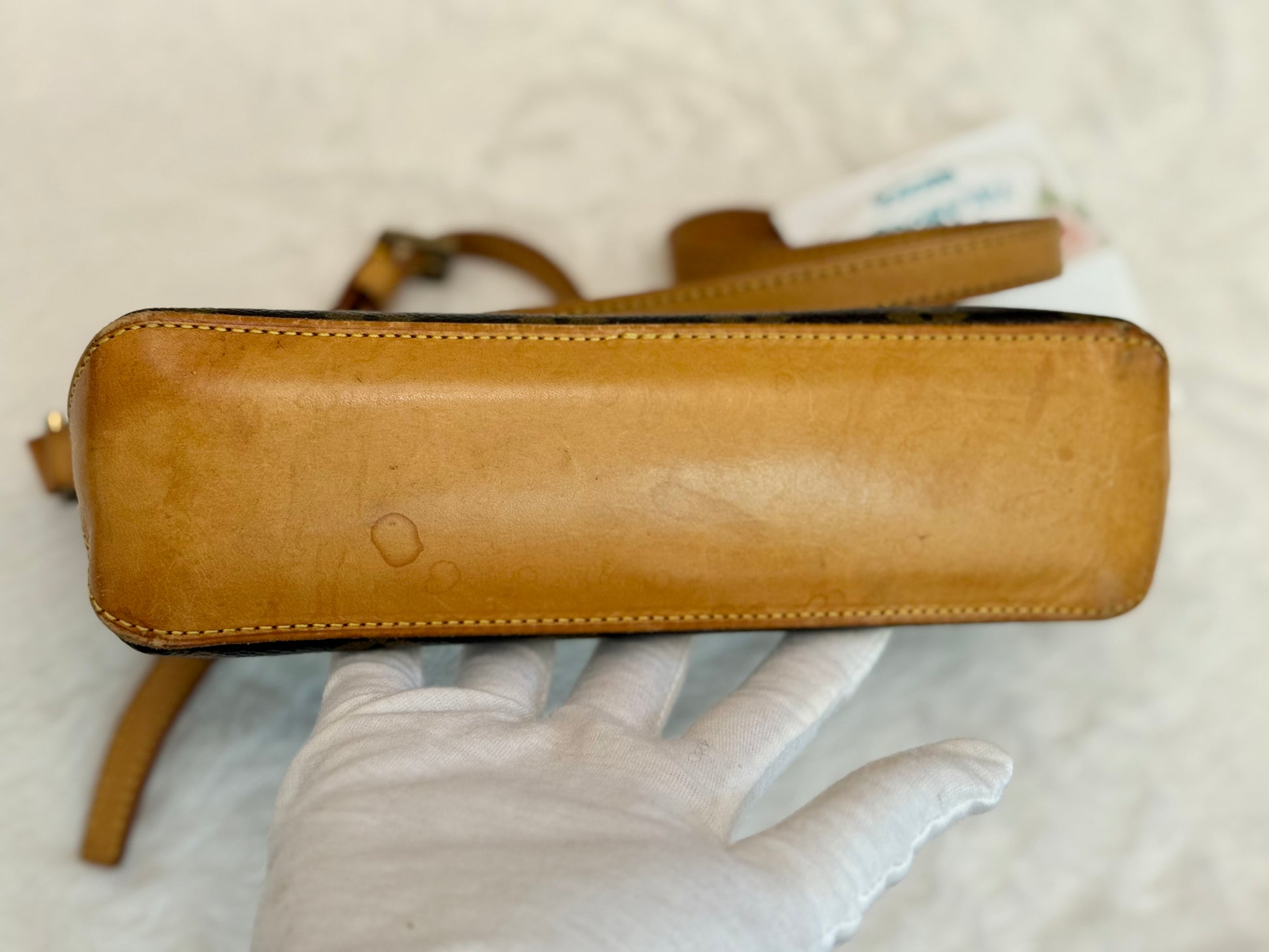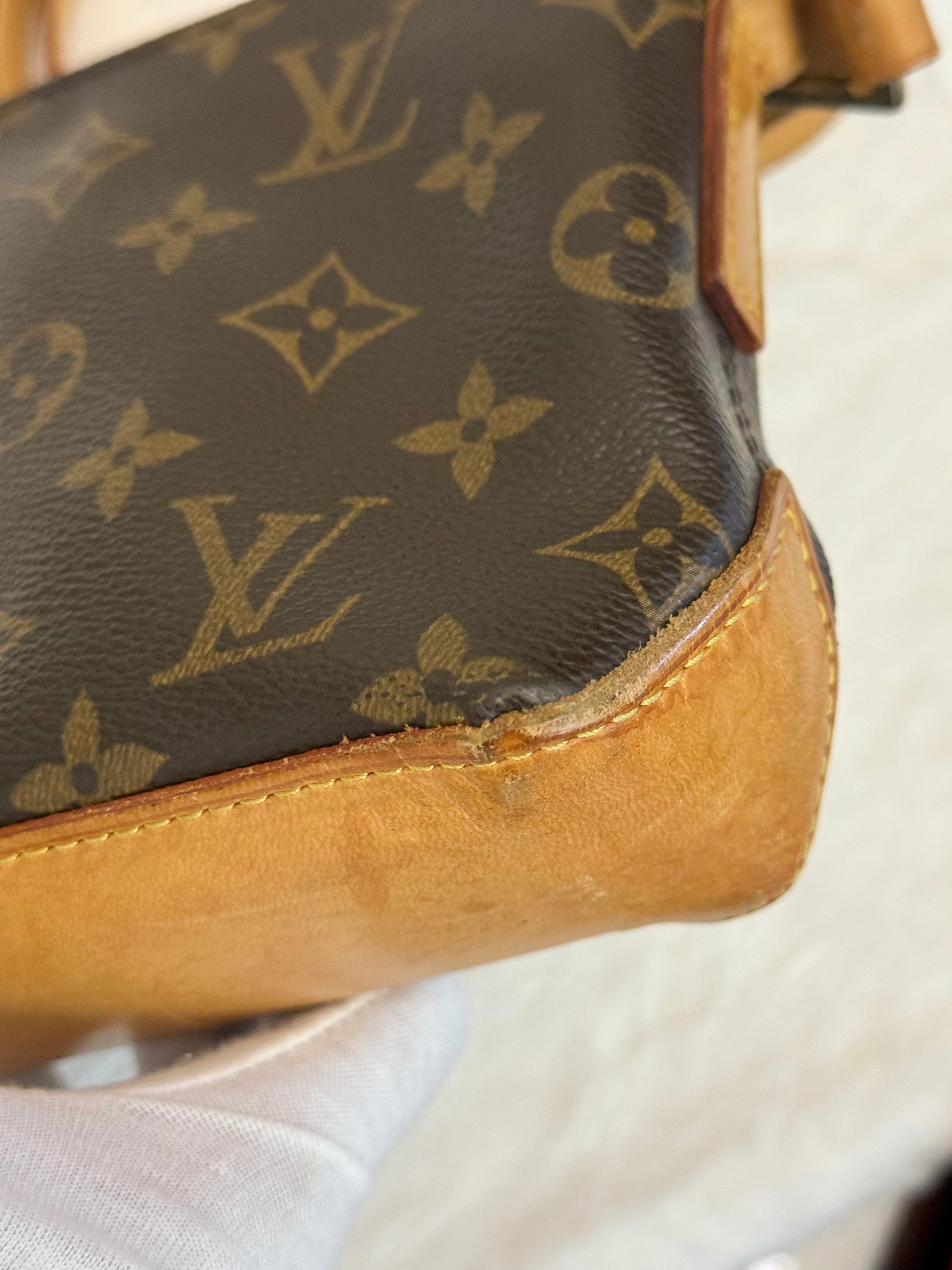 VERY GOOD preowned condition! Canvas is shiny and bright, no cracks on trims and corners. Vachetta has medium honey patina with marks vachetta, see pics. Vachetta strap is still strong on both sides, no signs of cracking. Hardware has fading and tarnish, pretty normal for vintage piece. Interior has marks. One missing strap keeper. No offensive smell, comes from pet and smoke free home.