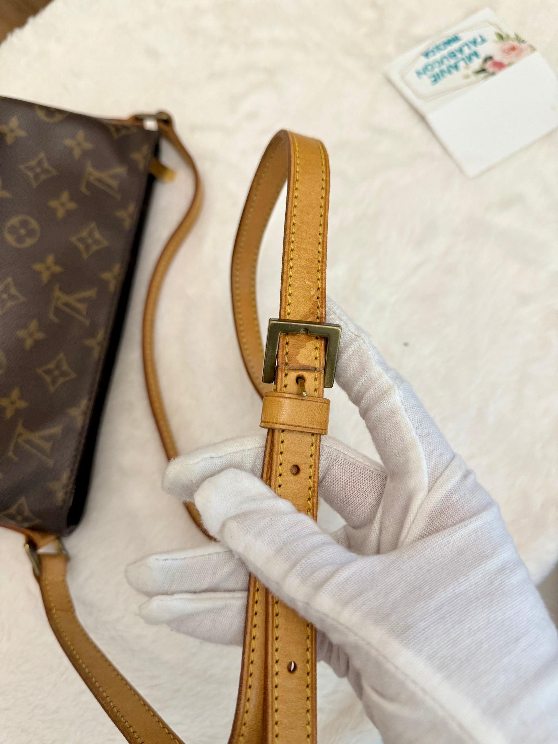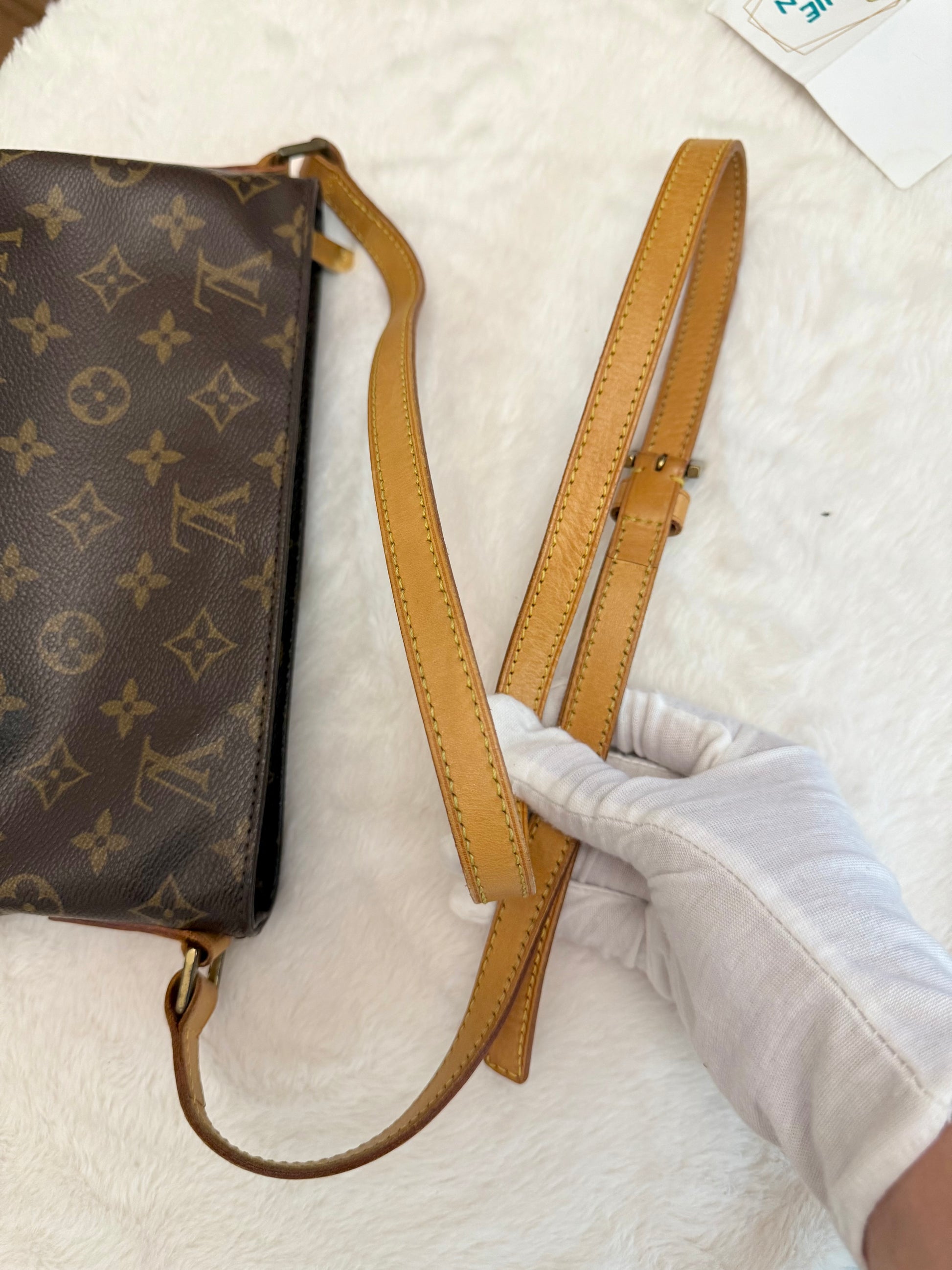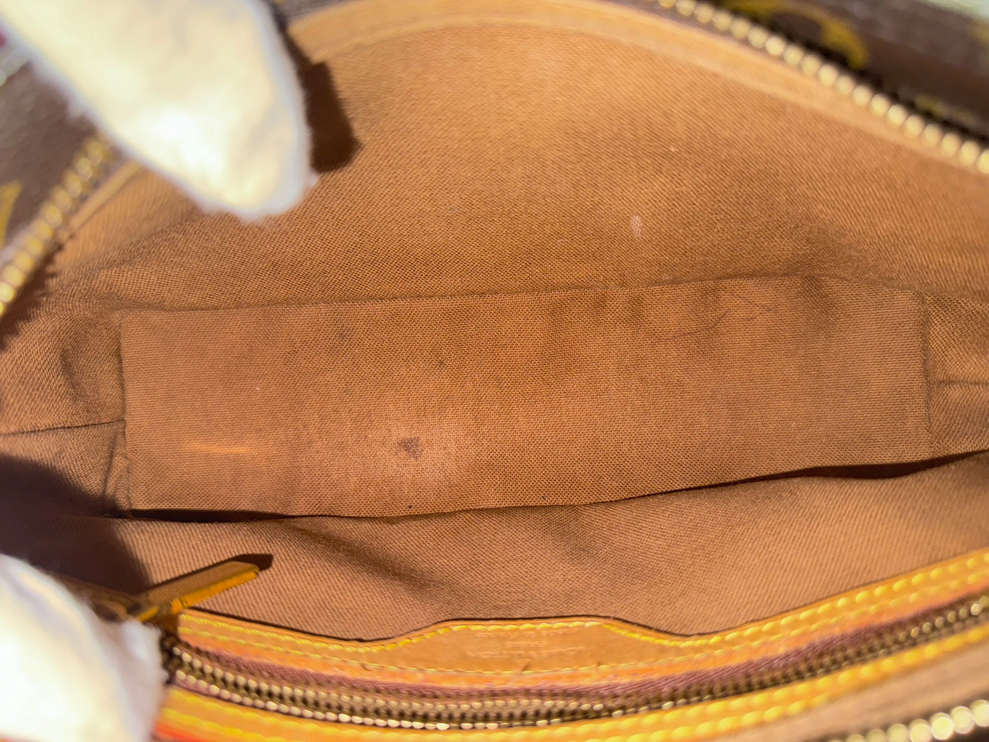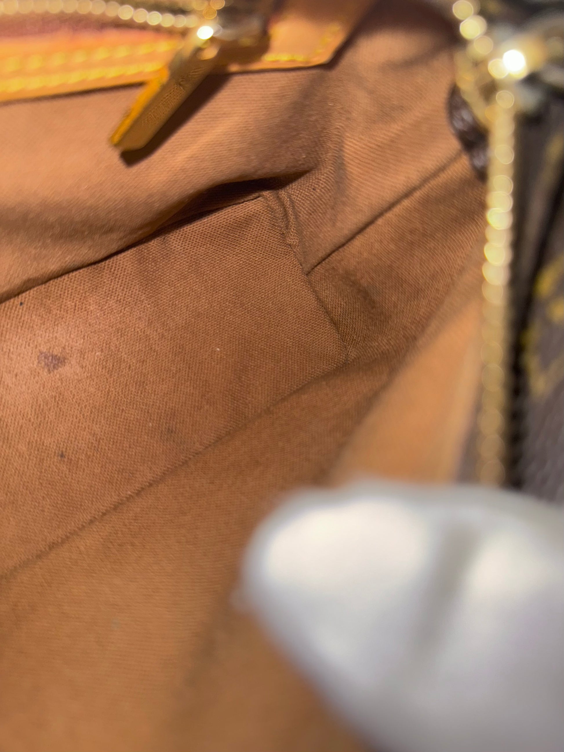 VERY GOOD preowned condition! Canvas is shiny and bright, no cracks on trims and corners. Vachetta has medium honey patina with marks vachetta, see pics. Vachetta strap is still strong on both sides, no signs of cracking. Hardware has fading and tarnish, pretty normal for vintage piece. Interior has marks. One missing strap keeper. No offensive smell, comes from pet and smoke free home.