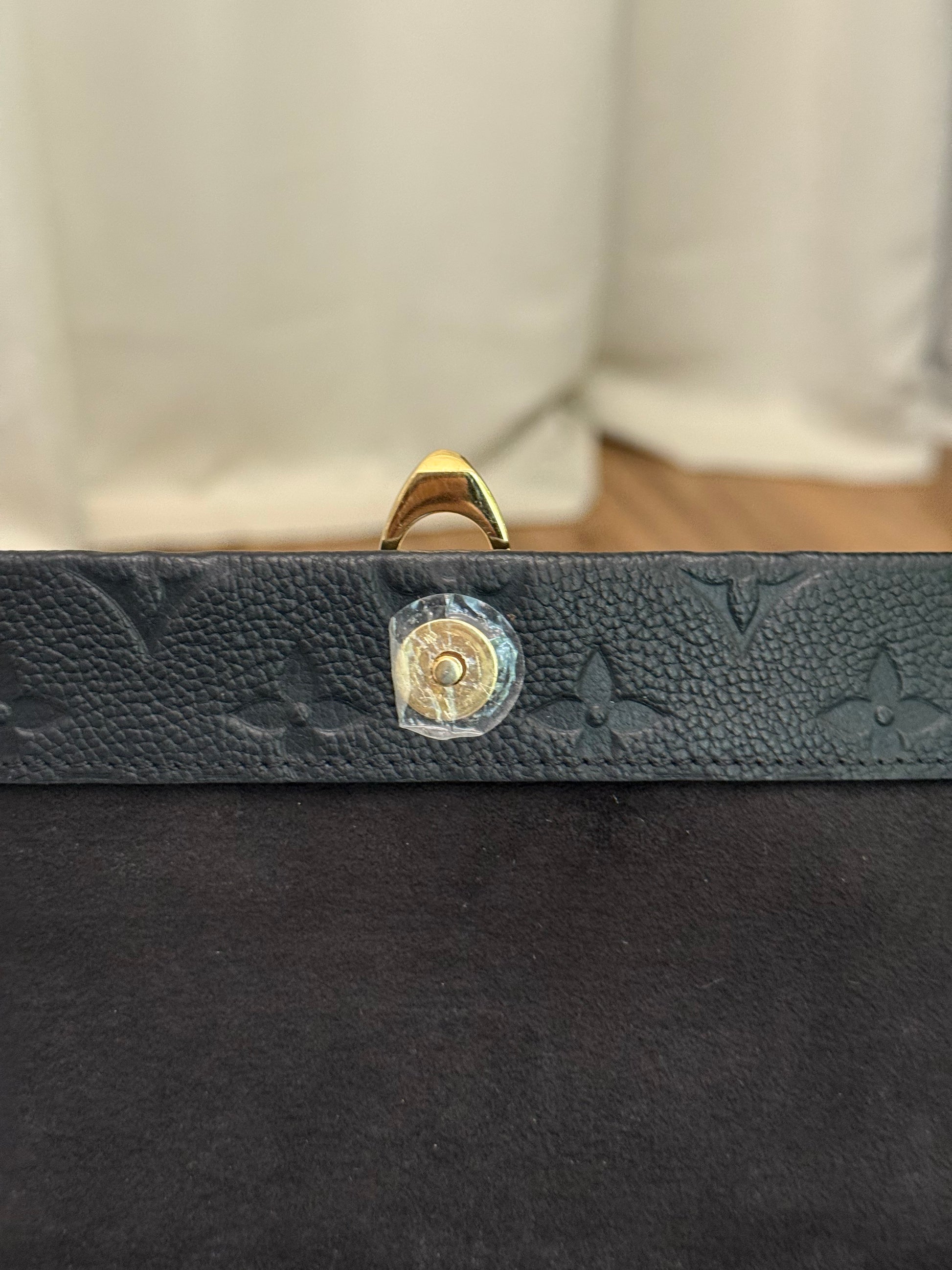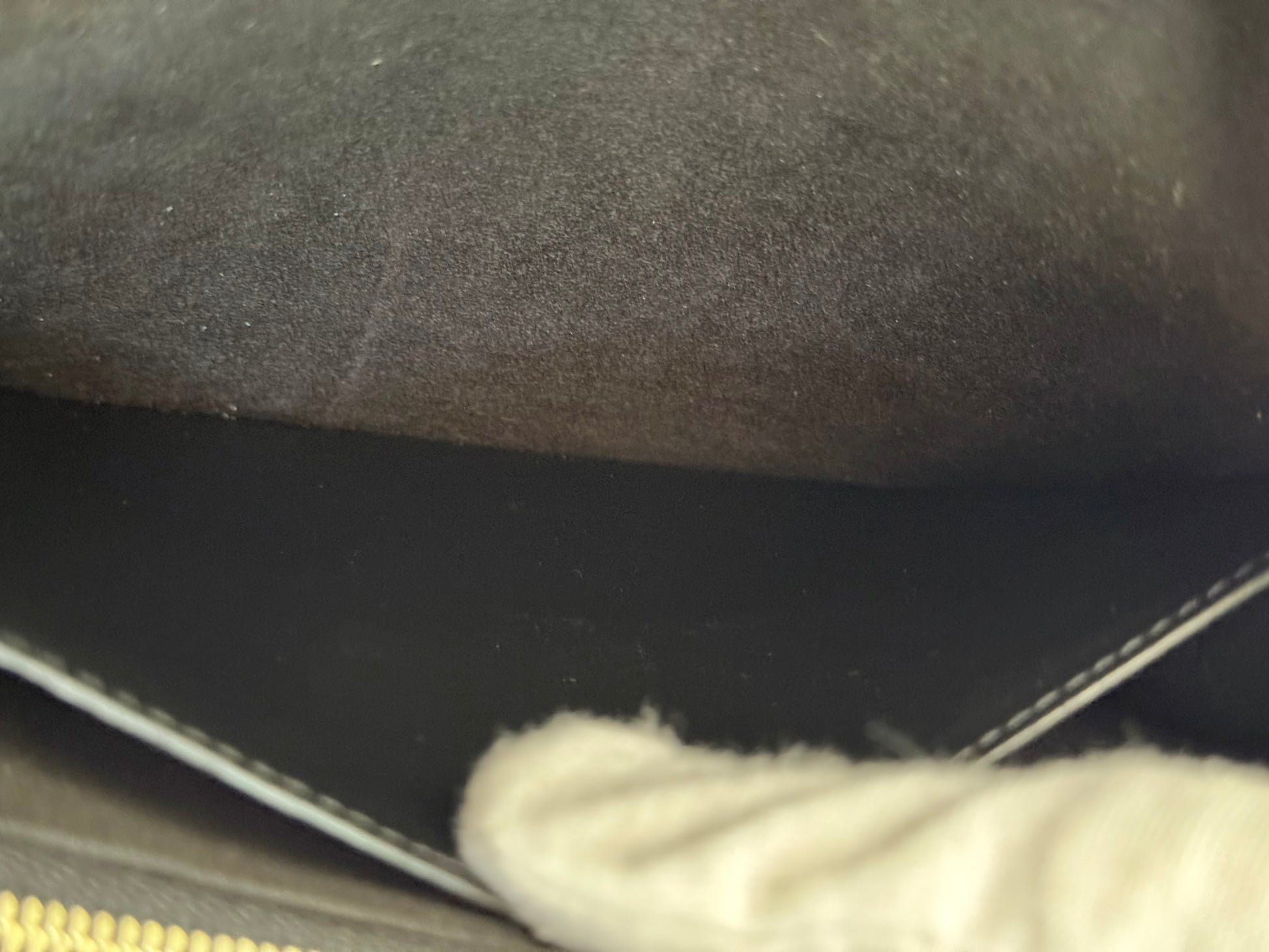 In EXCELLENT preowned condition. Empreinte has deep embossing, no scratches. Hardware has signs of use like hairline scratches especially in front HW. Interior is clean with some minor white dust. Zipper inside runs smooth. No offensive odor, comes from pet and smoke free home.