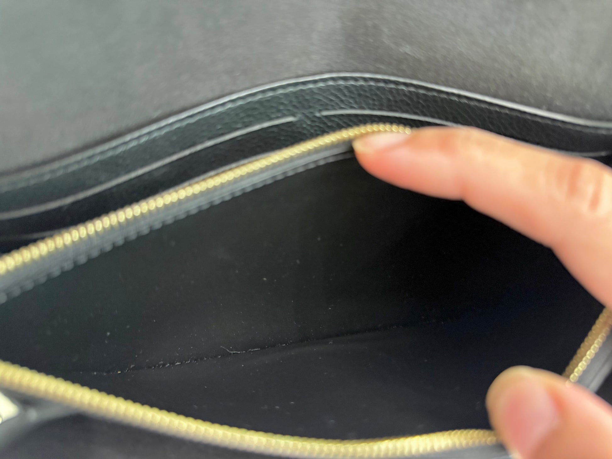No flaws to mention. Hardware has plastic still on. Zipper inside runs smooth. No offensive odor, comes from pet and smoke free home.