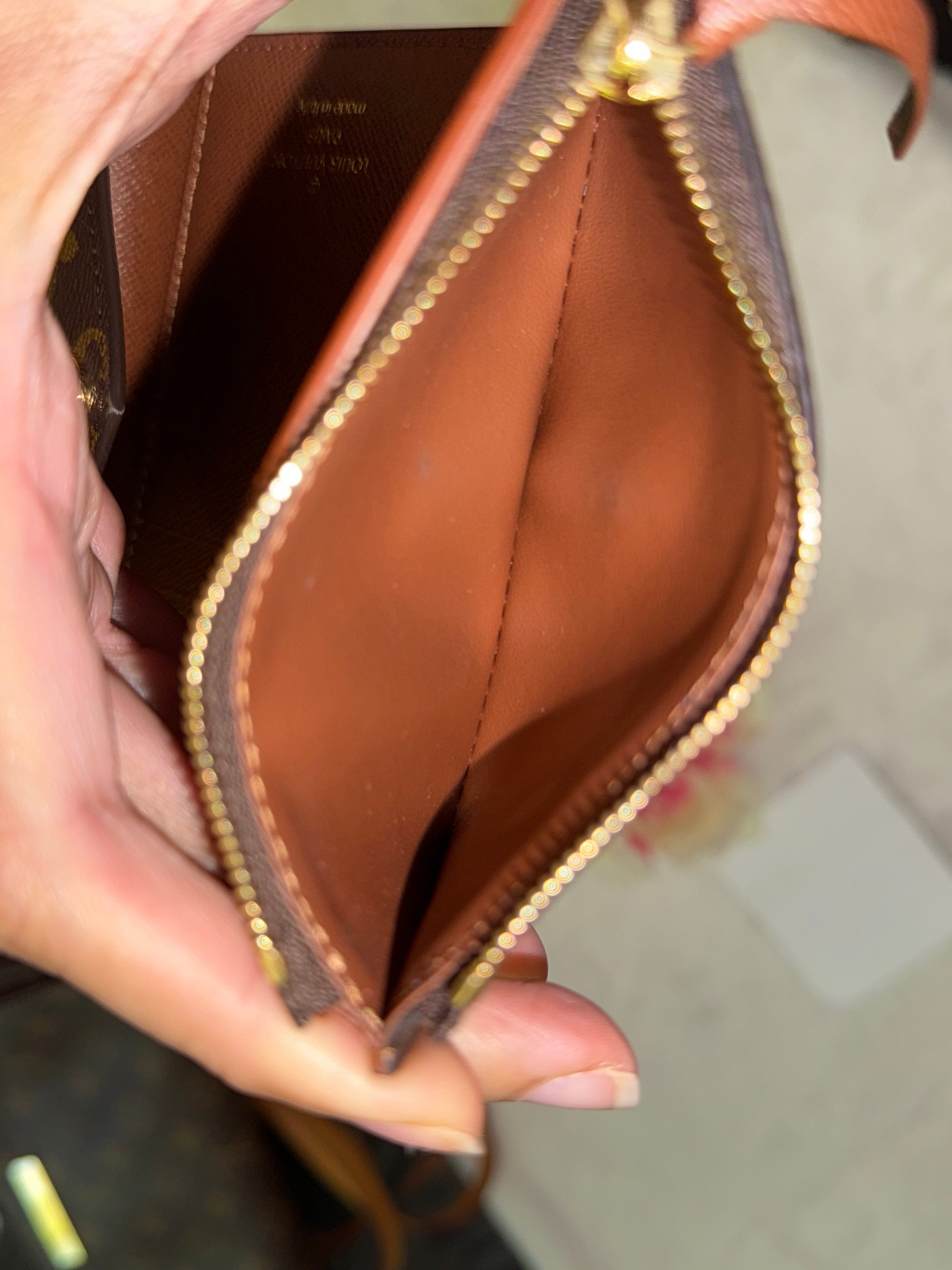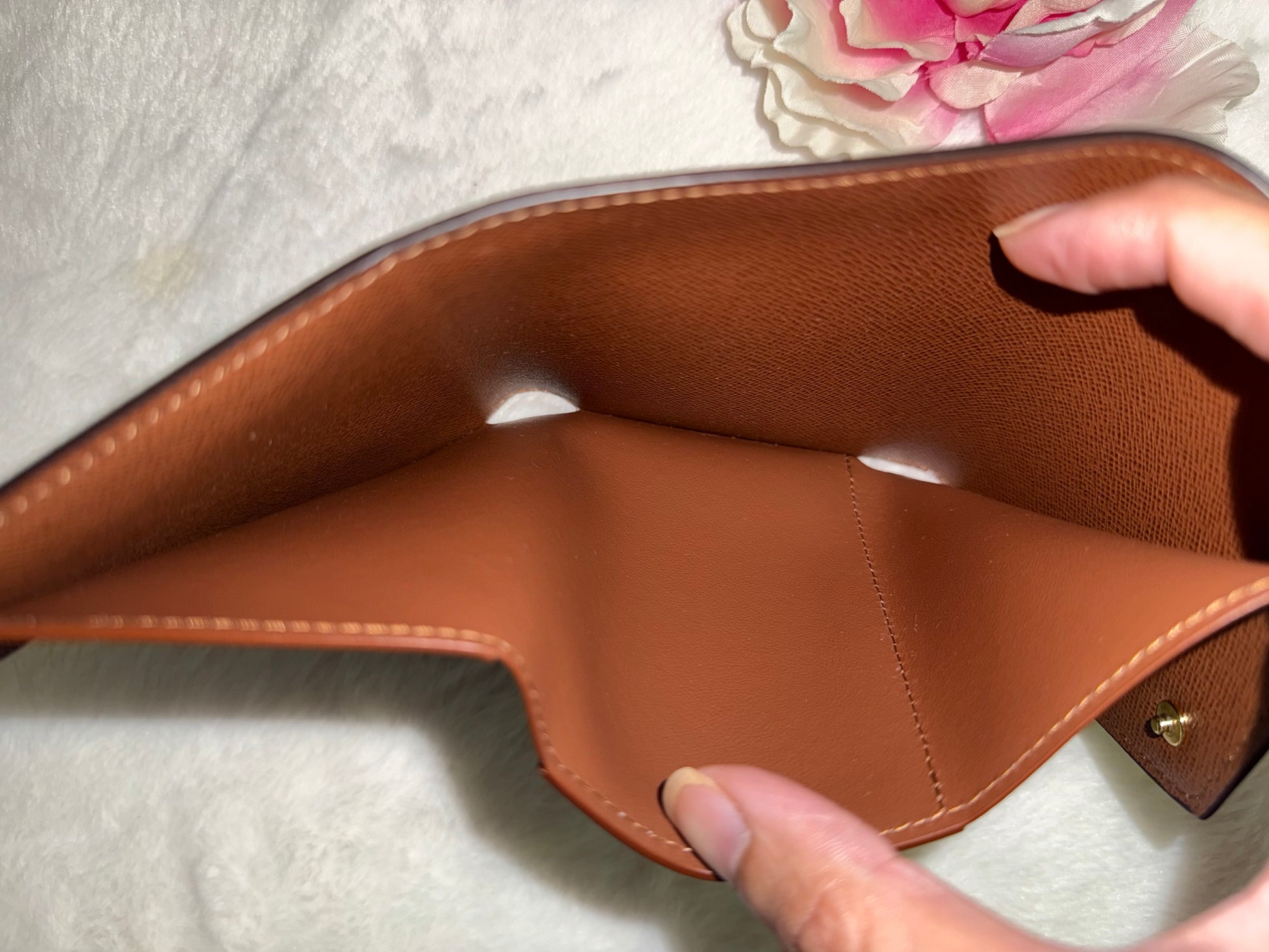 PRISTINE preowned condition! Canvas is bright and clean. Armagnac interior is clean. Glazing is solid. Credit card slots are slightly used. Hardware is golden: front button has hairline scratches which is inevitable. Coin compartment has some marks. No offensive smell, comes from pet and smoke free home.