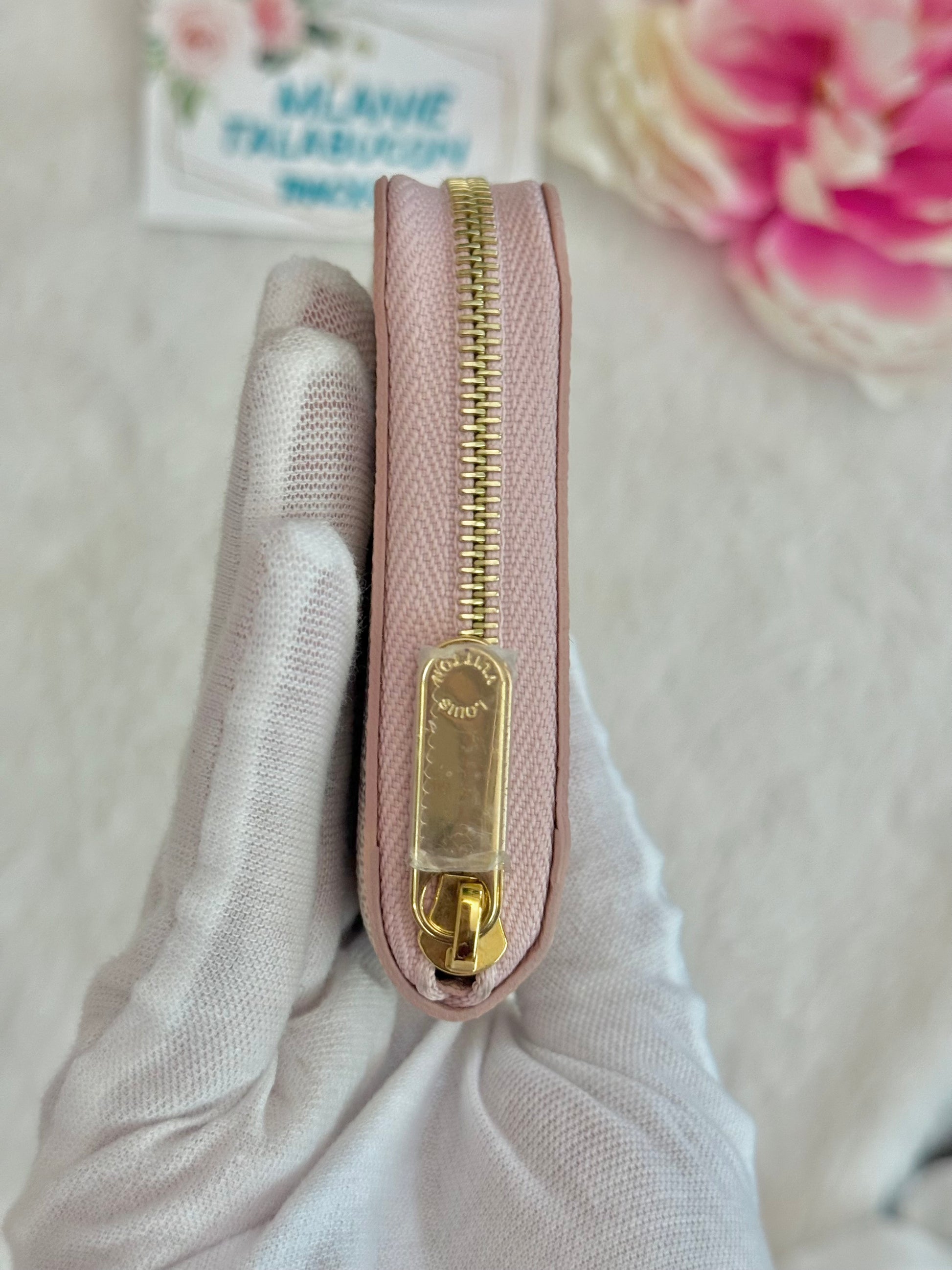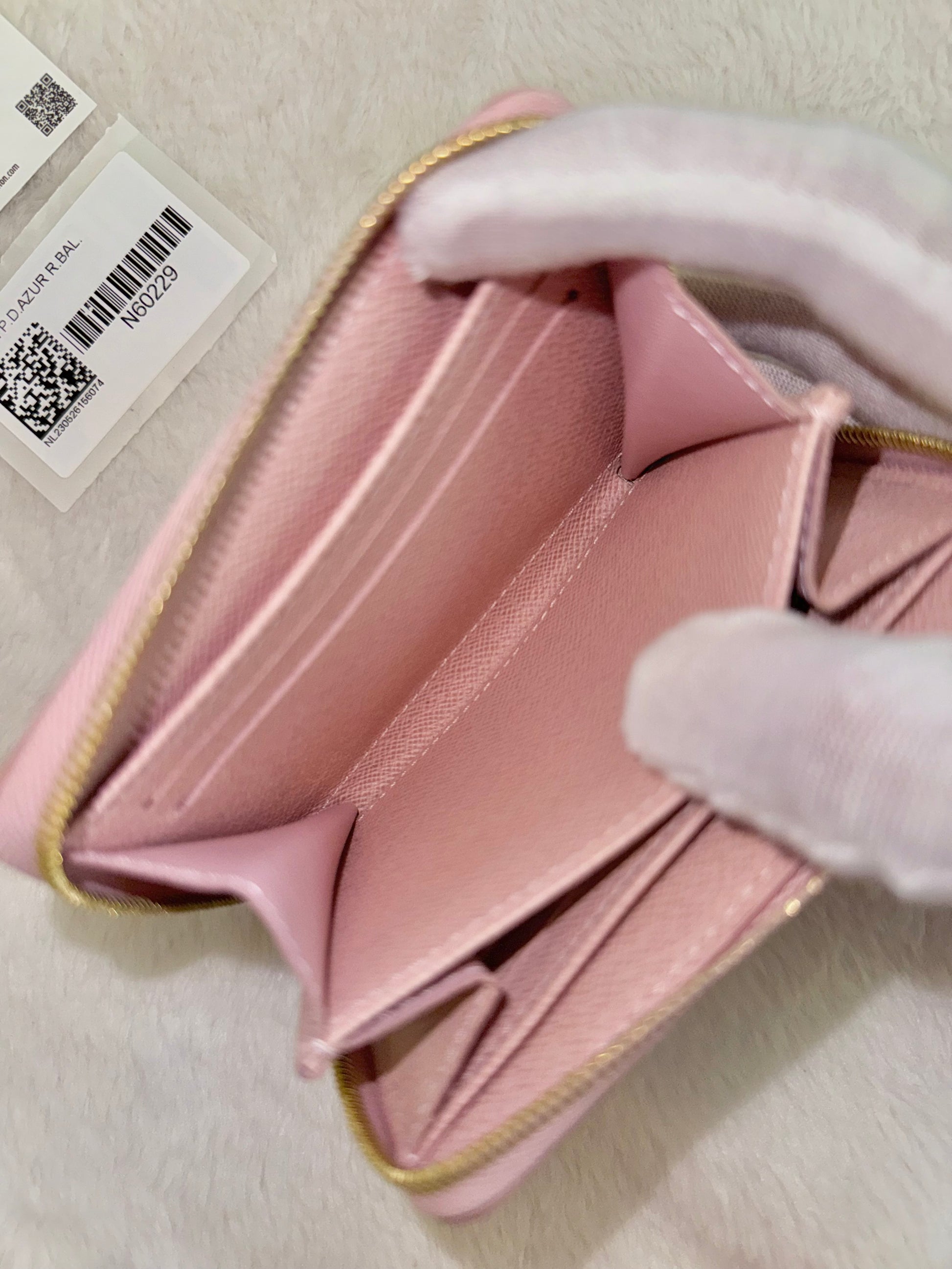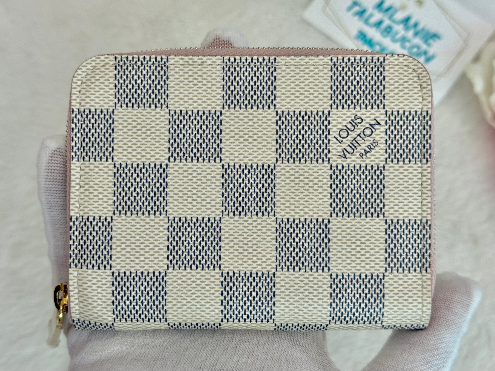 Louis Vuitton Zippy Coin Purse Damier Azur Rose Ballerine